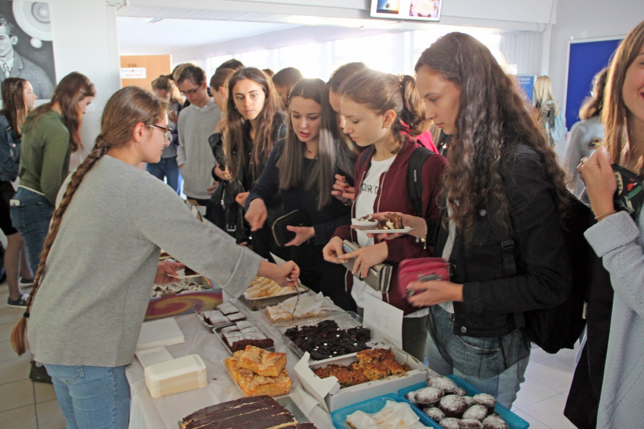 admin 9 lat temu Bez kategorii2 października 2017 roku, odbył się w naszej szkole kiermasz ciast organizowany przez Szkolne Koło Fotograficzne. Bardzo wielu uczniów włączyło się do akcji, przynosząc różne wypieki: babeczki, rurki i wafle. Prowadzeniem kiermaszu zajęli się członkowie koła fotograficznego. Akcja cieszyła się ogromnym powodzeniem, zebrano aż 1045,00 zł! Pieniądze zostaną przeznaczone na modernizację sprzętu fotograficznego, który wykorzystywany jest do upamiętniania szkolnych imprez i uroczystości. Zdjęcia publikowane są na szkolnej stronie internetowej oraz na szkolnym Facebook’u. Serdecznie dziękujemy wszystkim zaangażowanym (uczniom, rodzicom i nauczycielom) za wsparcie i dobrą wolę. Szczególne podziękowania należą się wyjątkowo aktywnym i bezkonkurencyjnym klasom pierwszym liceum za dostarczenie ciast i przedsiębiorczość! Dziękujemy za zebranie tak pokaźnej kwoty!