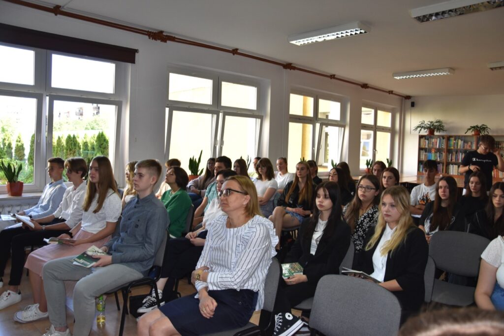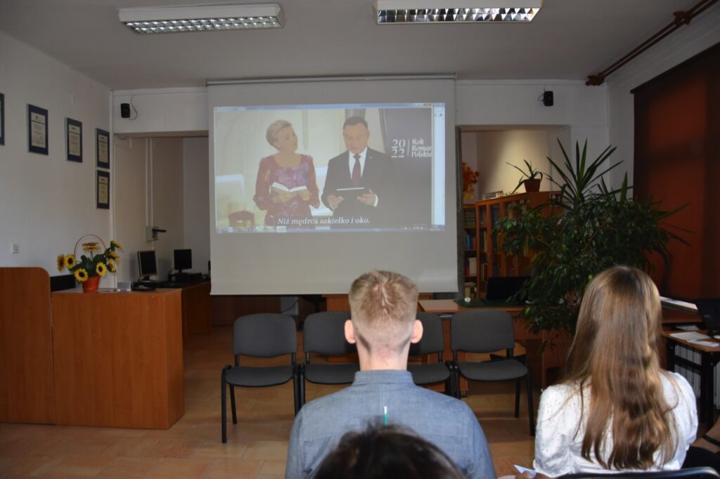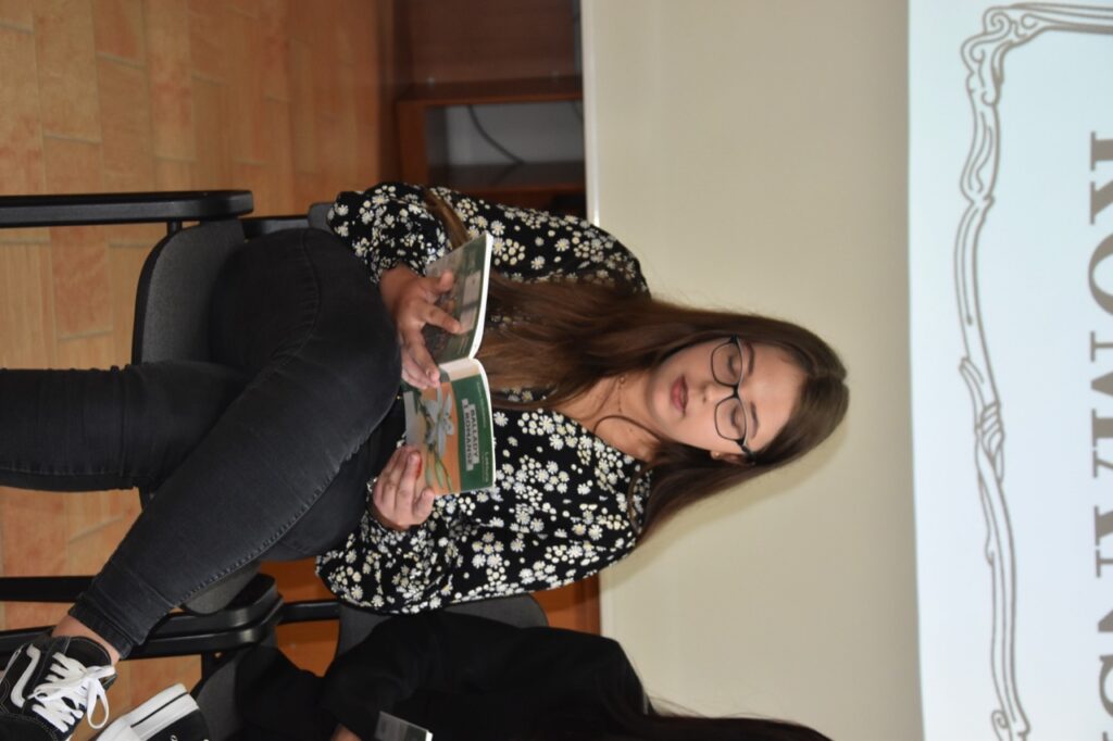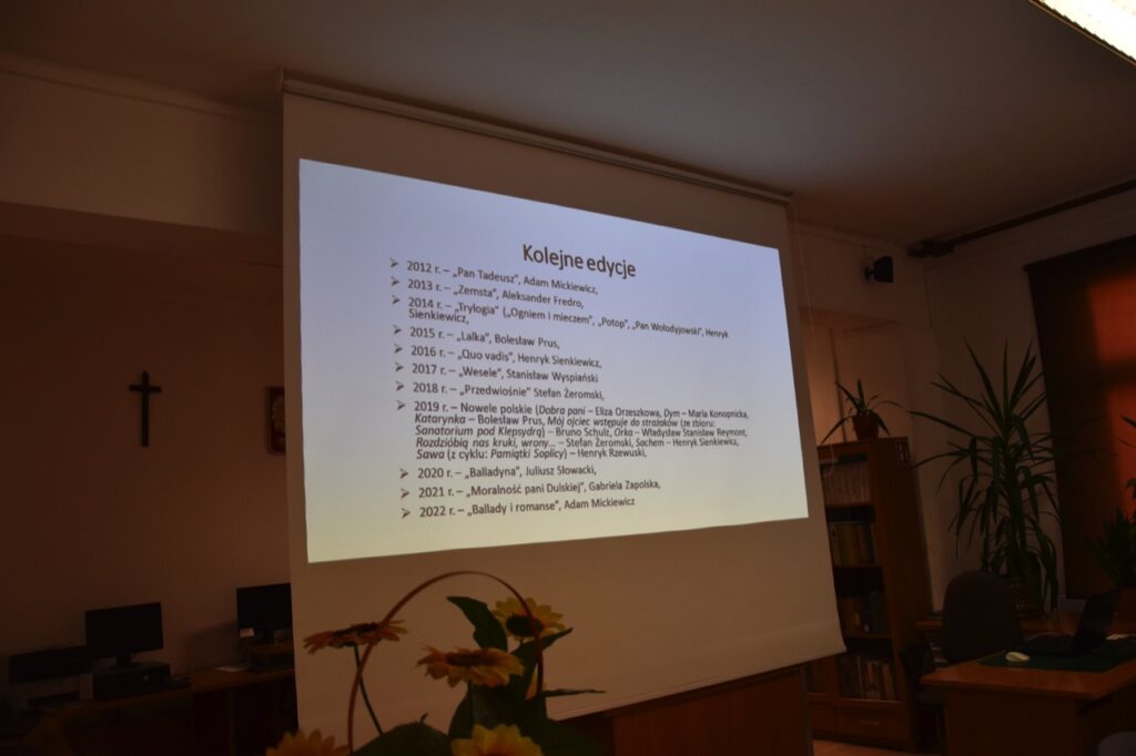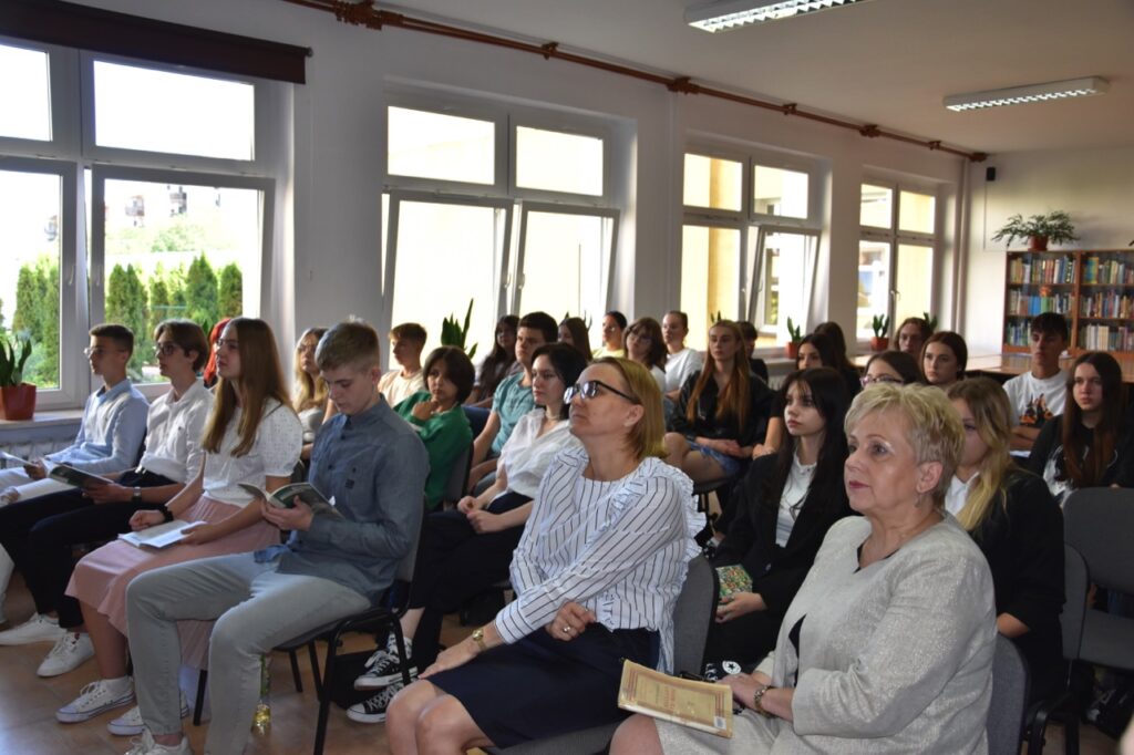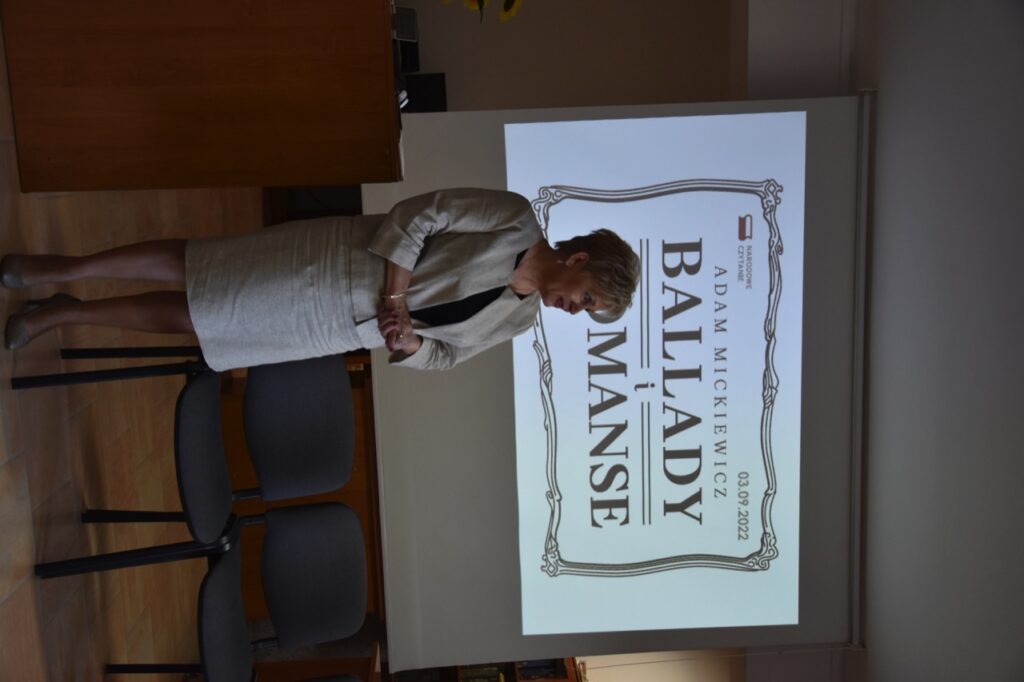 Młodzież zgromadzona w czytelni obejrzała film z udziałem Pary Prezydenckiej zachęcający do współtworzenia akcji i prezentację multimedialną, która przybliżyła ideę Narodowego Czytania oraz problematykę „Ballad i romansów”. W świat ballad Mickiewicza wprowadziła także licealistów pani Dyrektor Jolanta Rycyk, a następnie przeczytała fragment utworu „Lilije”. Przed rówieśnikami zaprezentowały się również: Karina Gozdecka, Natalia Iwanek, Oliwia Pietrasz, Katarzyna Sarzyńska z kl. II D oraz Kinga Łupina, Maciej Kudyba, Paweł Mydlak, Wiktor Piech z kl. II E. Uczniowie czytali ballady: „Romantyczność”, „Świtezianka” oraz „Pani Twardowska”. W roli konferansjera wystąpiła Laura Karpik z kl. II D. Na zakończenie spotkania uczniowie otrzymali pamiątkowe pieczęcie Narodowego Czytania 2022.