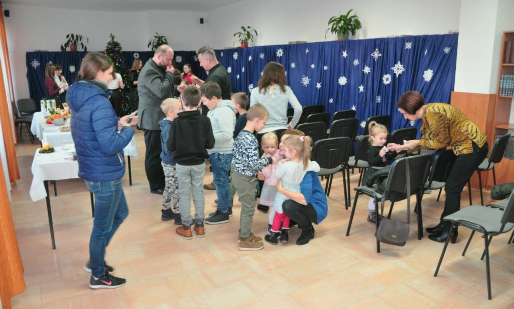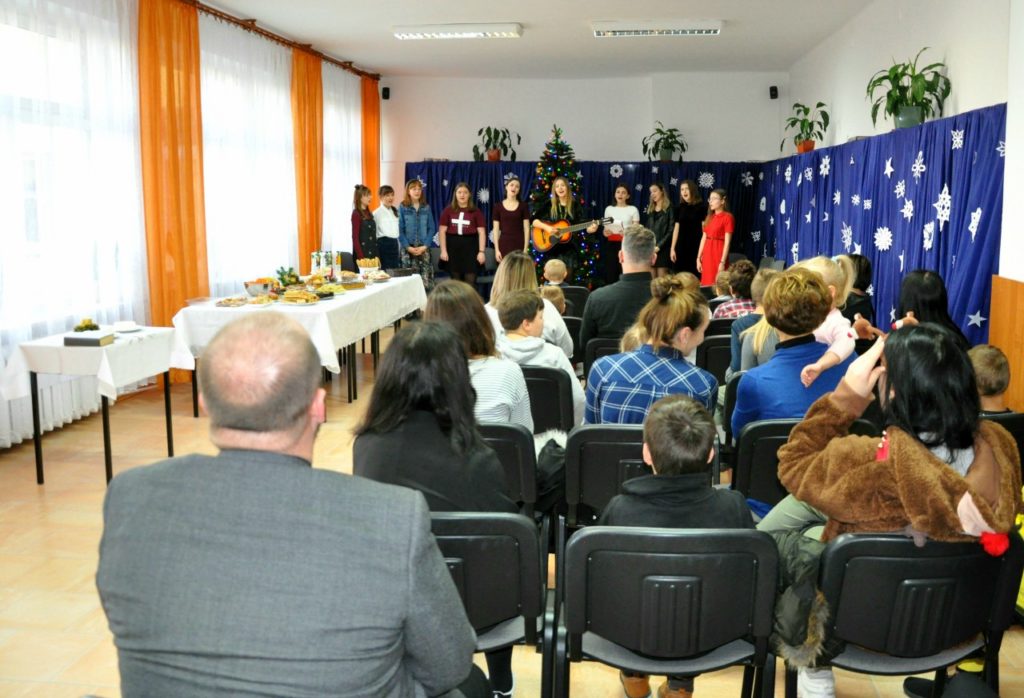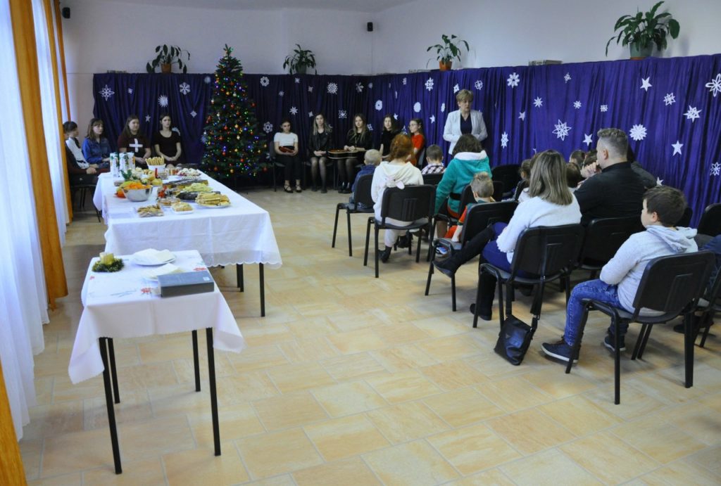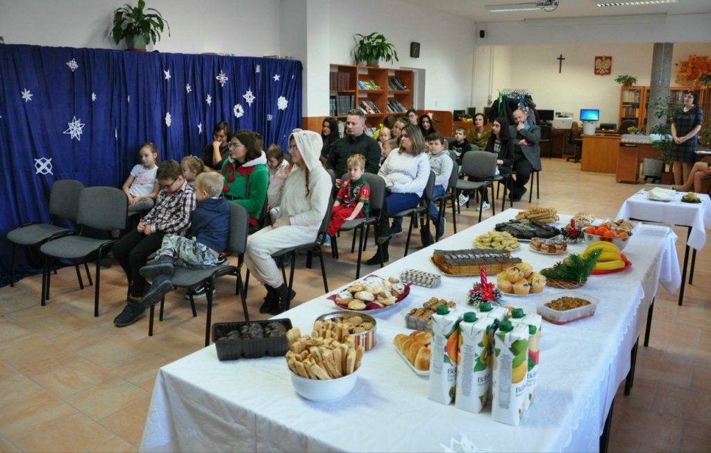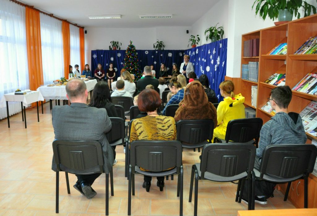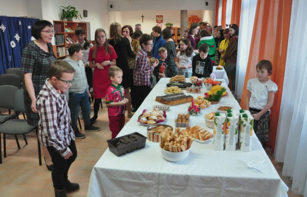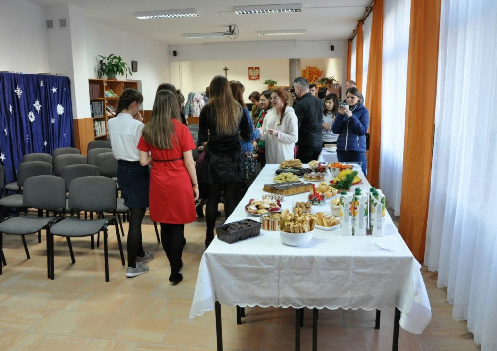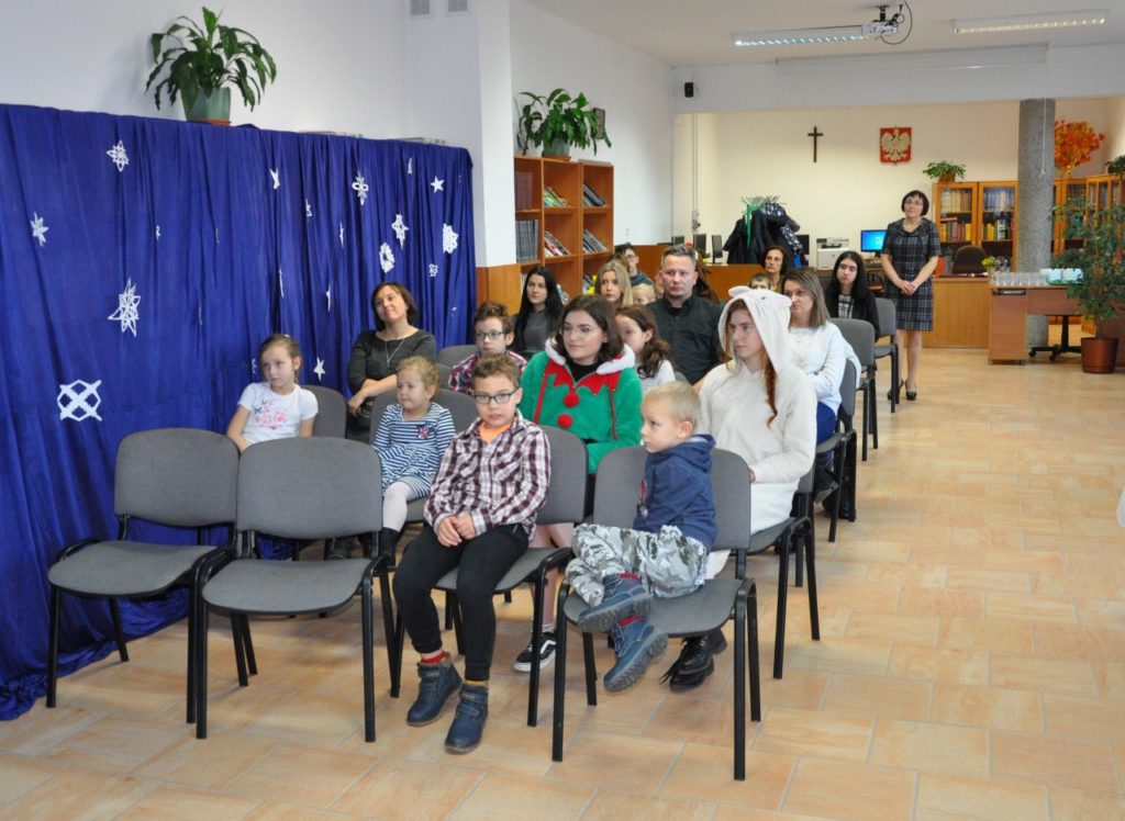 Jubileuszowe spotkanie tradycyjnie odbyło się w świątecznej scenerii biblioteki szkolnej, gdzie przy blasku choinki dzieliliśmy się opłatkiem, częstowaliśmy się potrawami wigilijnymi i śpiewaliśmy kolędy. Dla najmłodszych uczniowie z Koła Przyjaciół Biblioteki przygotowali gry i zabawy, które sprawiły gościom mnóstwo radości. Tradycyjnie, na zakończenie spotkania, dzieci otrzymały paczki mikołajkowe przekazane przez Fundację Pomocy Dzieciom „Krzyk”.