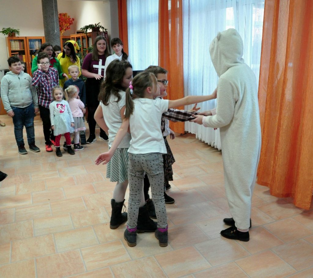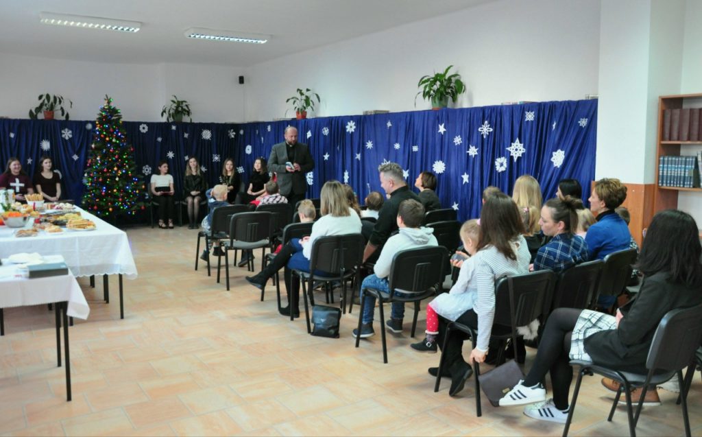 admin 6 lat temu Bez kategorii , OrganizacyjneWigilia dla dzieci z Wioski Dziecięcej SOS w Biłgoraju to jedna z najważniejszych uroczystości organizowanych corocznie przez Koło Przyjaciół Biblioteki. W tym roku szkolnym 18 grudnia obchodziliśmy to niepowtarzalne spotkanie wigilijne po raz dwudziesty. Zgromadzonych gości serdecznie powitała pani dyrektor Jolanta Rycyk, która podkreśliła wyjątkowy charakter świąt Bożego Narodzenia. We wspaniały świąteczny klimat wprowadził nas także ksiądz Artur Schodziński przeczytanym fragmentem Słowa Bożego o Narodzeniu Pańskim, a także młodzież, która zaprezentowała część artystyczną.