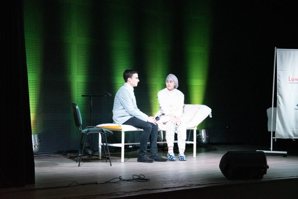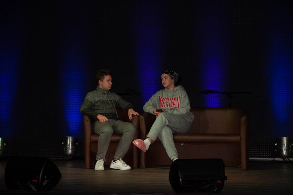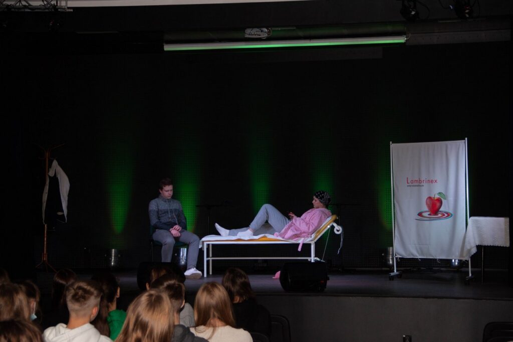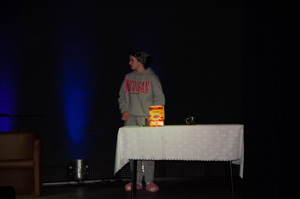 W spektaklu wystąpili: Roksana Rożek, Hubert Pochwatka (II B), Magdalena Telekało, Anita Wenek, Wiktoria Watrak, Maciej Oleszczuk (II E), Katarzyna Łokaj, Magdalena Stec, Daria Gałczyńska (III Hp), Natalia Szkałuba, Mikołaj Kalinowski (III Fp), Magdalena Łobejko, Zuzanna Bielak, Julita Deryło, Gabriela Zawadzińska Jakub Trybalski (I F), Alicja Kaziród (I C), Maja Skakuj (III Eg) i Martyna Żywko (III Cp). Obsługa techniczna: Oskar Kłyż, Karol Buczak, Konrad Siemczyk z kl. II B oraz Piotr Lis z kl. III Bg.