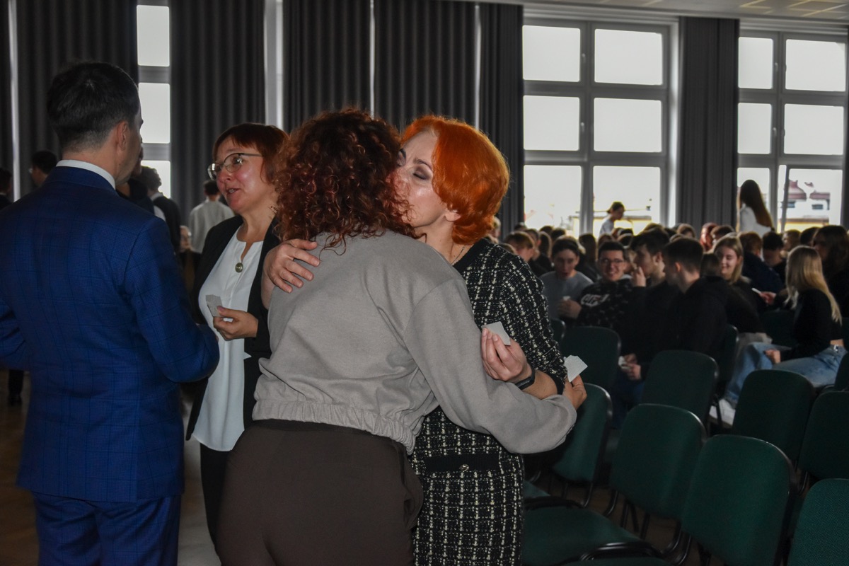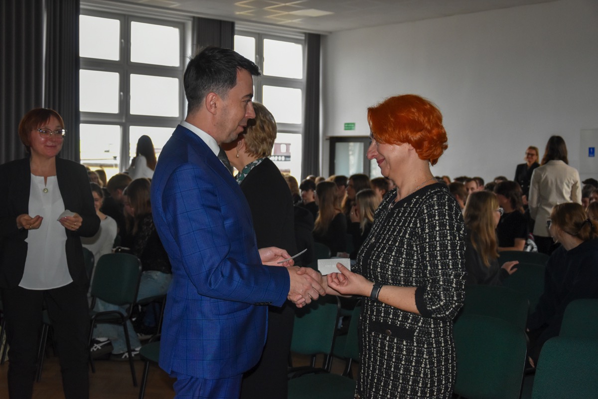 Po części artystycznej uczniowie, nauczyciele i pracownicy szkoły składali sobie życzenia świąteczne i dzielili się opłatkiem.