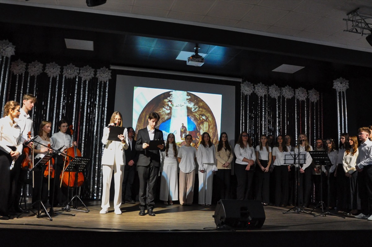 W części artystycznej wystąpili – chór w składzie: Jagoda Bednarz, Weronika Dziura, Katarzyna Golec, Filip Gura, Klaudia Horodko, Maciej Osuch, Julia Pietryszak, Natalia Szabat, Julia Urbanik, Martyna Ważny, Martyna Wnuk, Lidia Wróblewska; zespół instrumentalny w składzie: Izabela Czajka, Emilia Niemiec, Julia Papierz, Rafał Różański, chórem dyrygował Michał Lekan, opiekun chóru: ksiądz Maciej Banach. W montażu słowno-muzycznym wzięli udział: Magdalena Hadacz, Kornelia Jagucak, Antoni Jagusztyn, Adrian Kida, Agata Paczos, Zuzanna Pawłowska, Gabriela Rapa, Aneta Socha, Roksana Welc. Obsługę multimedialną zapewnili: Dawid Sarzyński,Miłosz Syty, Maksymilian Krubnik. Aulę świątecznie udekorowały: pani Alina Dzido i pani Mariola Więcław. Akademię młodzież przygotowała pod kierunkiem pani Elżbieta Ciryt i pani Jadwiga Oleszek.