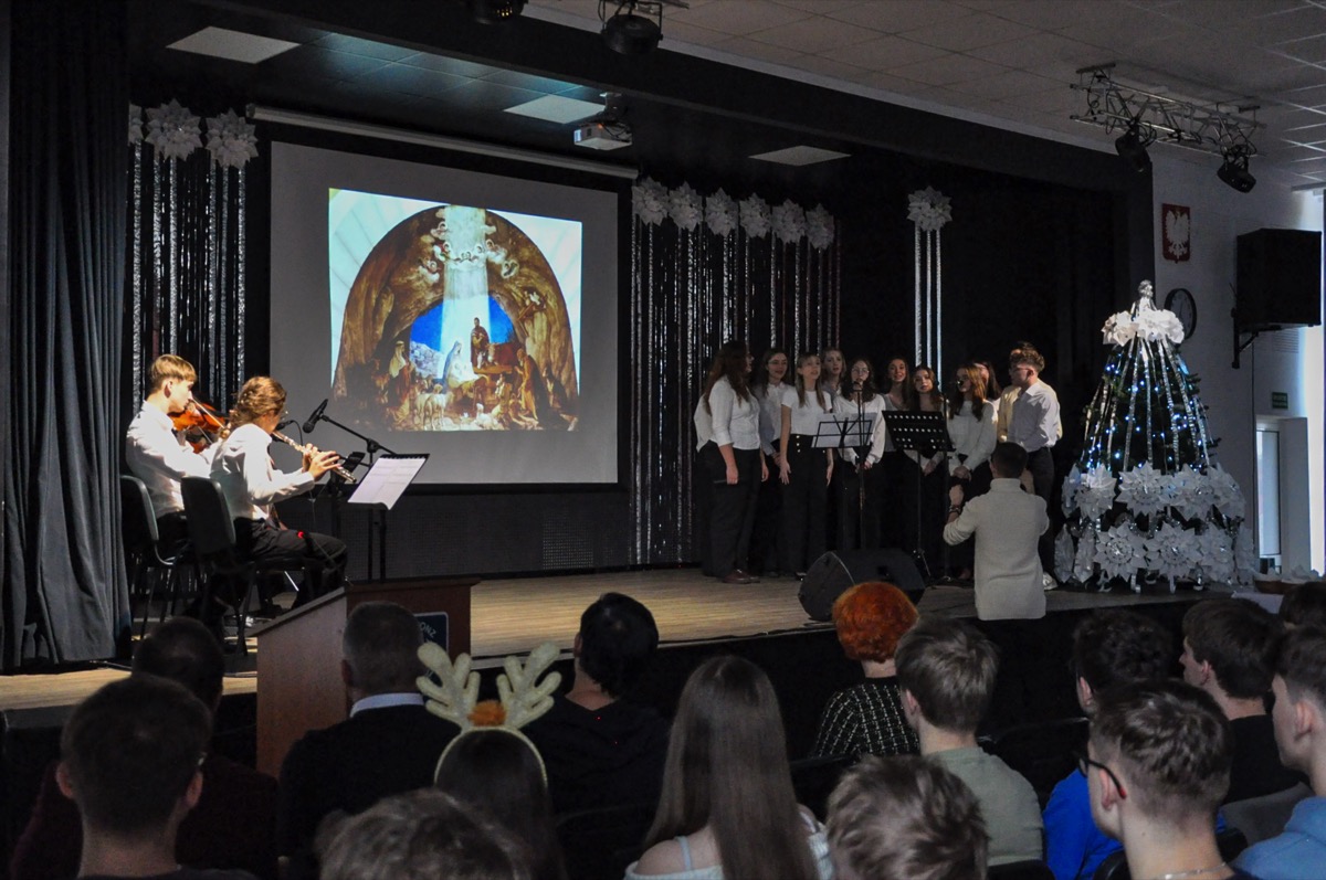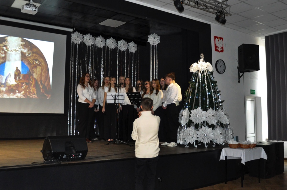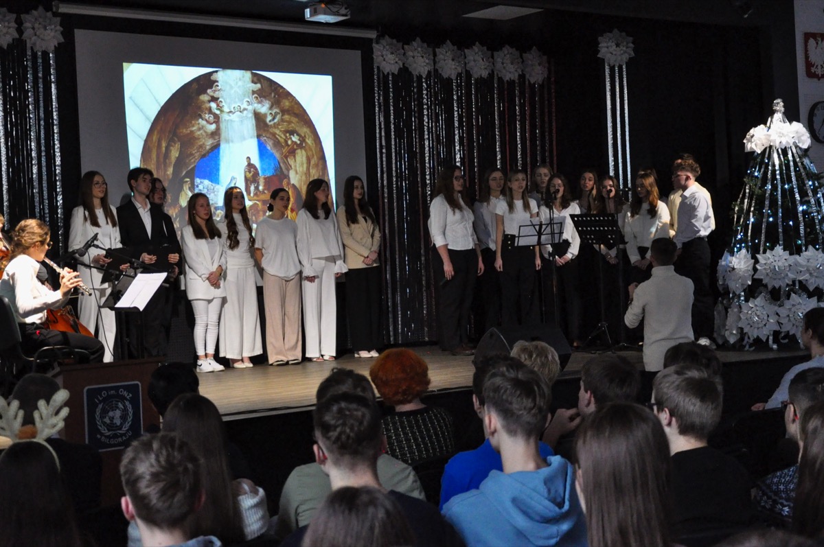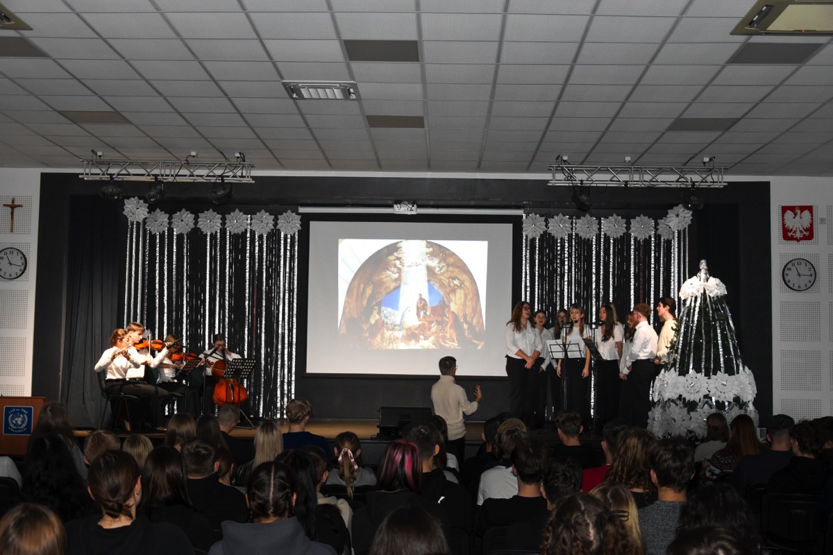 admin 1 rok temu OrganizacyjneDo pięknych tradycji naszego liceum należą spotkania całej społeczności szkolnej tuż przed świętami Bożego Narodzenia, aby wspólnie uczestniczyć w uroczystej akademii. W tym roku w świąteczny klimat wprowadziła wszystkich młodzież, która przygotowała montaż poetycko-muzyczny o tematyce bożonarodzeniowej. Wykorzystano w nim historie biblijne o Narodzeniu Pańskim, wiersze m. in. ks. Jana Twardowskiego, Adama Asnyka, Antoniego Libery czy Leopolda Staffa. Uzupełnieniem pełnych refleksji utworów literackich były polskie kolędy, pastorałki oraz piosenki świąteczne.
