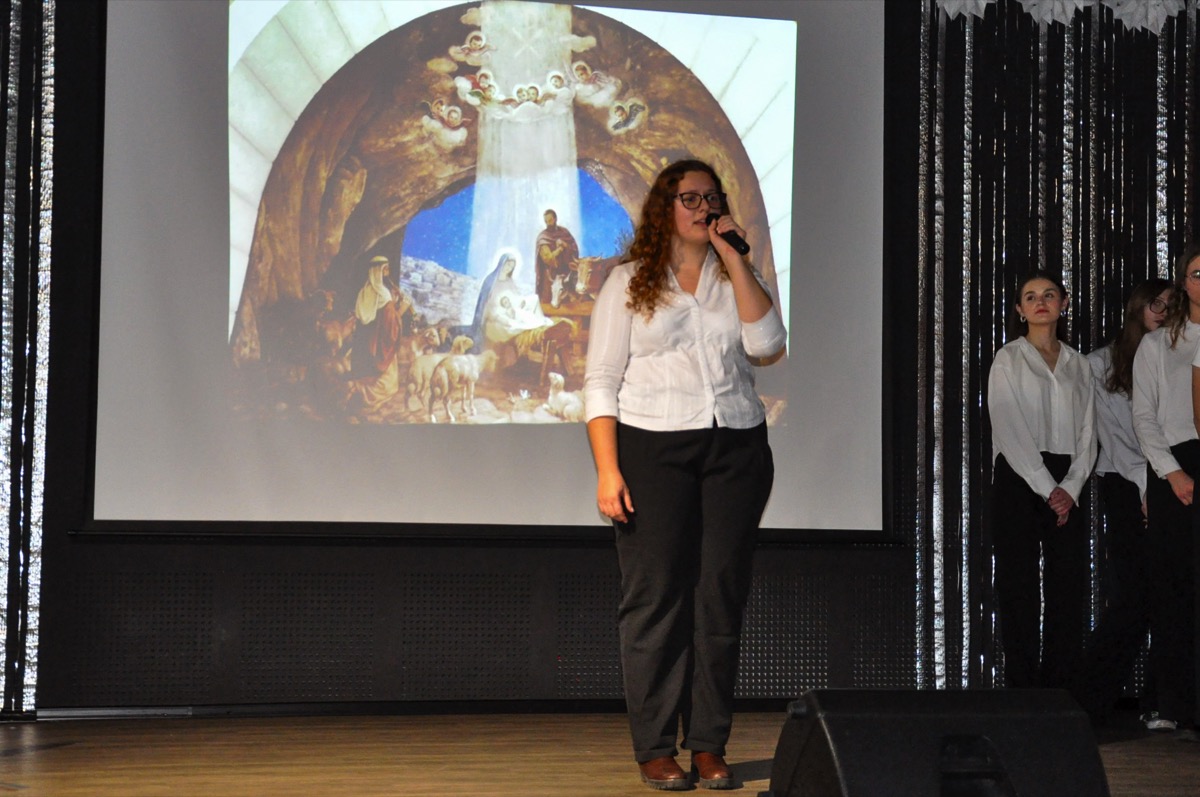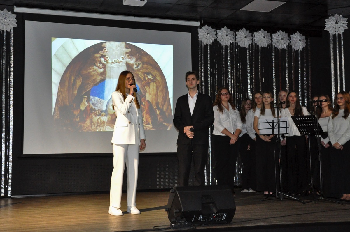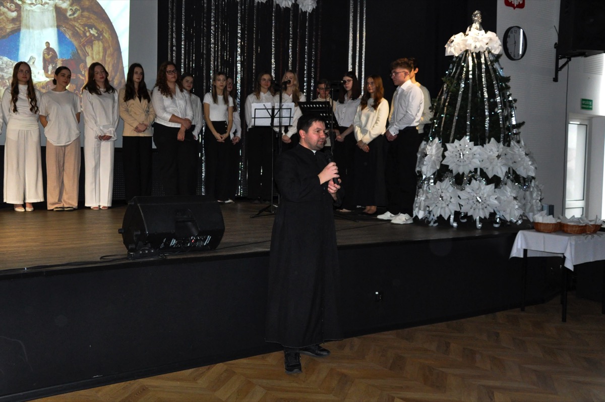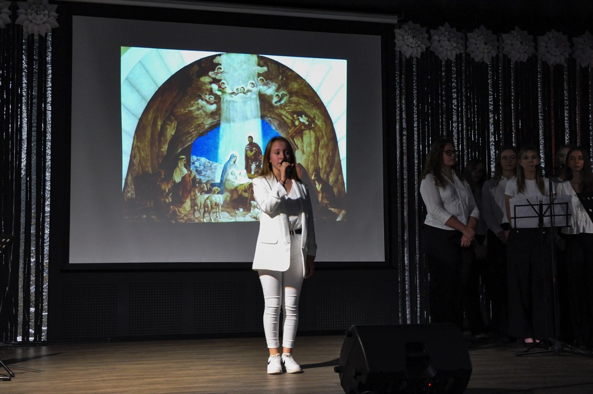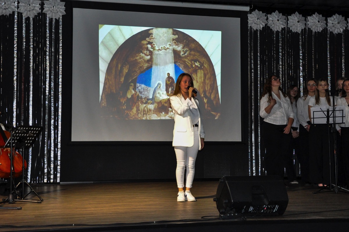 admin 1 rok temu OrganizacyjneDo pięknych tradycji naszego liceum należą spotkania całej społeczności szkolnej tuż przed świętami Bożego Narodzenia, aby wspólnie uczestniczyć w uroczystej akademii. W tym roku w świąteczny klimat wprowadziła wszystkich młodzież, która przygotowała montaż poetycko-muzyczny o tematyce bożonarodzeniowej. Wykorzystano w nim historie biblijne o Narodzeniu Pańskim, wiersze m. in. ks. Jana Twardowskiego, Adama Asnyka, Antoniego Libery czy Leopolda Staffa. Uzupełnieniem pełnych refleksji utworów literackich były polskie kolędy, pastorałki oraz piosenki świąteczne.
