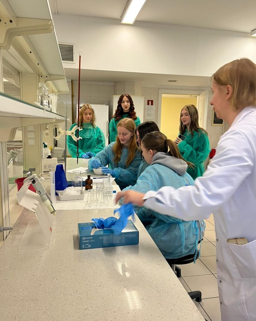 Podczas warsztatów licealiści oznaczali zawartość witaminy C w owocach: kiwi, jabłka, cytryny oraz w bulwach ziemniaka, a także witaminy B1 w drożdżach. Młodzież samodzielnie wykonywała doświadczenia, dokonywała obliczeń i wyciągała wnioski na podstawie uzyskanych wyników. Kolejne zajęcia dotyczyły preparatyki, izolacji kwasu DNA z materiału biologicznego oraz jego obserwacji.