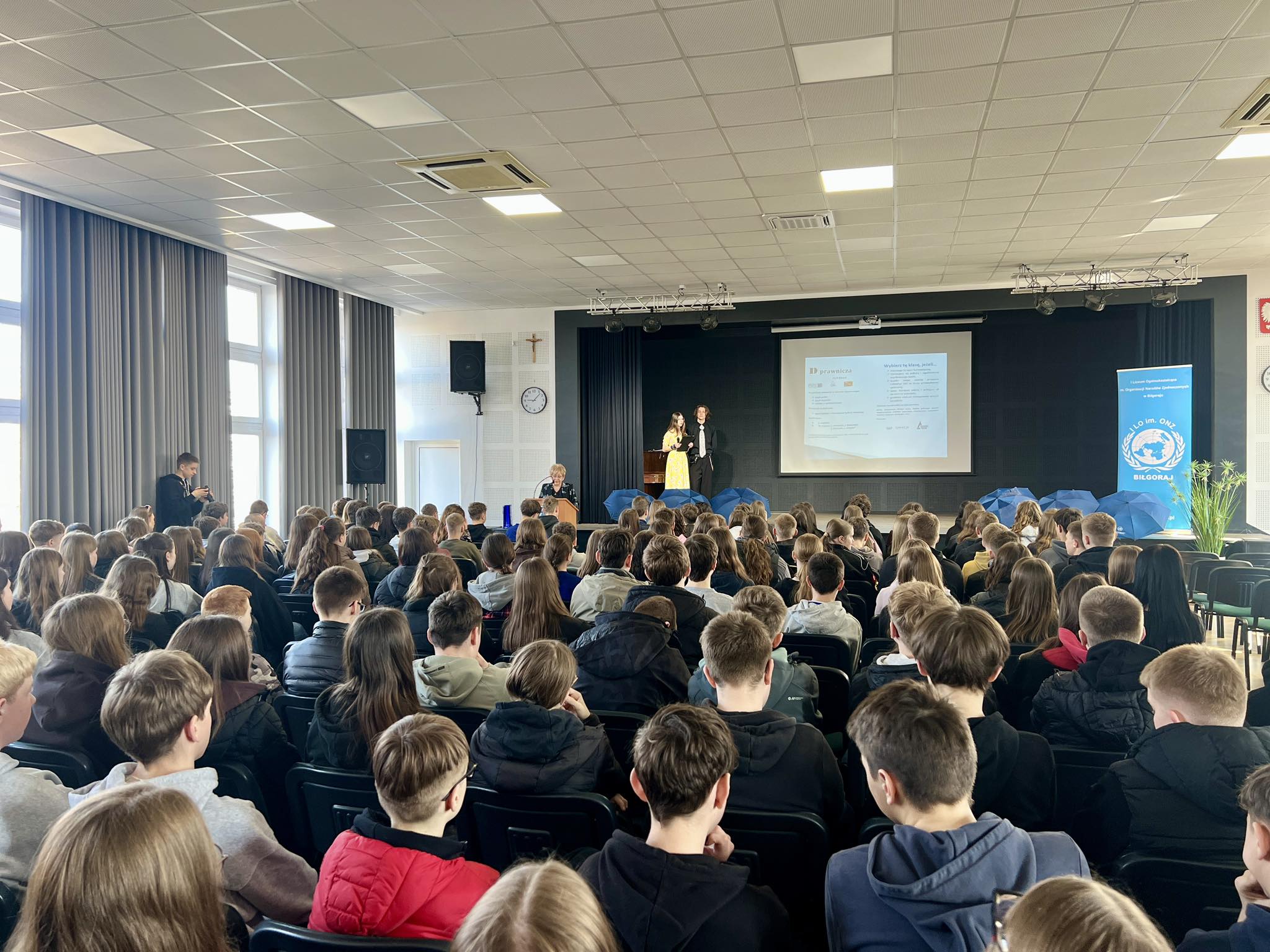 20 marca 2026 roku nasze liceum odwiedzili uczniowie z powiatu biłgorajskiego, a okazją do tego było Dzień Otwarty szkoły. W auli zaproszonych gości witała dyrektor Jolanta Rycyk, która zapoznała młodzież z ofertą edukacyjną na rok szkolny 2026/2027. Z kolei uczniowie z Samorządu Szkolnego przedstawili najważniejsze informacje o szkole i przeprowadzili quiz z nagrodami. Potem ósmoklasiści w towarzystwie naszych nauczycieli i uczniów zostali zaproszeni do zwiedzania szkoły. Zobaczyli m. in. aulę, sale lekcyjne, pracownie: informatyczne, chemiczne, fizyczne, biologiczne, centrum grafiki komputerowej, nowoczesne pracownie językowe, w tym nowe laboratorium języka angielskiego, bibliotekę z czytelnią, obiekty sportowe, a także strefy relaksu.