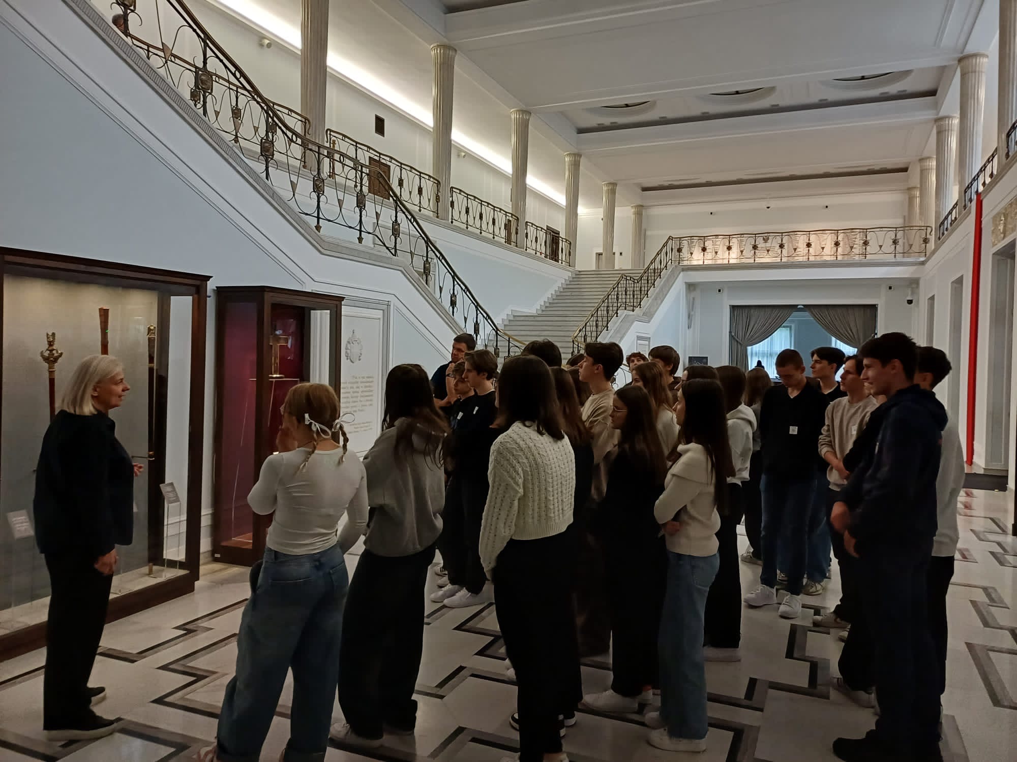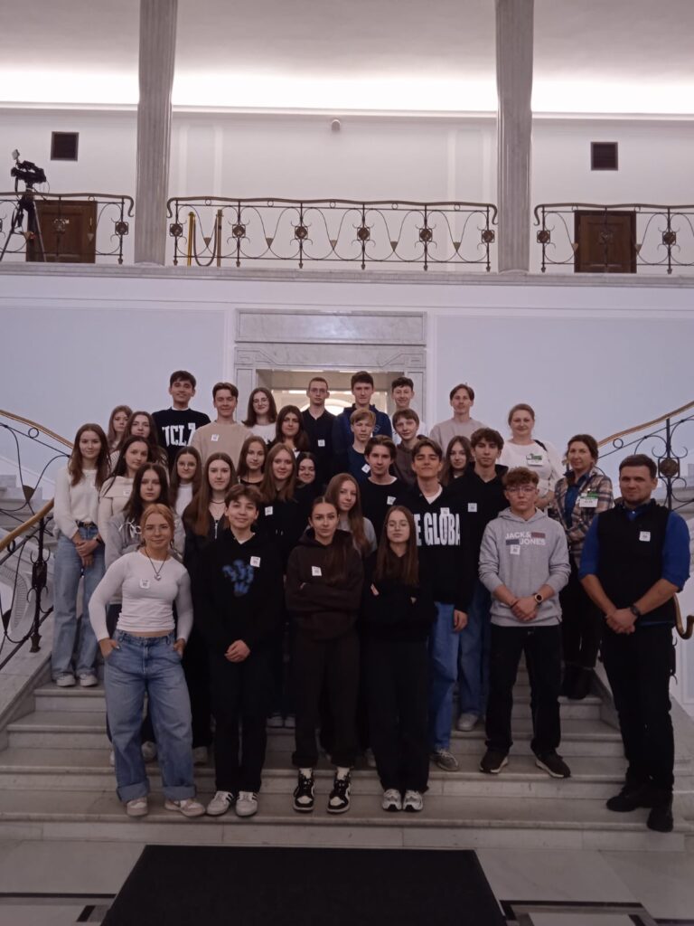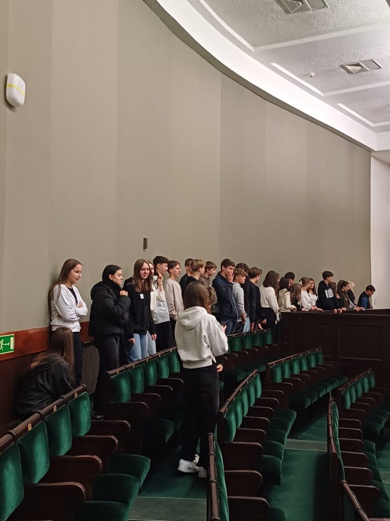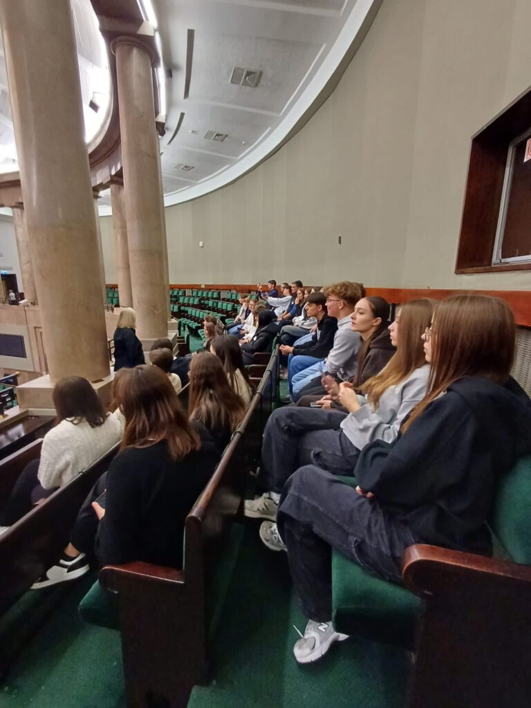 admin 2 lata temu Organizacyjne , Wycieczki16 października 2023 roku klasa II C udała się na wycieczkę do stolicy. Pierwszym punktem programu było zwiedzanie z przewodnikiem gmachu Sejmu RP, gdzie licealiści z bliska mogli zobaczyć nie tylko salę obrad czy kuluary, ale również poczuć napięcie towarzyszące dziennikarzom i posłom oczekującym na wyniki wyborów. Kolejnym punktem programu była wizyta w Teatrze Komedii i spektakl w reżyserii Magdaleny Miklasz na motywach powieści Clementine Beauvais „Pasztety do boju!”. Podczas pełnej humoru opowieści o radzeniu sobie z hejtem w sieci, akceptacji swojego wyglądu, ale też odwadze, przyjaźni i miłości, które są fundamentem zdrowych relacji, serca publiczności skradli aktorzy młodego pokolenia: Mirella Burcewicz, Magdalena Duszak, Ewa Sadowska, Katarzyna Zielińska, Kamil Studnicki, James Malcolm i Artur Chamski. Po spektaklu uczniowie udali się na Niewidzialną Wystawę. Była to wyjątkowa interaktywna podróż w świat całkowitej ciemności, podczas której mogli przekonać się, jak radzić sobie w codziennych sytuacjach bez pomocy wzroku – wyłącznie za pomocą zmysłu słuchu, dotyku, węchu. Wieczorem licealiści pożegnali Warszawę krótkim spacerem po wielobarwnie rozświetlonych ulicach.
