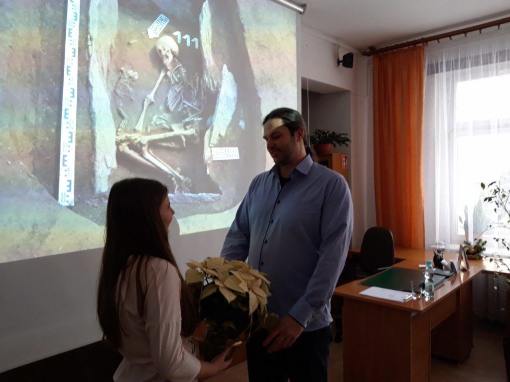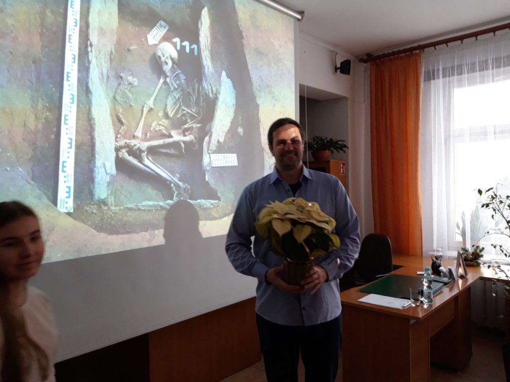 18 grudnia młodzież z klas licealnych miała okazję uczestniczyć w interesującym wykładzie pt. „W krainie gryfów strzegących złota. Prehistoryczne podróże po górach Syberii” prowadzonym przez dra Łukasza Oleszczaka, archeologa związanego z Uniwersytetem Jagiellońskim w Krakowie, absolwenta naszej szkoły. Zaproszony gość z wielką pasją i zaangażowaniem opowiadał o pracy archeologa i prowadzonych przez siebie badaniach wykopaliskowych w Rosji, w górach Ałtaj.  Szczególną uwagę zwrócił na nekropolę w rejonie miejscowości Manżerok, składającą się z ponad 100 kurhanów, w której składano koczowników Wielkiego Stepu sprzed 2500 lat. Uzupełnieniem wykładu była prezentacja multimedialna zawierająca bardzo bogatą dokumentację archeologiczną dotyczącą omawianego okresu historycznego.