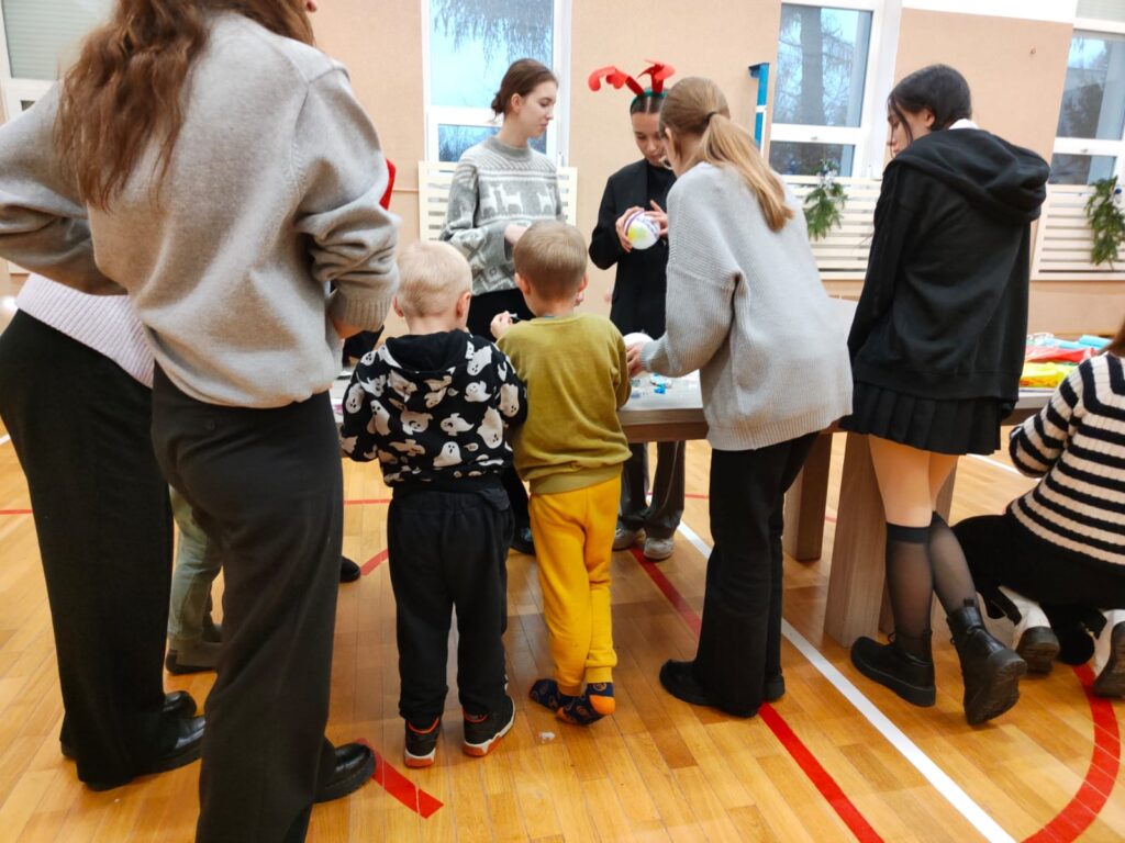 ​W tym roku 20 grudnia 2023 roku również liczna grupa naszej młodzieży razem z opiekunami Koła Przyjaciół Biblioteki odwiedziła podopiecznych Wioski Dziecięcej. Tym razem dziewczęta przygotowały prezenty w postaci własnoręcznie upieczonych babeczek, stroik świąteczny i kartkę z życzeniami. Największą radość sprawiła dzieciom zabawa z naszymi licealistami, tańce, śpiewy i wspólne wykonywanie ozdób choinkowych. W atmosferze świątecznej nie mogło zabraknąć najważniejszego punktu programu, czyli śpiewania z towarzyszeniem instrumentów kolęd i piosenek świątecznych.