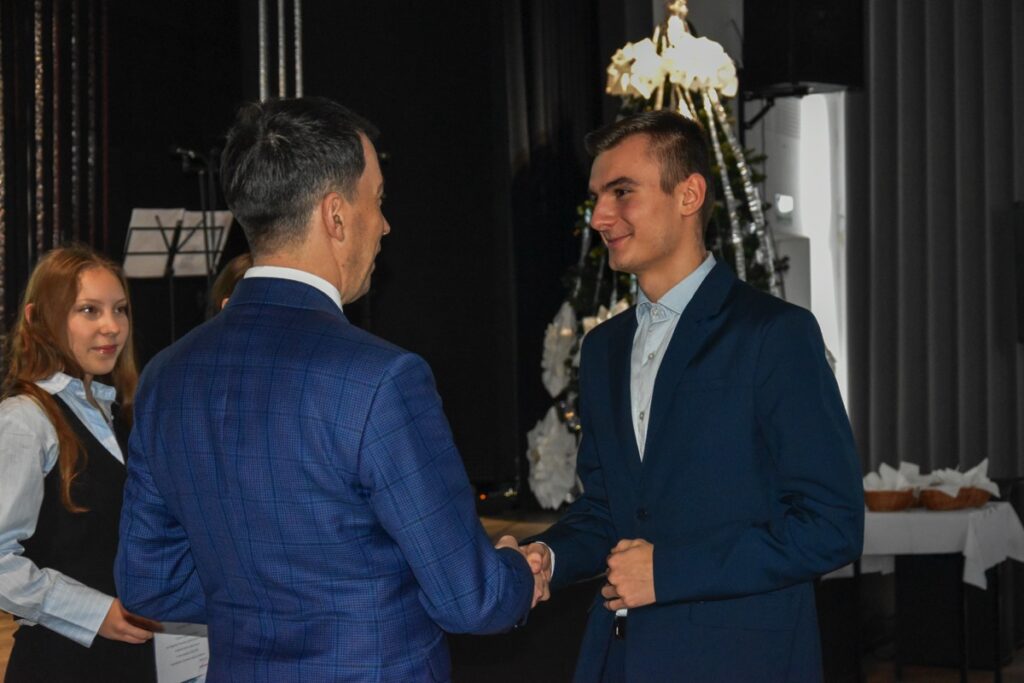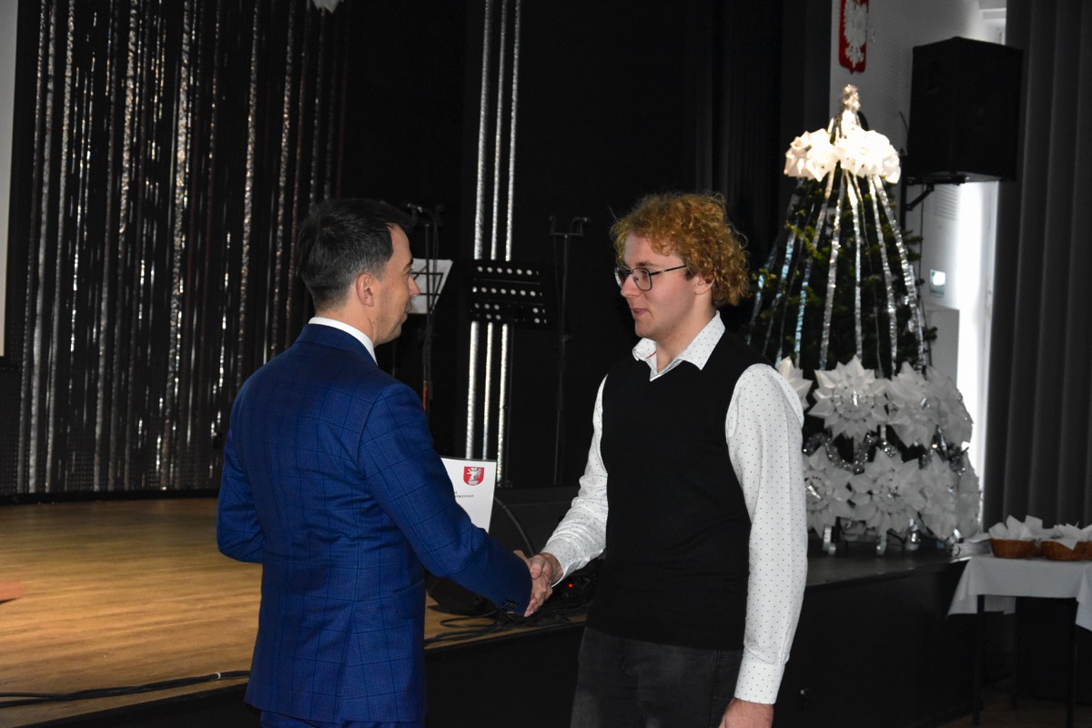 admin 1 rok temu Organizacyjne20 grudnia 2024 roku podczas spotkania z okazji świąt Bożego Narodzenia Starosta Biłgorajski Andrzej Szarlip wręczył stypendia uczniom, którzy osiągnęli bardzo dobre wyniki w nauce i sporcie oraz odnieśli sukcesy w olimpiadach i konkursach. Na zakończenie uroczystości Starosta życzył licealistom zdrowych, spokojnych świąt w rodzinnej atmosferze oraz wszelkiej pomyślności w nadchodzącym 2025 roku.