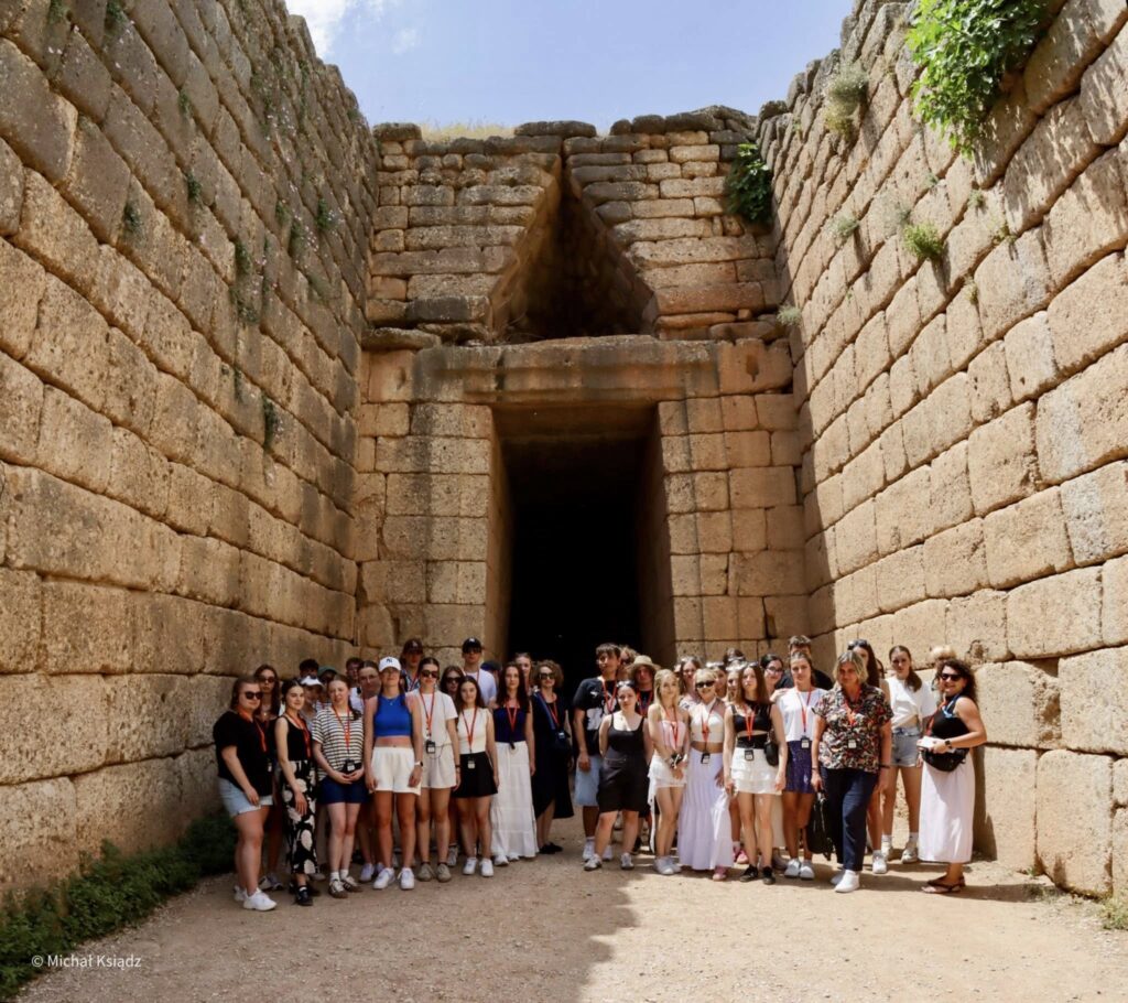 admin 11 miesięcy temu Organizacyjne , WycieczkiW dniach 5-13 maja 2025 roku odbyła się wycieczka uczniów naszej szkoły do Grecji-śladami mitologii. Pierwszym odwiedzonym miastem była Paralia Katerinis, gdzie młodzież miała okazję odpocząć po podróży i zwiedzić miasteczko. Kolejnym punktem wycieczki był wyjazd do Meteorów. Licealiści zwiedzili tam przepiękne klasztory, odwiedzili pracownię ikon i podziwiali skalne widoki. Podczas całodniowego rejsu na malowniczą wyspę Skiathos świetnie się bawili, tańcząc zorbę. Ciekawostką jest to, że nagrywano tam sceny kultowego filmu „Mamma Mia”. Oprócz zwiedzania licealiści odpoczywali na plaży Koukounaries, słynącej na świecie ze „złotego” piasku. W Atenach podziwiali Plakę, Plac Syndagma z budynkiem Pałacu Królewskiego, przy którym obserwowali zmianę warty, a także Stadion Olimpijski i Akropol. W Mykenach z kolei młodzież zwiedzała Lwią Bramę i grobowiec Agamemnona. W czasie pobytu w Grecji uczniowie podziwiali też największy i najlepiej zachowany amfiteatr Grecji, a także Nafplio – pierwszą stolicę Grecji. Na koniec odwiedzili Saloniki.Młodzież podczas wycieczki miała okazję zobaczyć i poznać kulturę i historię Grecji, podziwiać piękną architekturę oraz spróbować tradycyjnej kuchni. Wyjazd z pewnością na długo zostanie w pamięci licealistów.