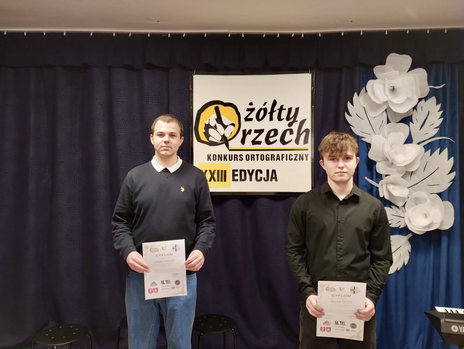 admin 2 lata temu Konkursy , Organizacyjne , OsiągnięciaUczniowie naszej szkoły odnieśli sukcesy w Powiatowym Konkursie Ortograficznym „Żółty Orzech”. Jakub Trybalski z klasy III F zajął I miejsce a Michał Dziura z klasy III G zdobył III nagrodę. Nasi reprezentanci po raz kolejny triumfują w zmaganiach ortograficznych. Gratulujemy budzących podziw umiejętności i życzymy zwycięstw w następnych konkursach.