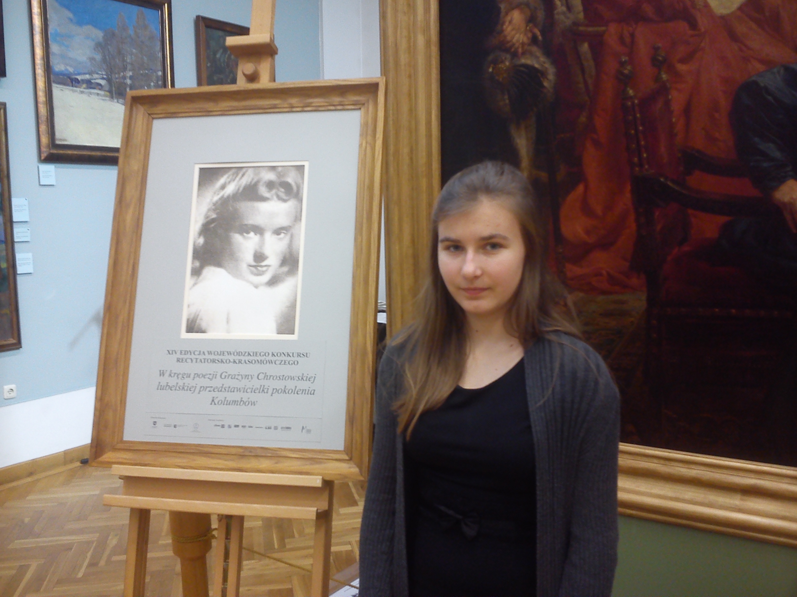 Aleksandra Rybak z klasy I C zajęła I miejsce w finale XIV edycji Wojewódzkiego Konkursu Recytatorsko-Krasomówczego „W kręgu poezji Grażyny Chrostowskiej, lubelskiej przedstawicielki pokolenia Kolumbów”, który odbył się 20.10.2016 roku w Galerii Malarstwa XVII-XIX wieku na Zamku Lubelskim.
