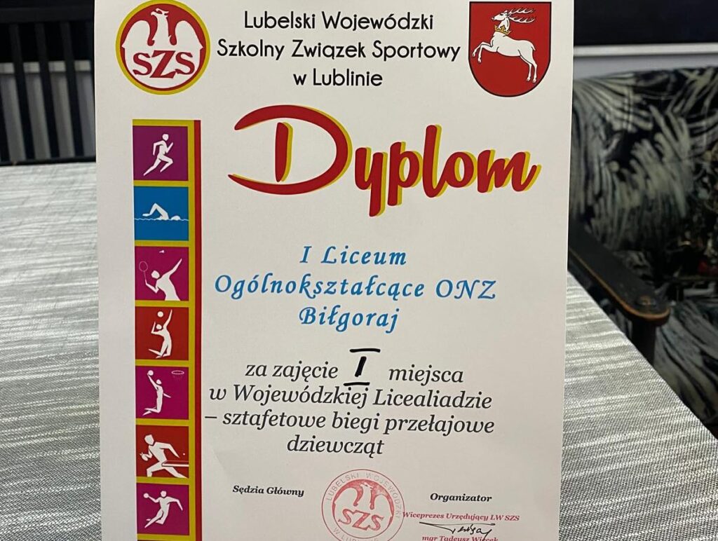 18 października 2024 roku w Tomaszowie Lubelskim złoty medal w finale Wojewódzkiej Licealiady w Sztafetowych Biegach Przełajowych zdobyła drużyna dziewcząt z naszego liceum: Karolina Guska (IV C), Natalia Metner (IV F), Marlena Tyszko (IV C), Kornelia Jagucak (III i), Natalia Przytuła (II C), Oliwia Rożek (III H), Oliwia Leleń (IV E), Anna Kusz (II G) i Zofia Garbacz (I D). Tym samym nasze mistrzynie województwa uzyskały awans do etapu ogólnopolskiego, który odbędzie się 25 października 2024 roku w Tomaszowie Lubelskim. W rywalizacji uczestniczyło 11 drużyn z sześciu rejonów.​