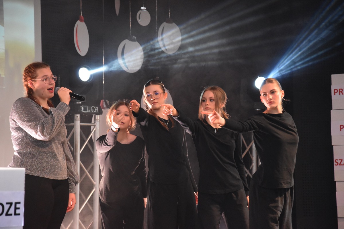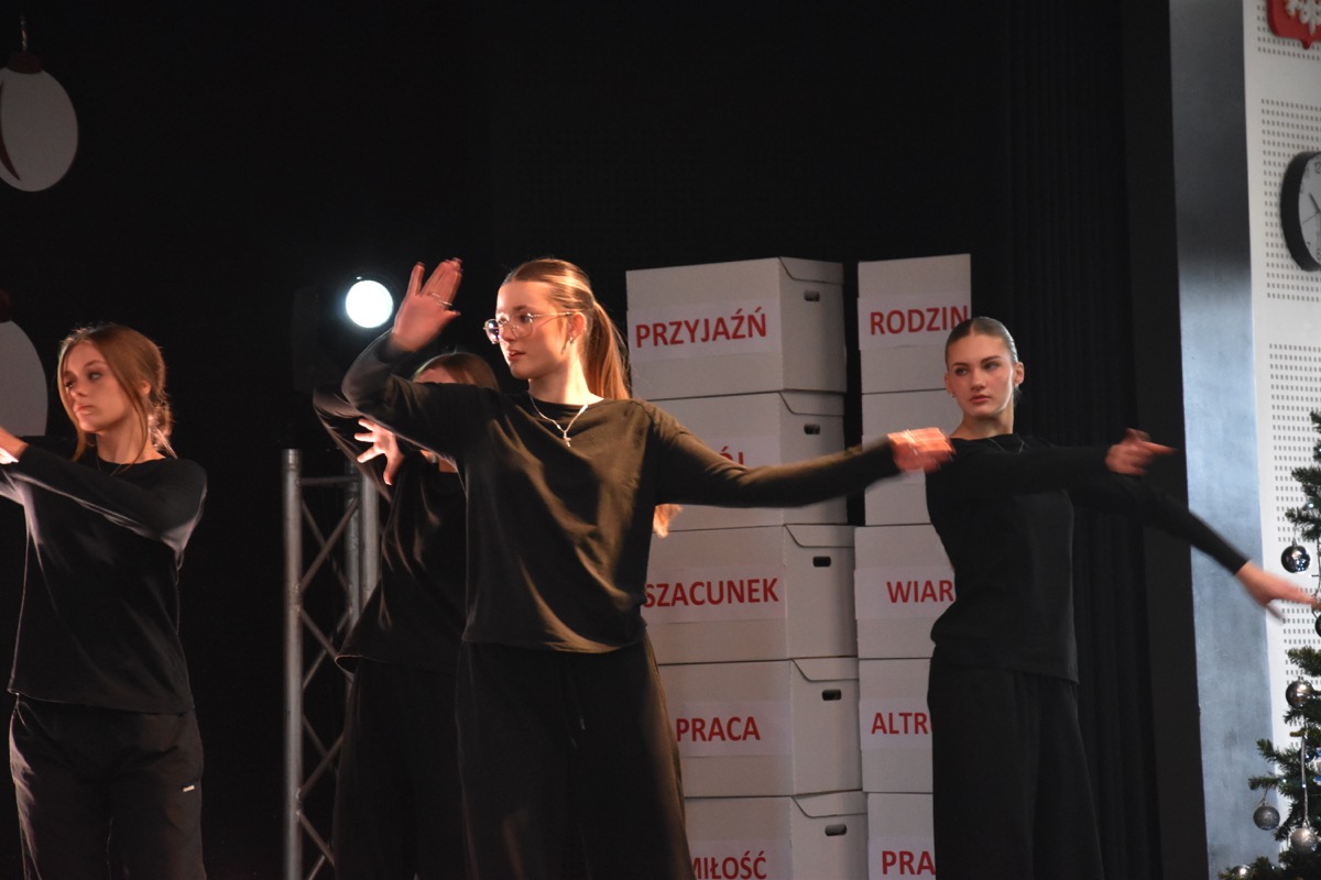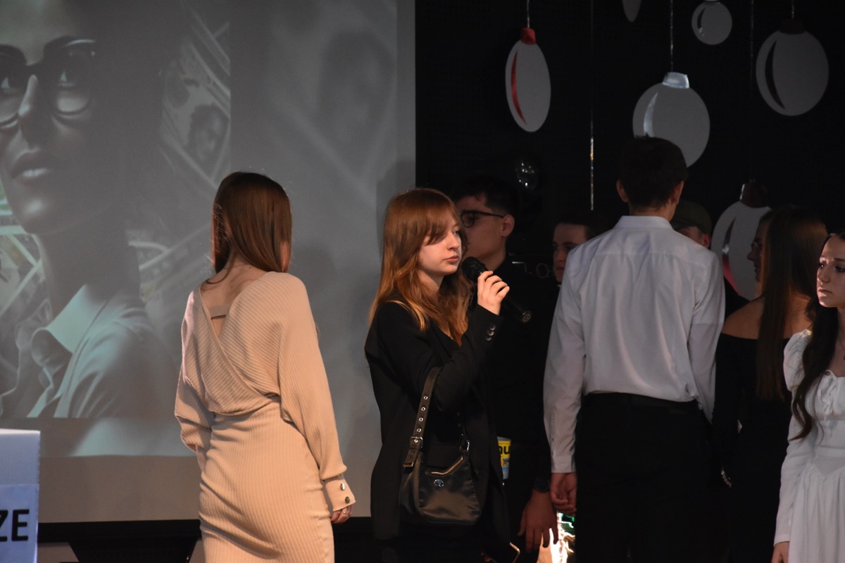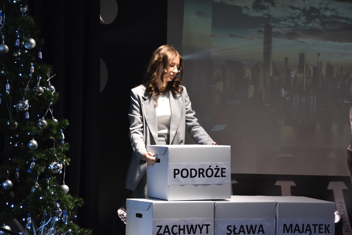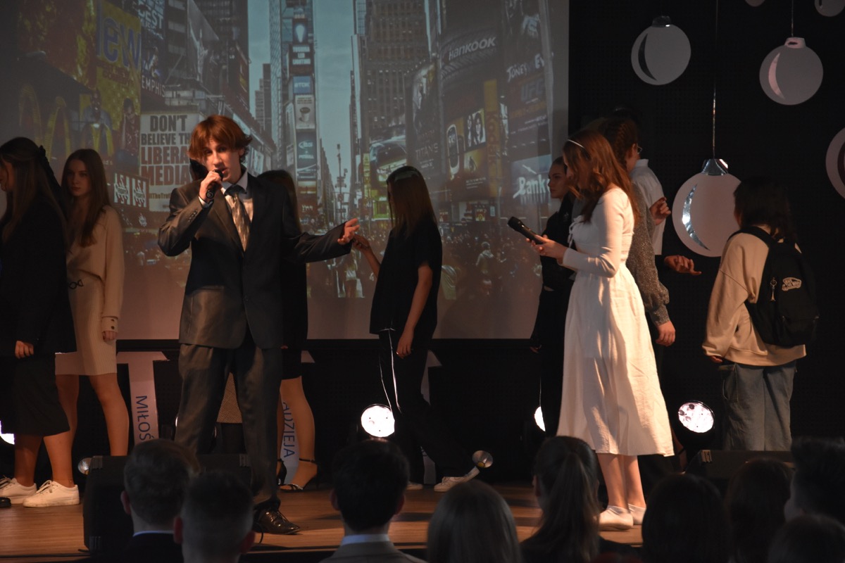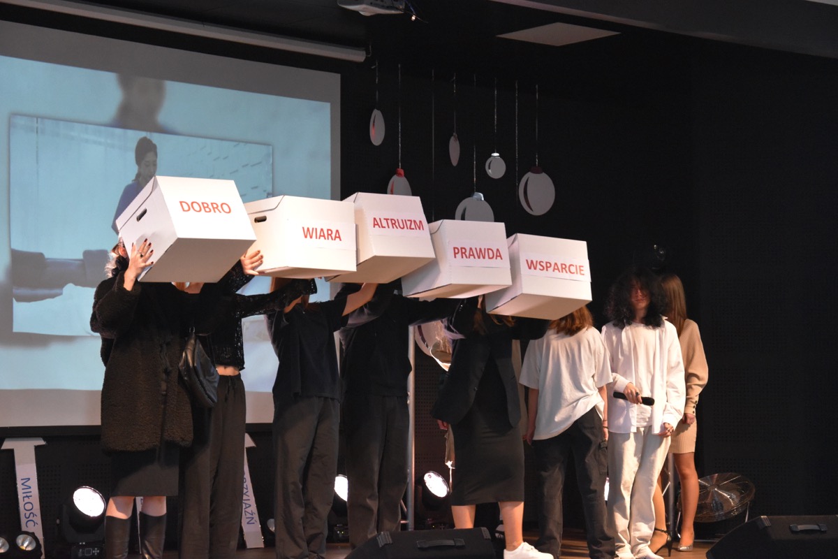 Zwyczajem lat ubiegłych, tuż przed świętami 22 grudnia 2023 roku, piękna uroczystość po raz kolejny odbyła się w auli. Część artystyczna prezentowała wydarzenia współczesnego świata, wykorzystując motywy i nawiązania biblijne sprzed dwóch tysięcy lat. Przedstawienie nie tylko wprowadziło widzów w świąteczny nastrój, ale także skłaniało do refleksji nad tym, co jest w życiu najważniejsze. Dodatkowym walorem spektaklu była piękna oprawa muzyczna.