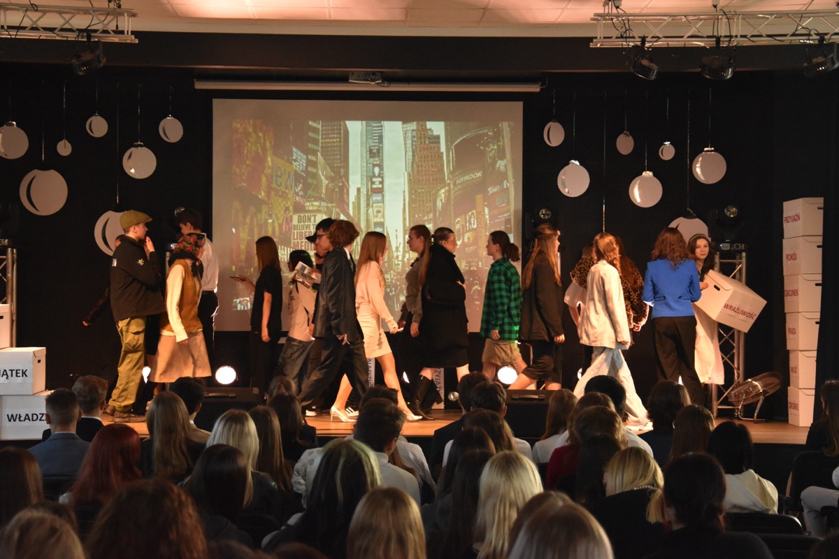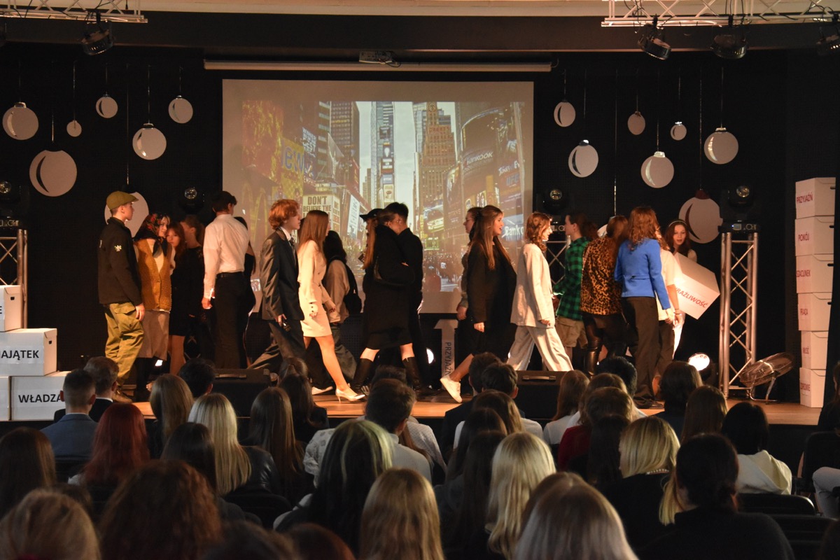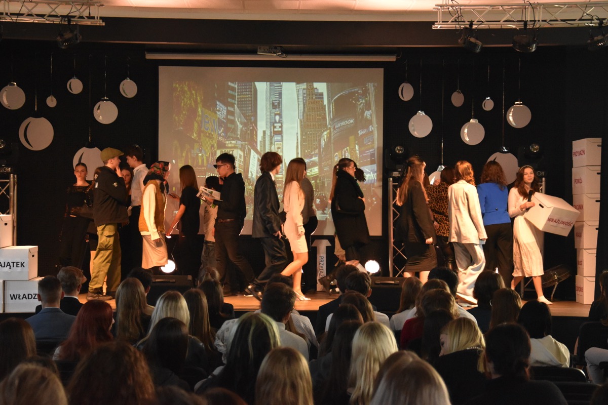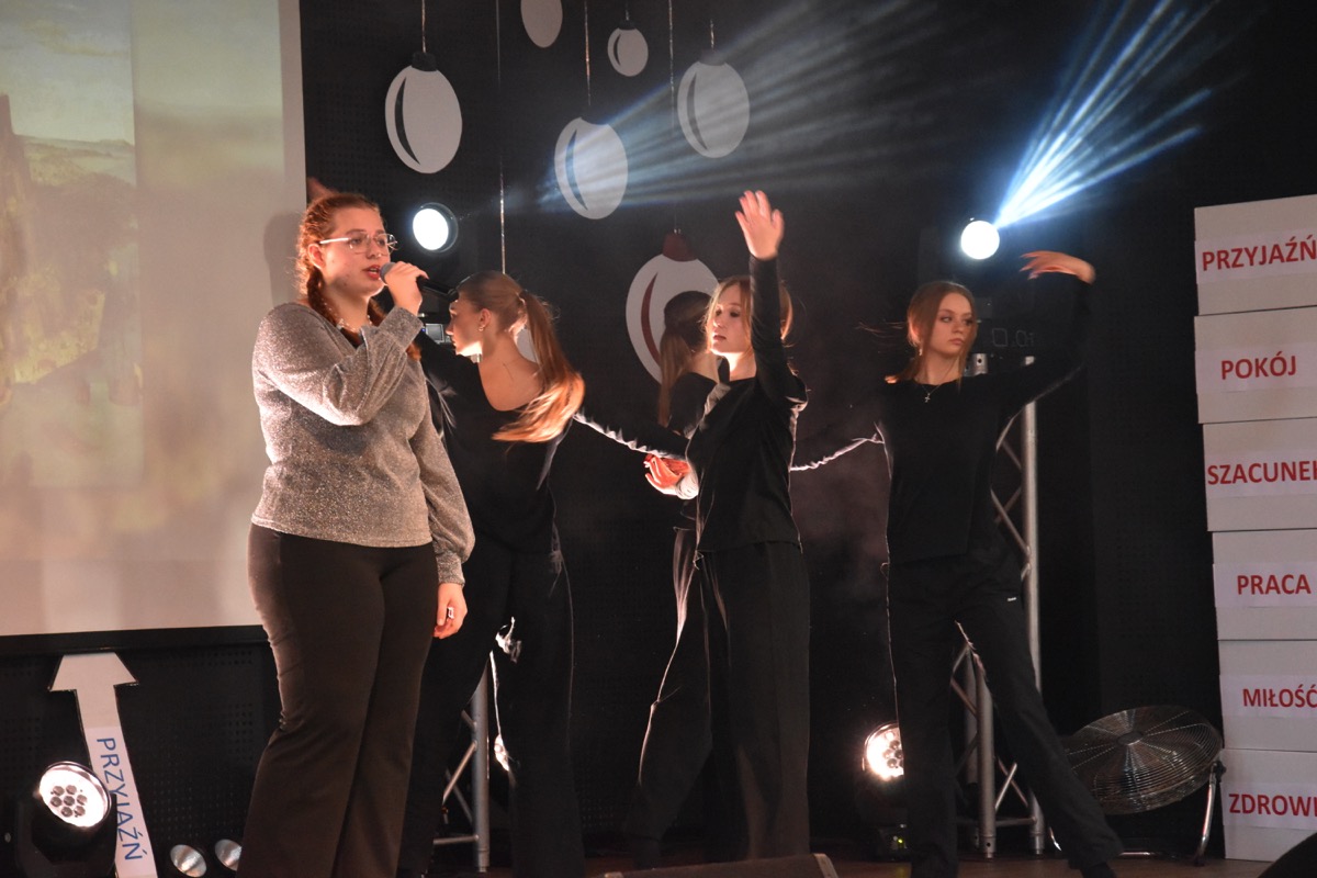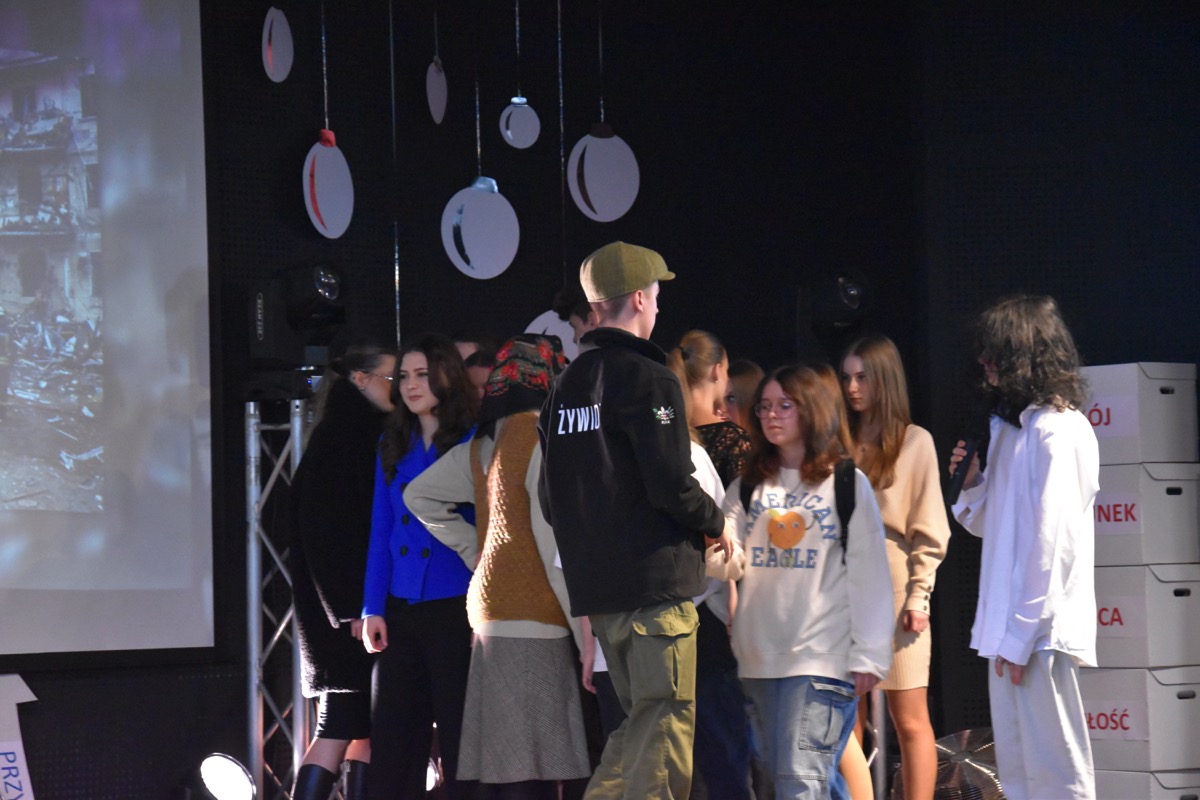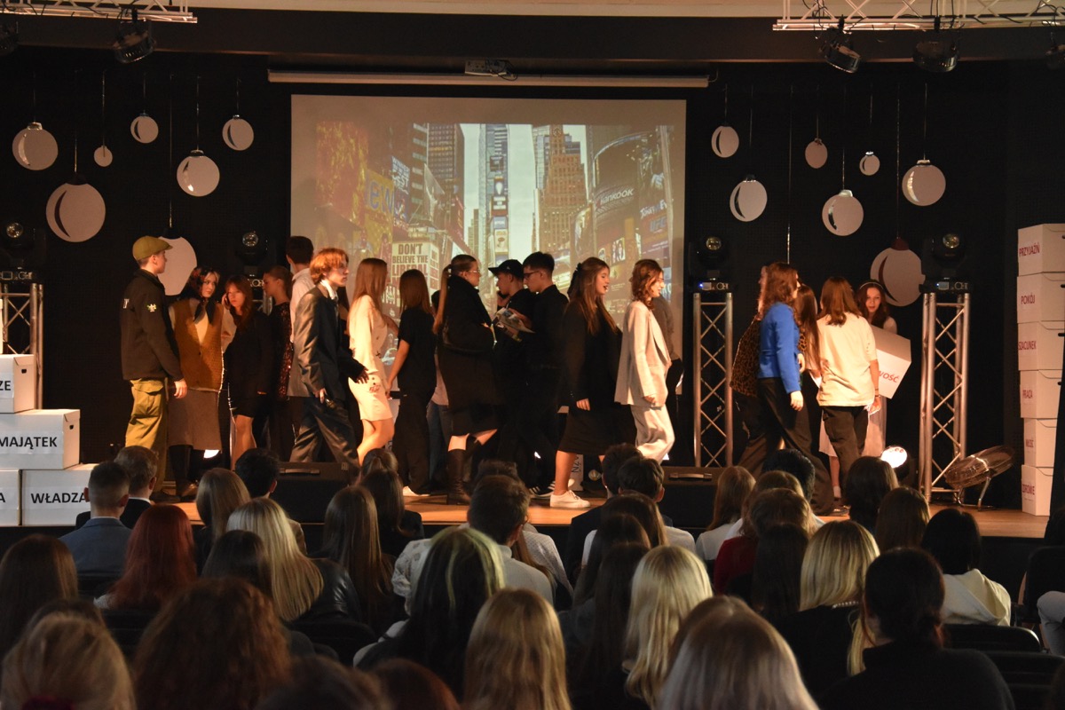 Zwyczajem lat ubiegłych, tuż przed świętami 22 grudnia 2023 roku, piękna uroczystość po raz kolejny odbyła się w auli. Część artystyczna prezentowała wydarzenia współczesnego świata, wykorzystując motywy i nawiązania biblijne sprzed dwóch tysięcy lat. Przedstawienie nie tylko wprowadziło widzów w świąteczny nastrój, ale także skłaniało do refleksji nad tym, co jest w życiu najważniejsze. Dodatkowym walorem spektaklu była piękna oprawa muzyczna.