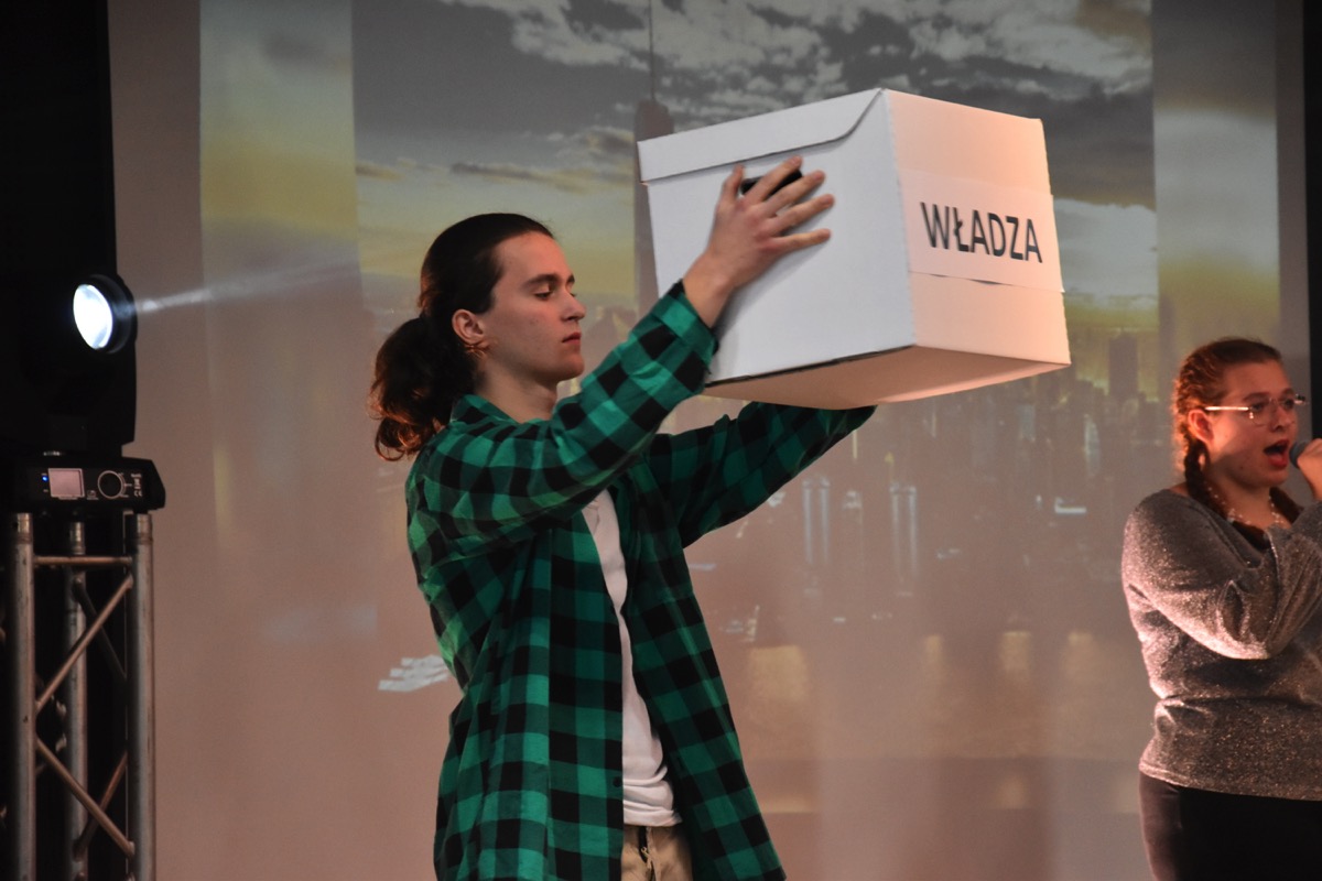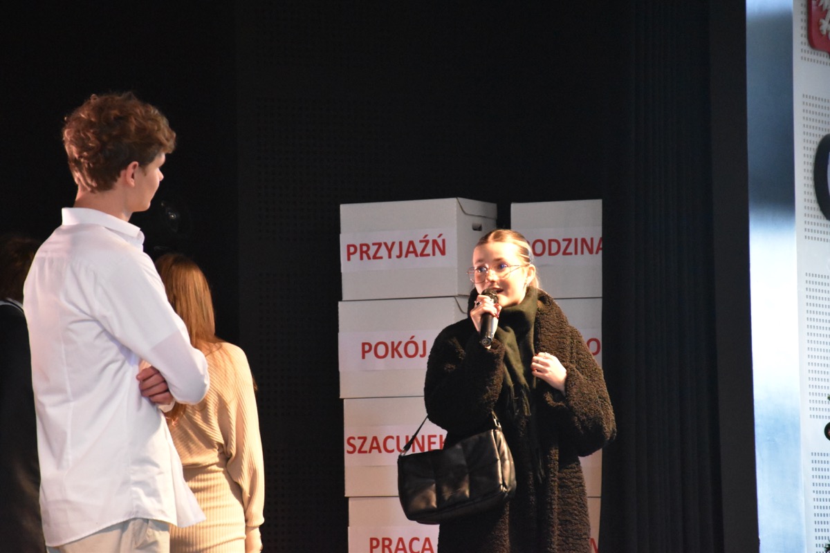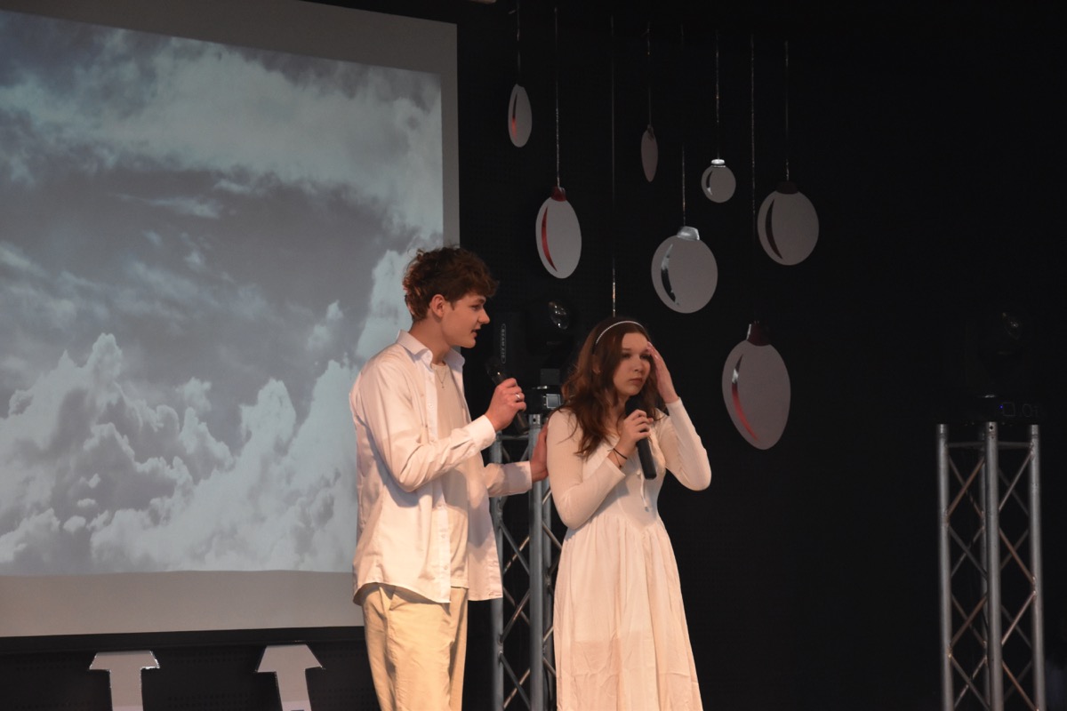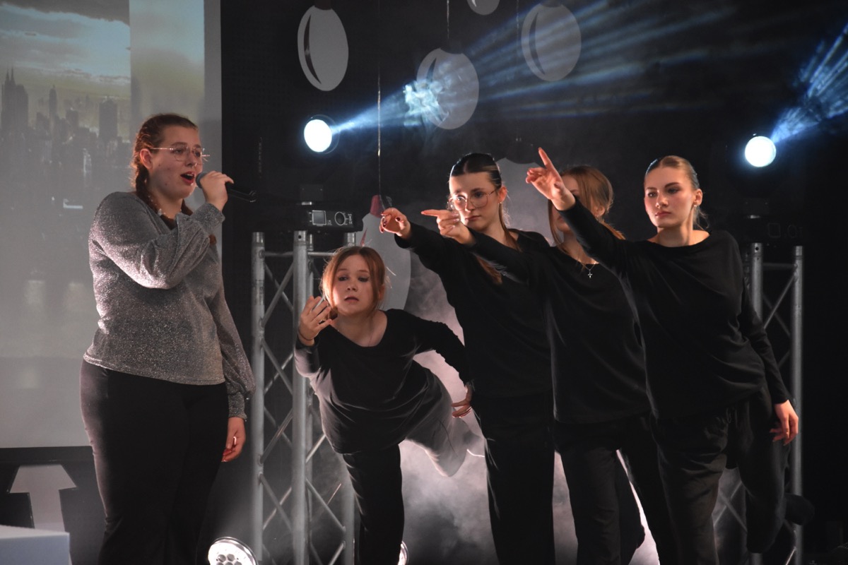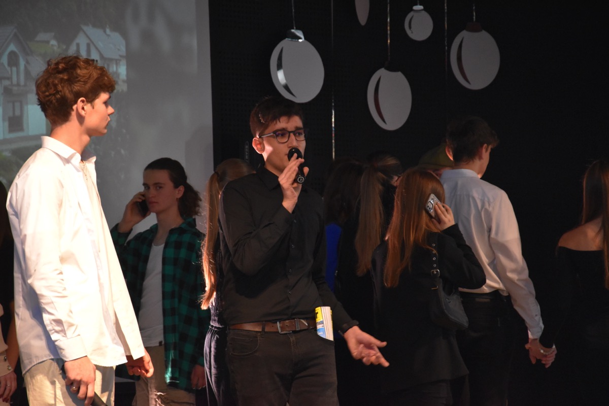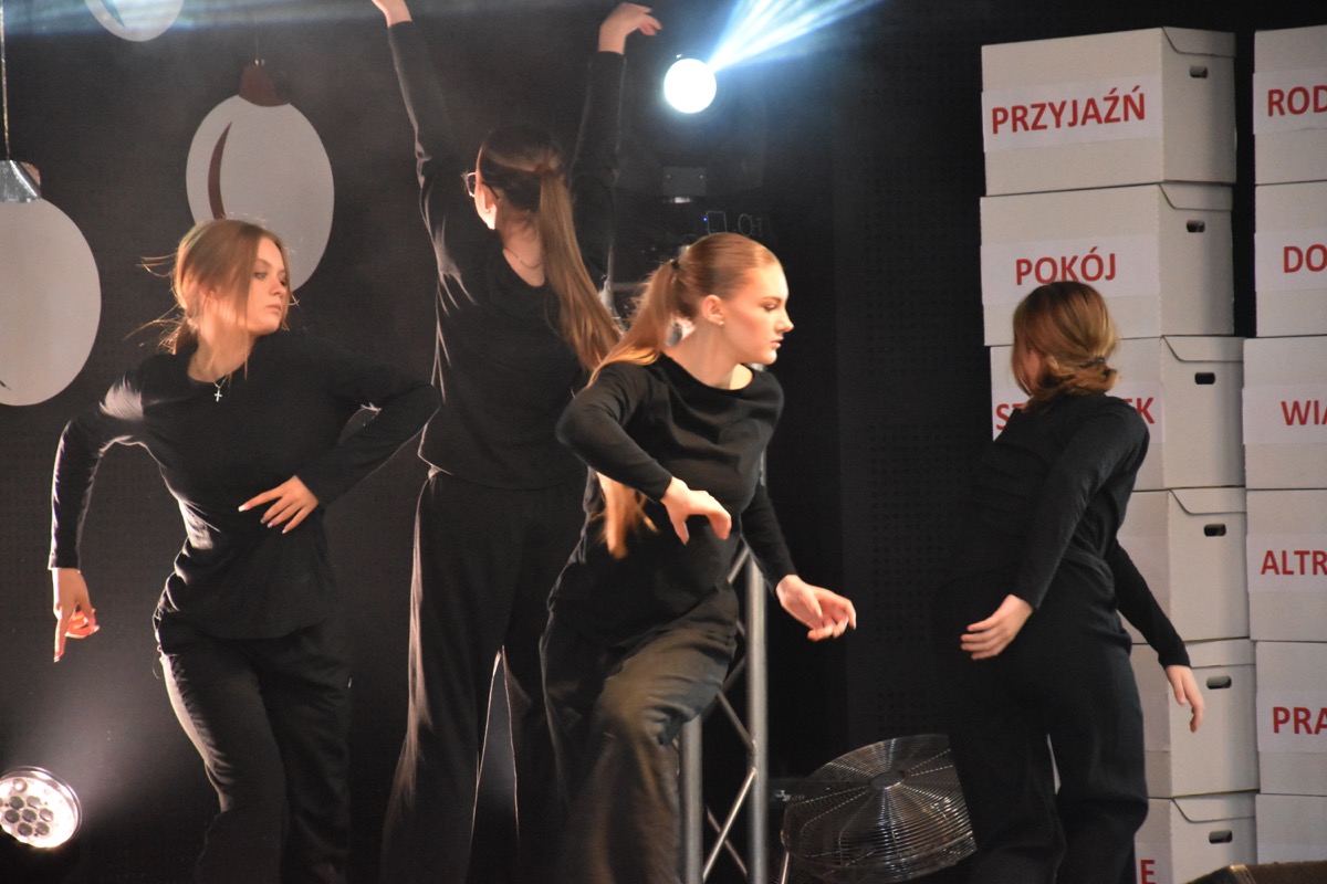Zwyczajem lat ubiegłych, tuż przed świętami 22 grudnia 2023 roku, piękna uroczystość po raz kolejny odbyła się w auli. Część artystyczna prezentowała wydarzenia współczesnego świata, wykorzystując motywy i nawiązania biblijne sprzed dwóch tysięcy lat. Przedstawienie nie tylko wprowadziło widzów w świąteczny nastrój, ale także skłaniało do refleksji nad tym, co jest w życiu najważniejsze. Dodatkowym walorem spektaklu była piękna oprawa muzyczna.