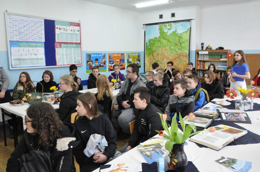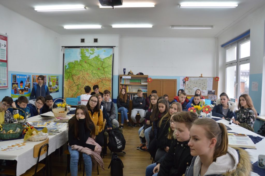 W auli goście zostali zapoznani z ofertą na rok szkolny 2019/2020 i obejrzeli krótką część artystyczną, a później wspólnie odbyliśmy wycieczkę po obiekcie szkolnym.