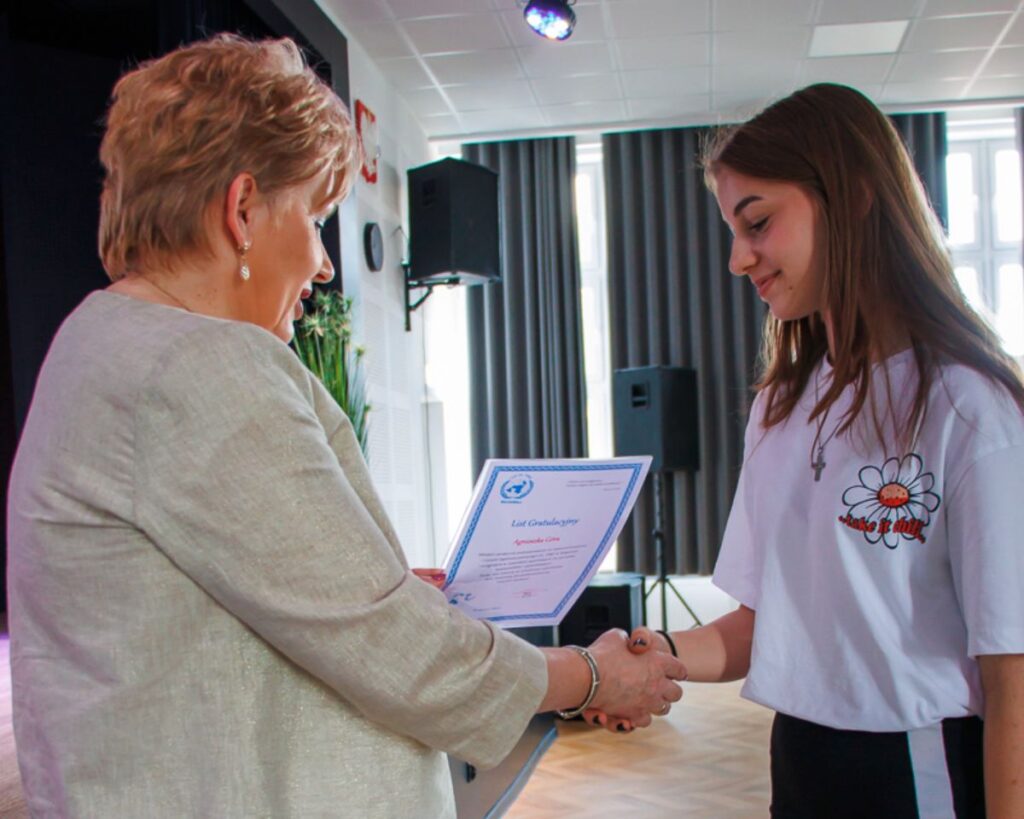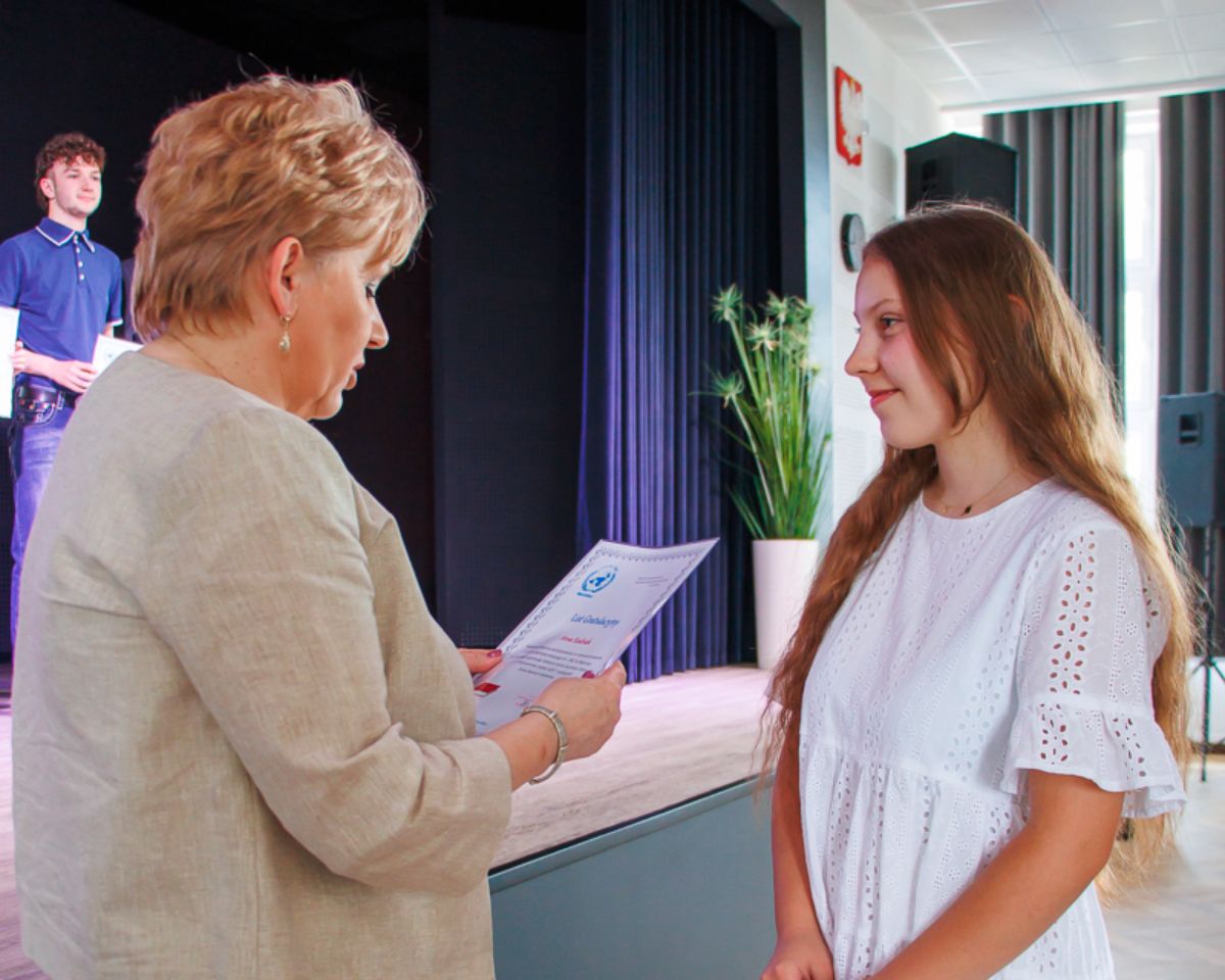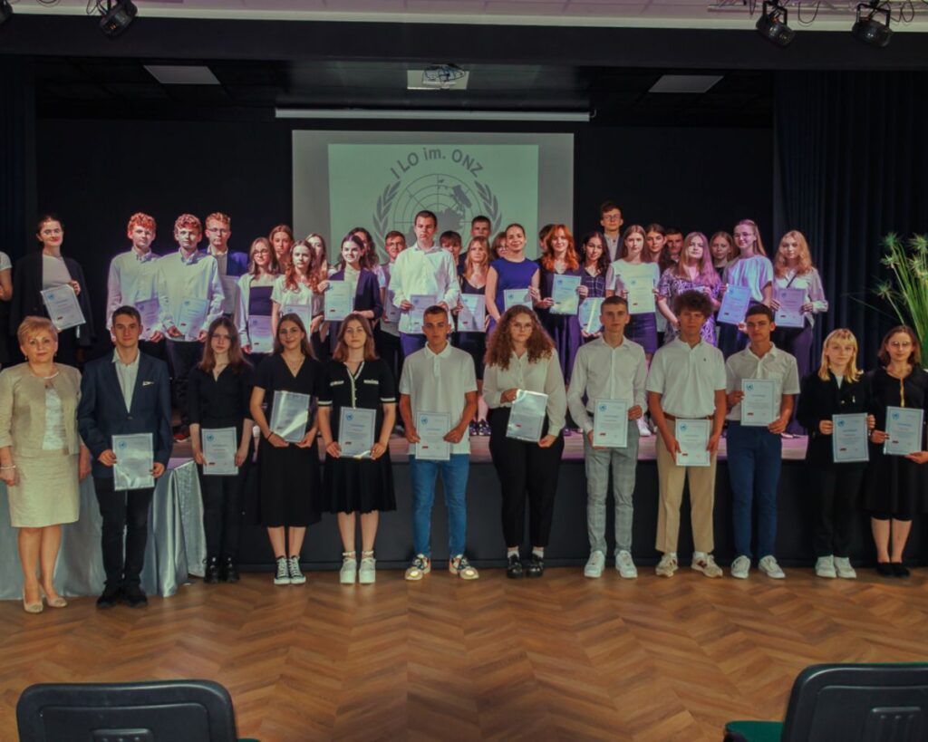 Uczniowie naszego liceum wzięli udział w 23 olimpiadach, 55 konkursach, a sukcesy osiągnęło 76 licealistów. Z kolei w zawodach sportowych po najwyższe laury sięgnęło 56 uczniów. Wręczając listy gratulacyjne, Dyrektor Jolanta Rycyk życzyła wszystkim dalszych sukcesów.