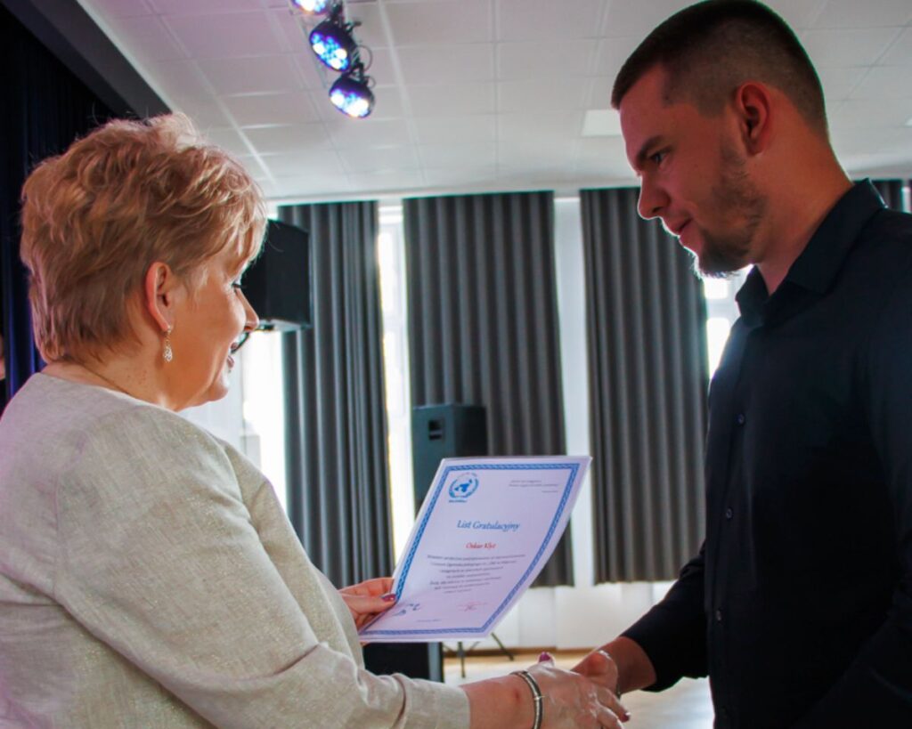 Kamil Koman 3 lata temu Konkursy , Osiągnięcia , Sport , Uroczystości22 czerwca 2023 roku w auli odbył się Szkolny Dzień Olimpijczyka. Wzięli w nim udział uczniowie, którzy w roku szkolnym 2022/2023 osiągnęli sukcesy w olimpiadach i konkursach przedmiotowych oraz zawodach sportowych, a także ich opiekunowie. Dyrektor Jolanta Rycyk podziękowała uczniom za reprezentowanie szkoły oraz pogratulowała osiągniętych wyników. Wyraziła także wdzięczność nauczycielom za zaangażowanie i pracę włożoną w przygotowanie oraz wspieranie młodzieży w rozwijaniu zainteresowań i talentów.