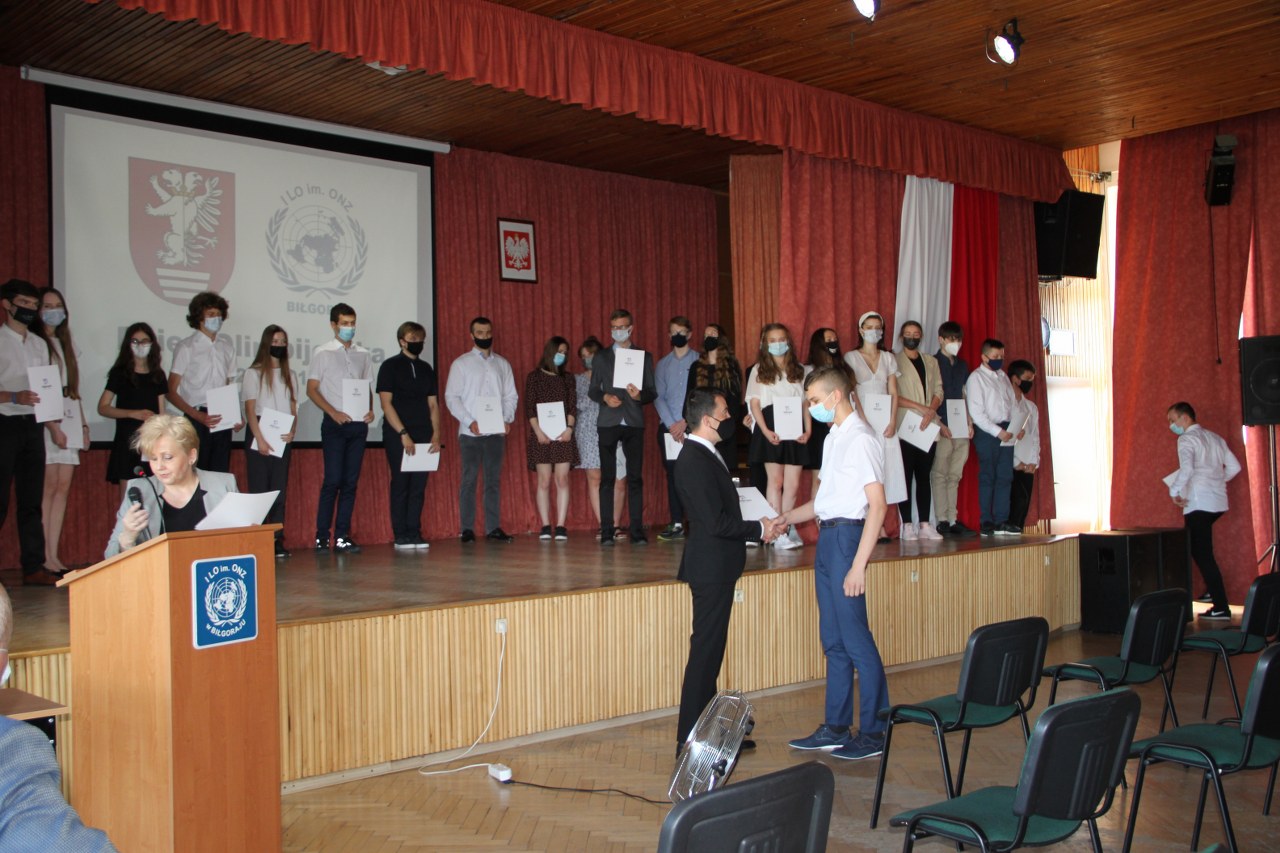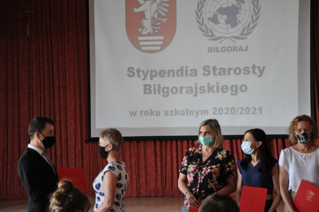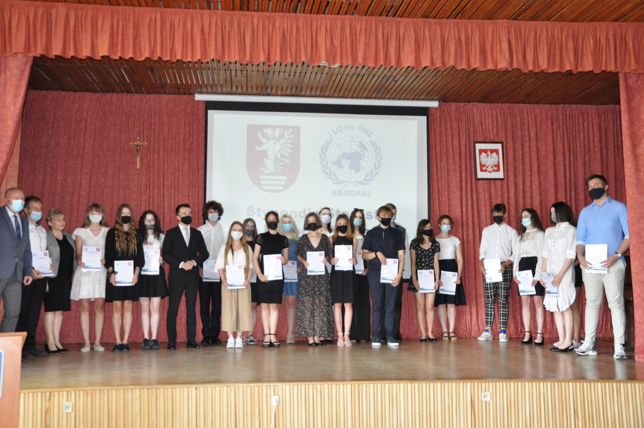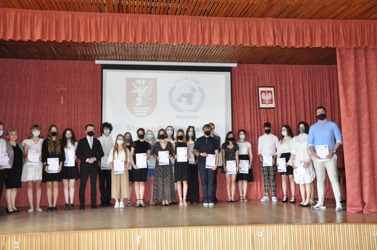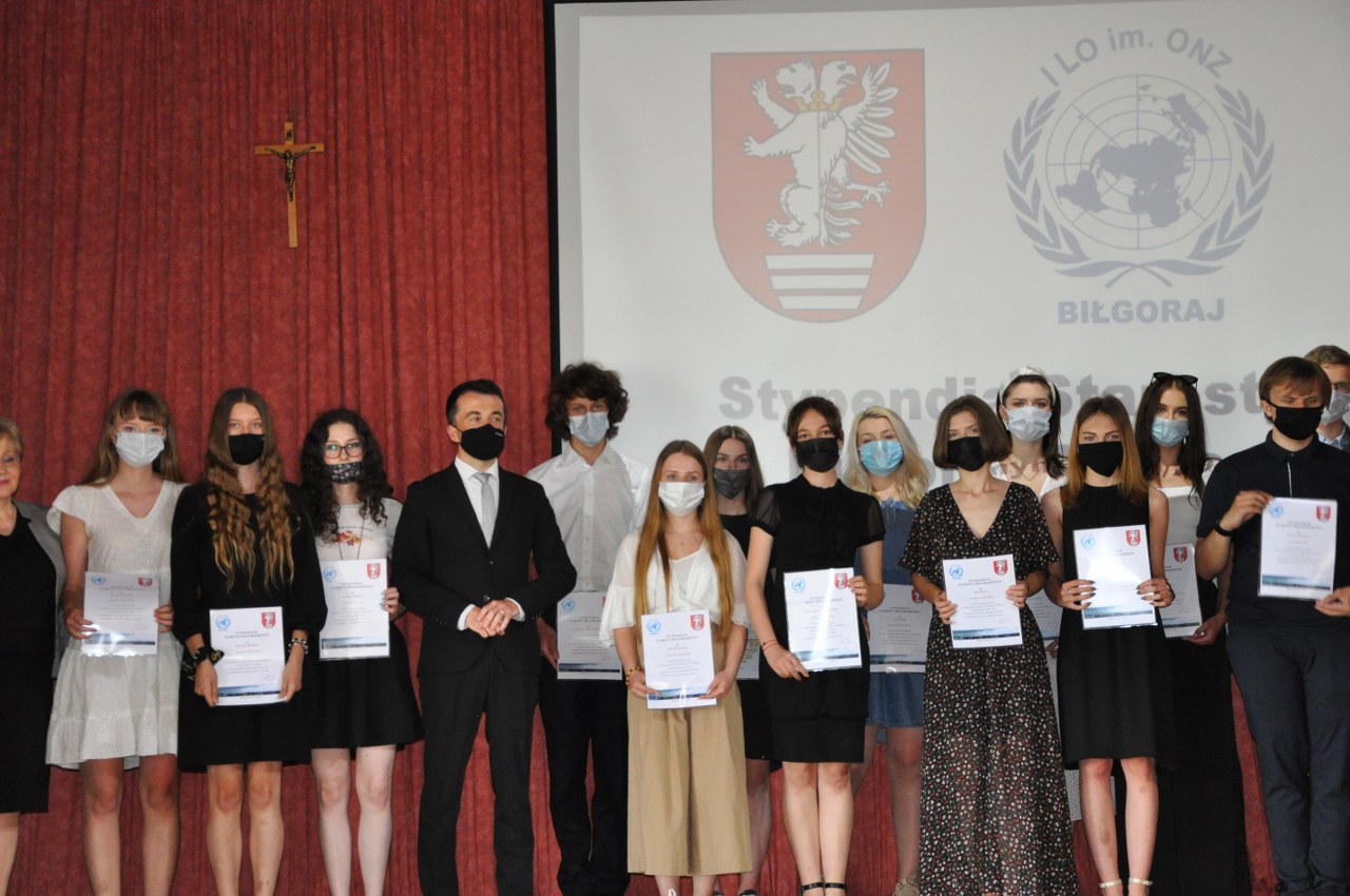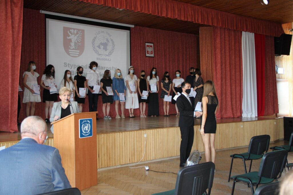 21 czerwca odbył się w auli naszej szkoły Dzień Olimpijczyka. Wzięli w nim udział: Starosta biłgorajski pan Andrzej Szarlip, kierownik Wydziału Oświaty, Kultury, Sportu i Turystyki Starostwa Powiatowego pan Jan Koman oraz uczniowie, którzy w roku szkolnym 2020/2021 osiągnęli sukcesy  w olimpiadach i konkursach przedmiotowych z opiekunami. Pan Starosta wręczył wyróżnionym licealistom listy gratulacyjne i karty  podarunkowe. Podziękował także nauczycielom za zaangażowanie i pracę włożoną w przygotowanie uczniów do olimpiad i konkursów oraz pomoc w rozwijaniu pasji i zainteresowań młodzieży. Podczas uroczystości wręczone zostały także stypendia Starosty Biłgorajskiego za bardzo dobre wyniki w nauce w I okresie roku szkolnego 2020/2021.