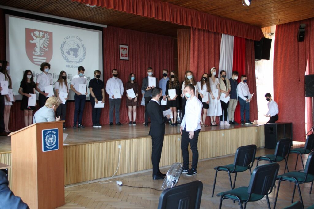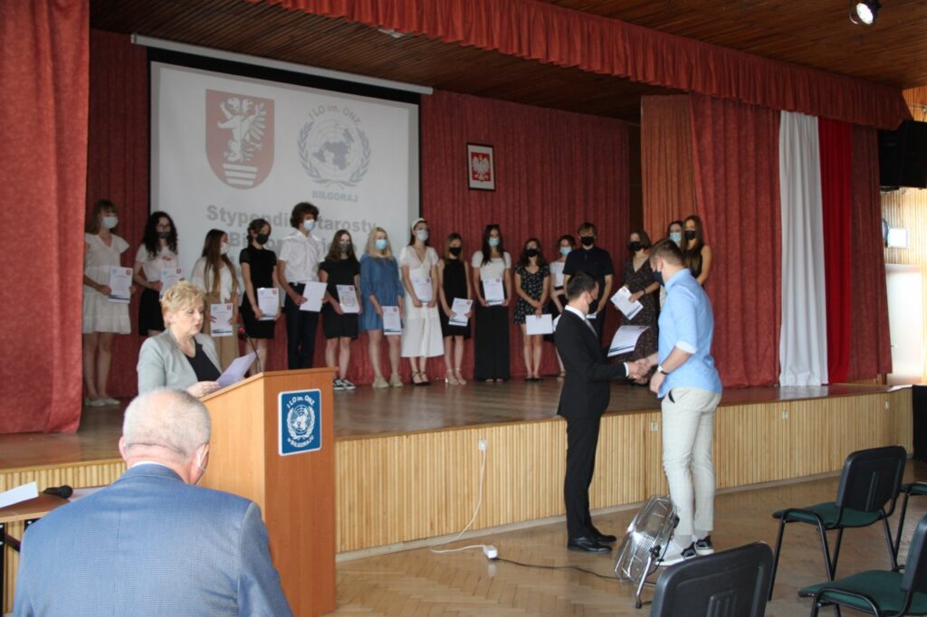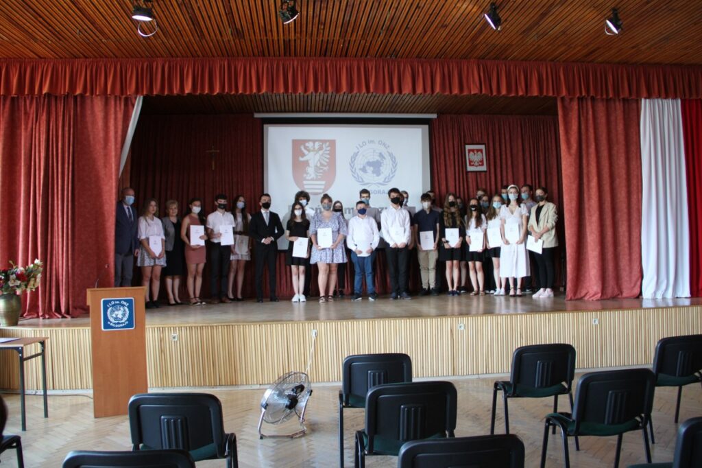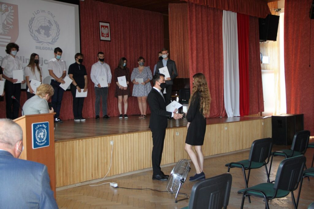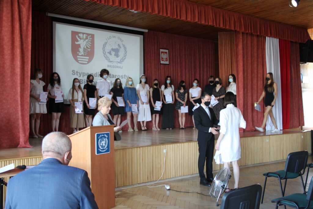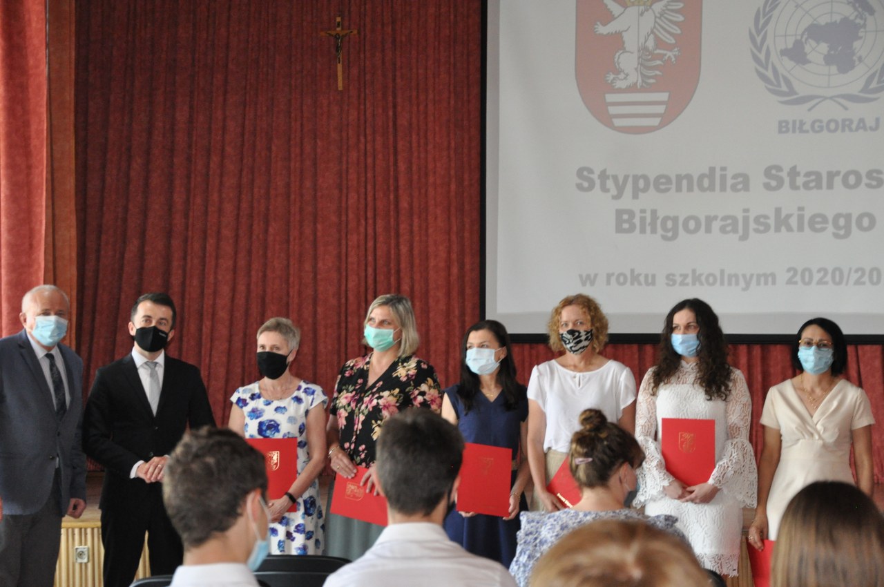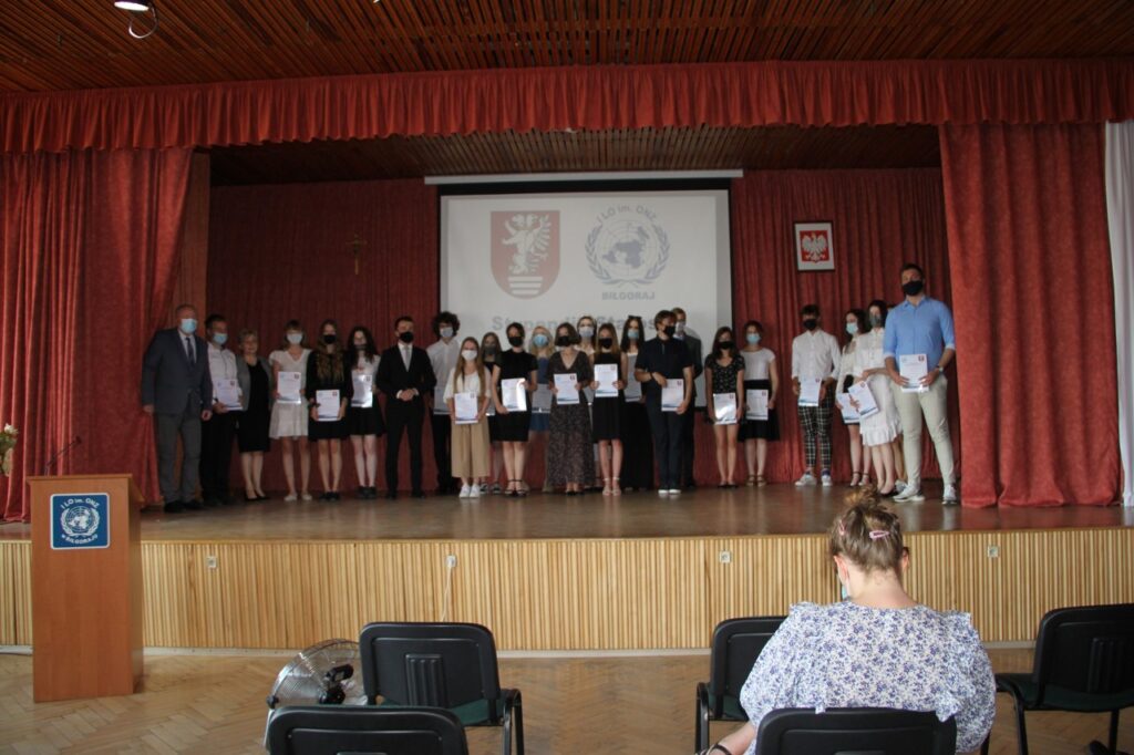 21 czerwca odbył się w auli naszej szkoły Dzień Olimpijczyka. Wzięli w nim udział: Starosta biłgorajski pan Andrzej Szarlip, kierownik Wydziału Oświaty, Kultury, Sportu i Turystyki Starostwa Powiatowego pan Jan Koman oraz uczniowie, którzy w roku szkolnym 2020/2021 osiągnęli sukcesy  w olimpiadach i konkursach przedmiotowych z opiekunami. Pan Starosta wręczył wyróżnionym licealistom listy gratulacyjne i karty  podarunkowe. Podziękował także nauczycielom za zaangażowanie i pracę włożoną w przygotowanie uczniów do olimpiad i konkursów oraz pomoc w rozwijaniu pasji i zainteresowań młodzieży. Podczas uroczystości wręczone zostały także stypendia Starosty Biłgorajskiego za bardzo dobre wyniki w nauce w I okresie roku szkolnego 2020/2021.