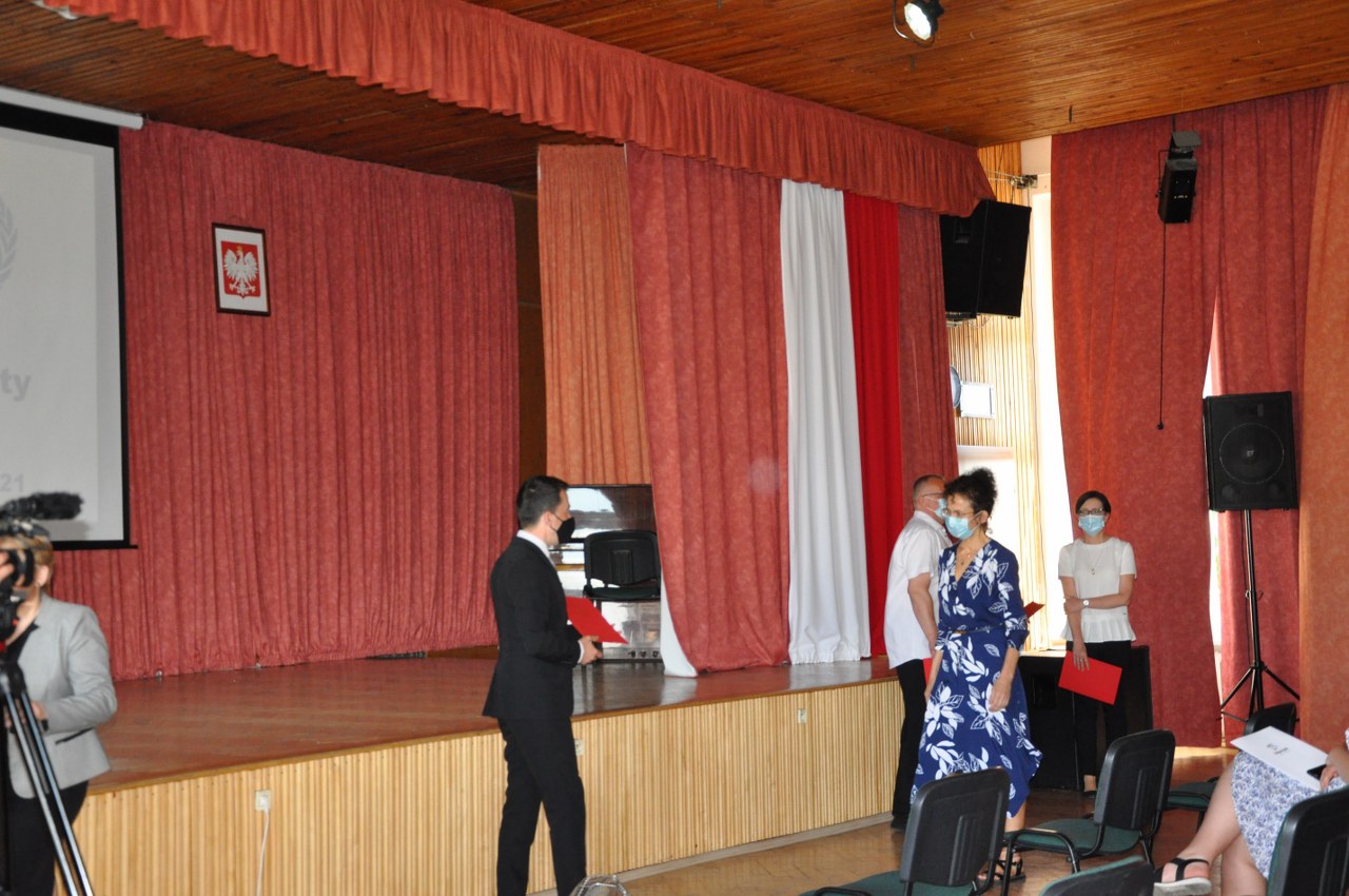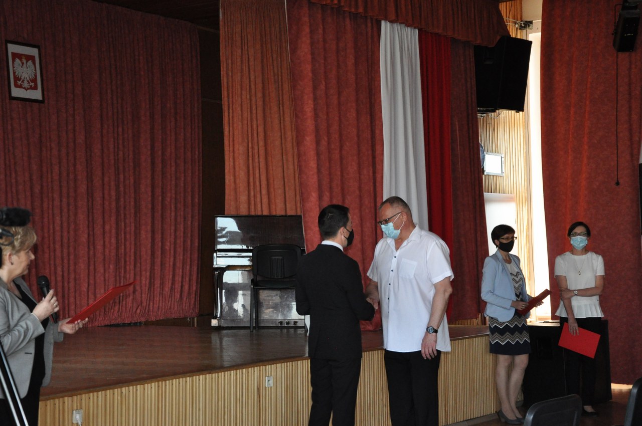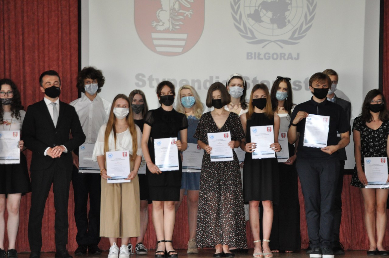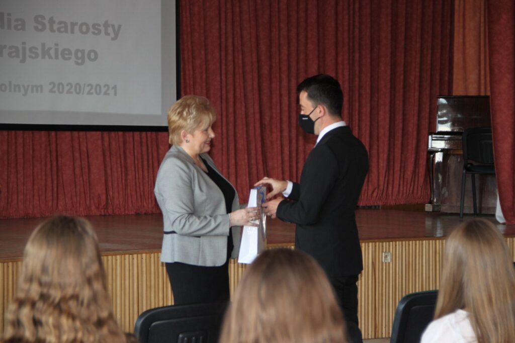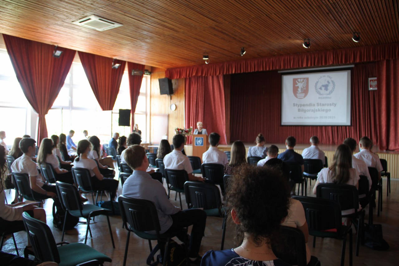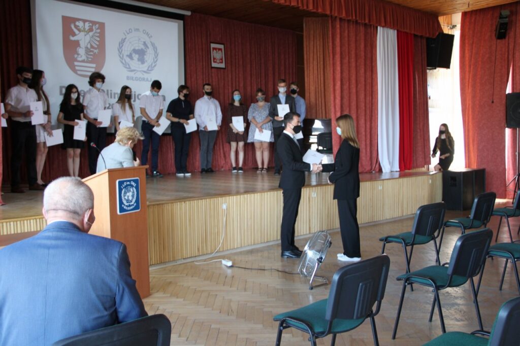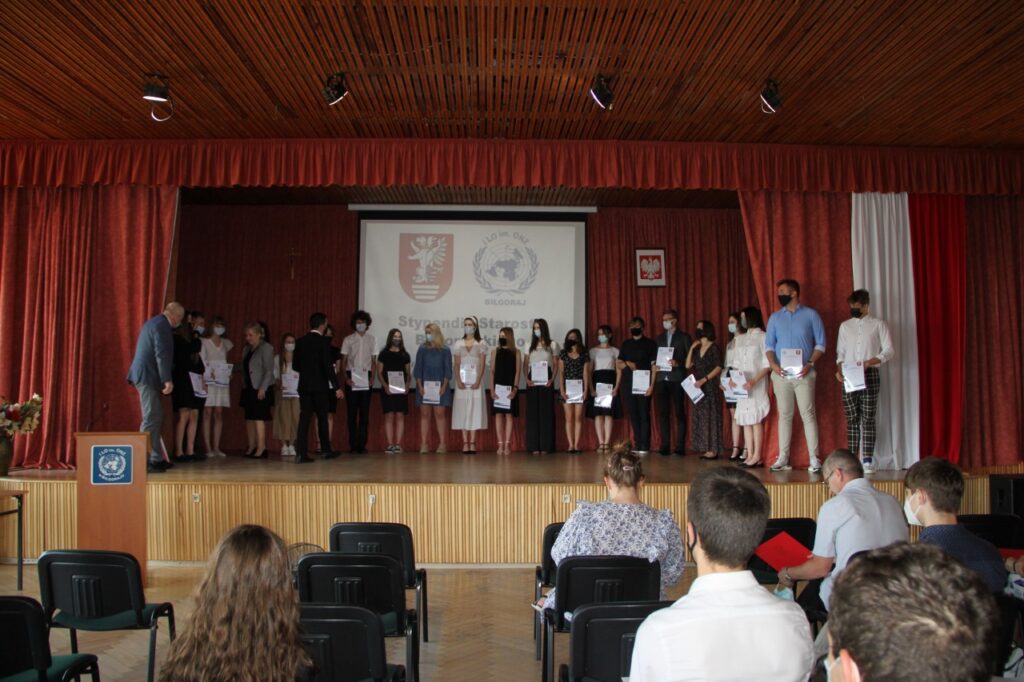 21 czerwca odbył się w auli naszej szkoły Dzień Olimpijczyka. Wzięli w nim udział: Starosta biłgorajski pan Andrzej Szarlip, kierownik Wydziału Oświaty, Kultury, Sportu i Turystyki Starostwa Powiatowego pan Jan Koman oraz uczniowie, którzy w roku szkolnym 2020/2021 osiągnęli sukcesy  w olimpiadach i konkursach przedmiotowych z opiekunami. Pan Starosta wręczył wyróżnionym licealistom listy gratulacyjne i karty  podarunkowe. Podziękował także nauczycielom za zaangażowanie i pracę włożoną w przygotowanie uczniów do olimpiad i konkursów oraz pomoc w rozwijaniu pasji i zainteresowań młodzieży. Podczas uroczystości wręczone zostały także stypendia Starosty Biłgorajskiego za bardzo dobre wyniki w nauce w I okresie roku szkolnego 2020/2021.