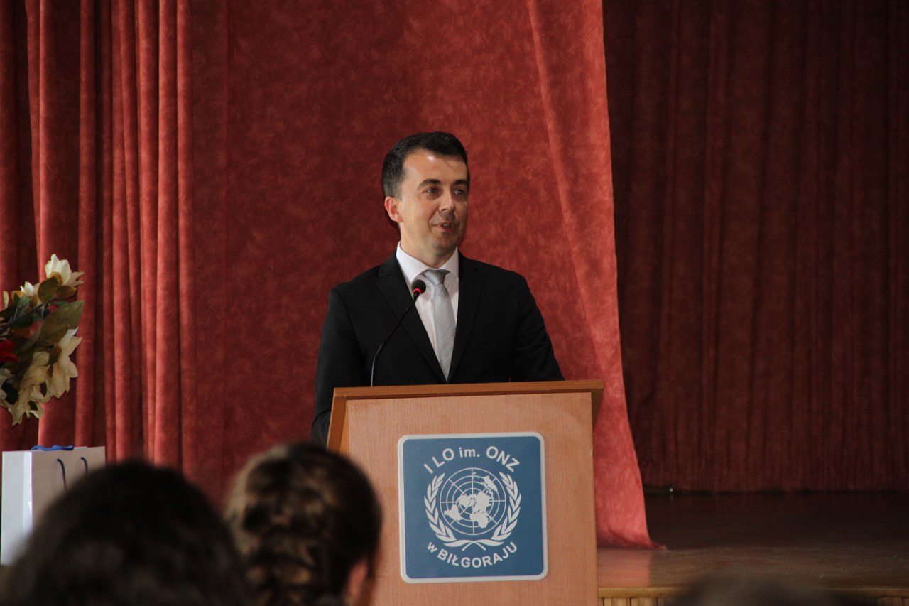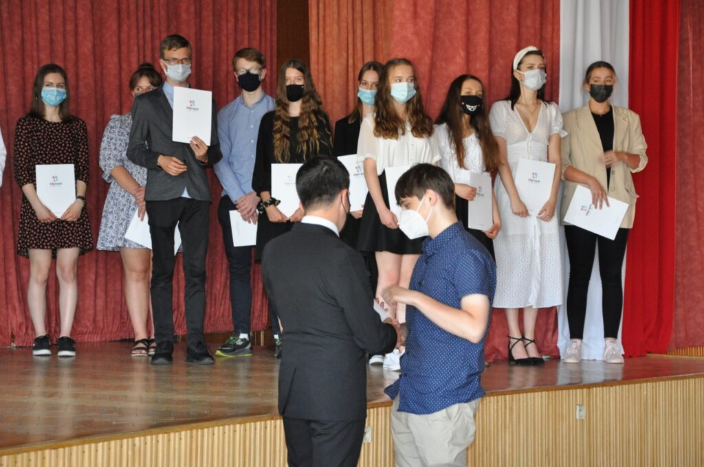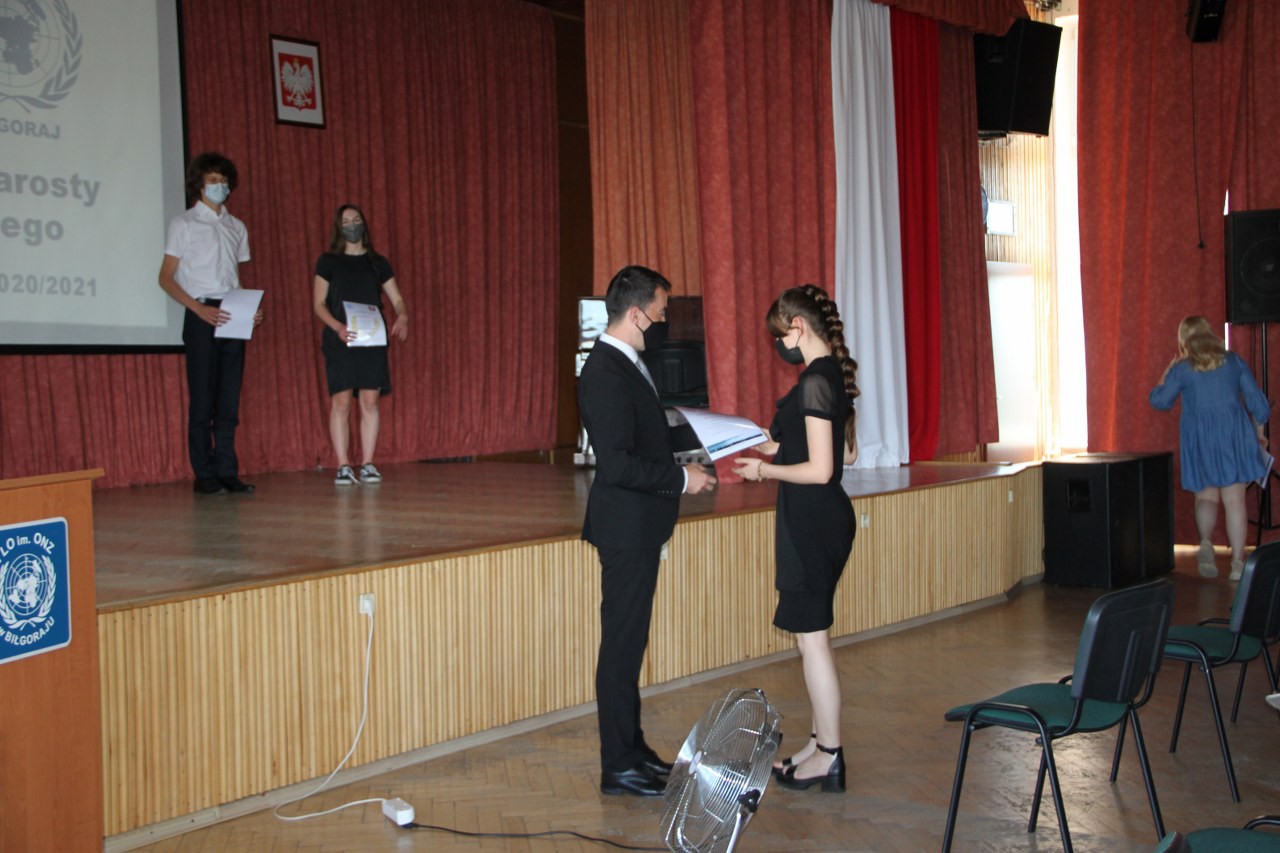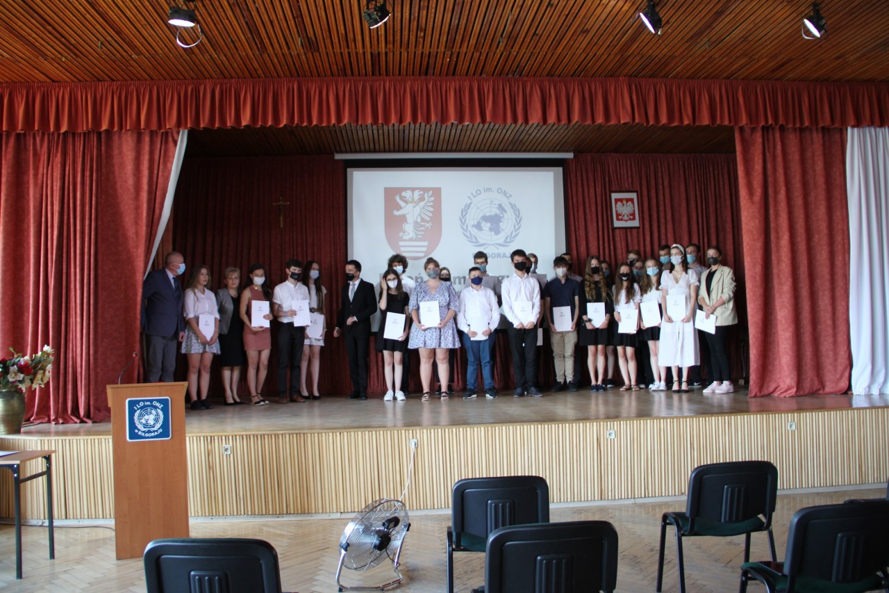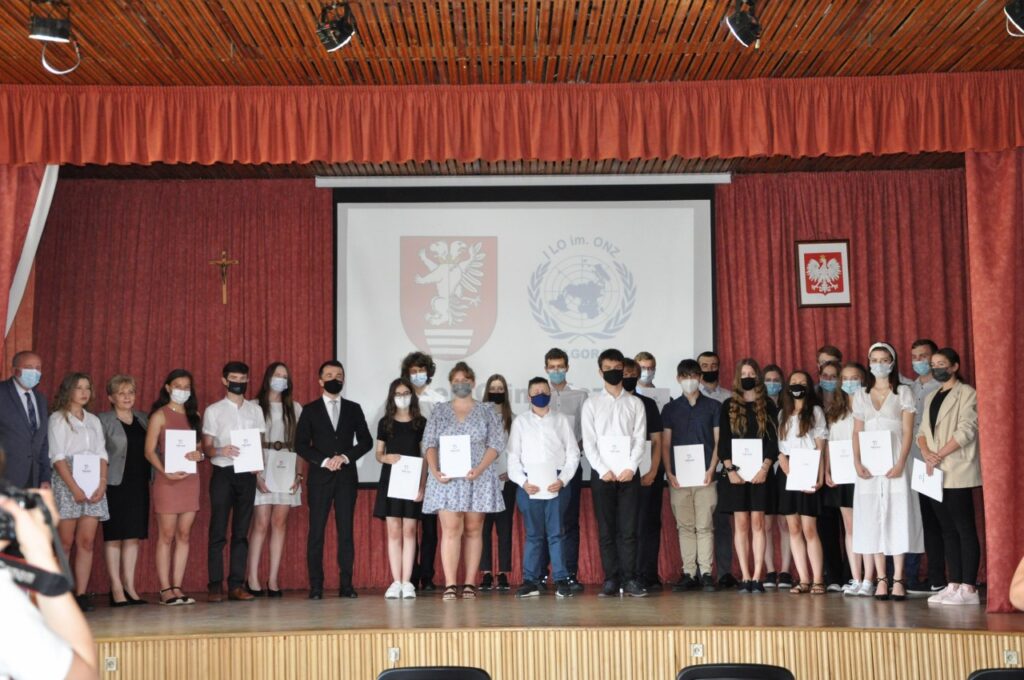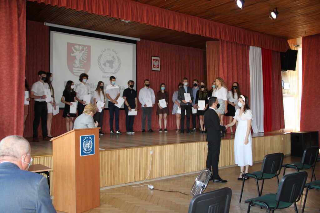 21 czerwca odbył się w auli naszej szkoły Dzień Olimpijczyka. Wzięli w nim udział: Starosta biłgorajski pan Andrzej Szarlip, kierownik Wydziału Oświaty, Kultury, Sportu i Turystyki Starostwa Powiatowego pan Jan Koman oraz uczniowie, którzy w roku szkolnym 2020/2021 osiągnęli sukcesy  w olimpiadach i konkursach przedmiotowych z opiekunami. Pan Starosta wręczył wyróżnionym licealistom listy gratulacyjne i karty  podarunkowe. Podziękował także nauczycielom za zaangażowanie i pracę włożoną w przygotowanie uczniów do olimpiad i konkursów oraz pomoc w rozwijaniu pasji i zainteresowań młodzieży. Podczas uroczystości wręczone zostały także stypendia Starosty Biłgorajskiego za bardzo dobre wyniki w nauce w I okresie roku szkolnego 2020/2021.