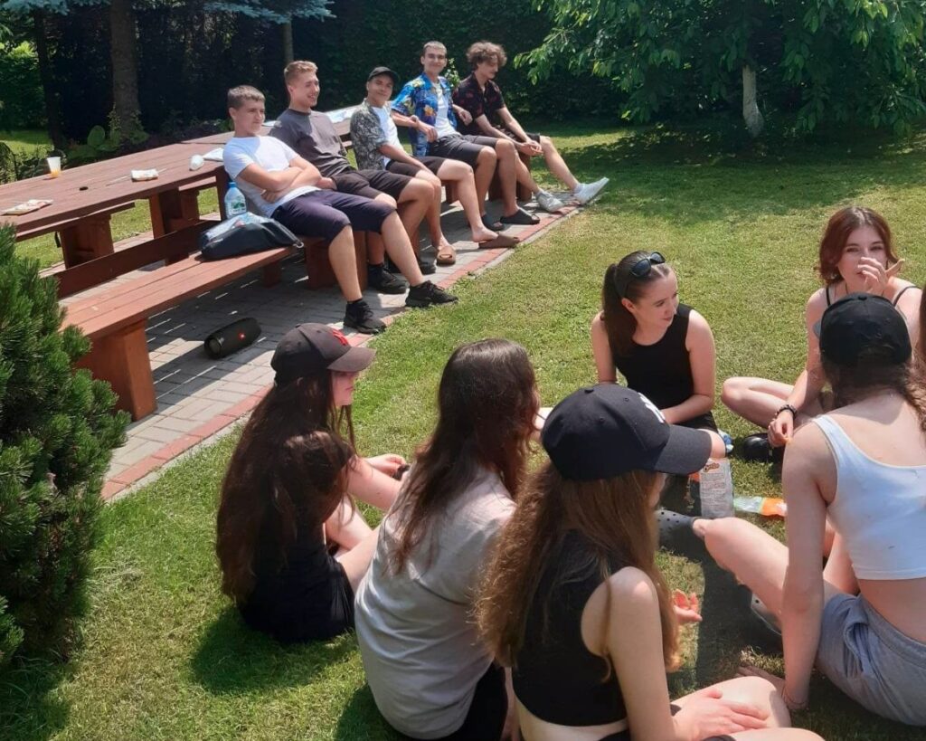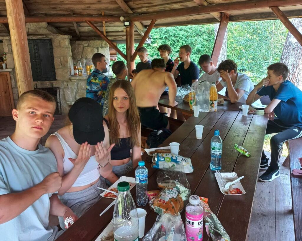 Następnie młodzież została zaproszona przez pana Jana Czochrę na ognisko i odpoczynek nad stawem w ogrodzie.