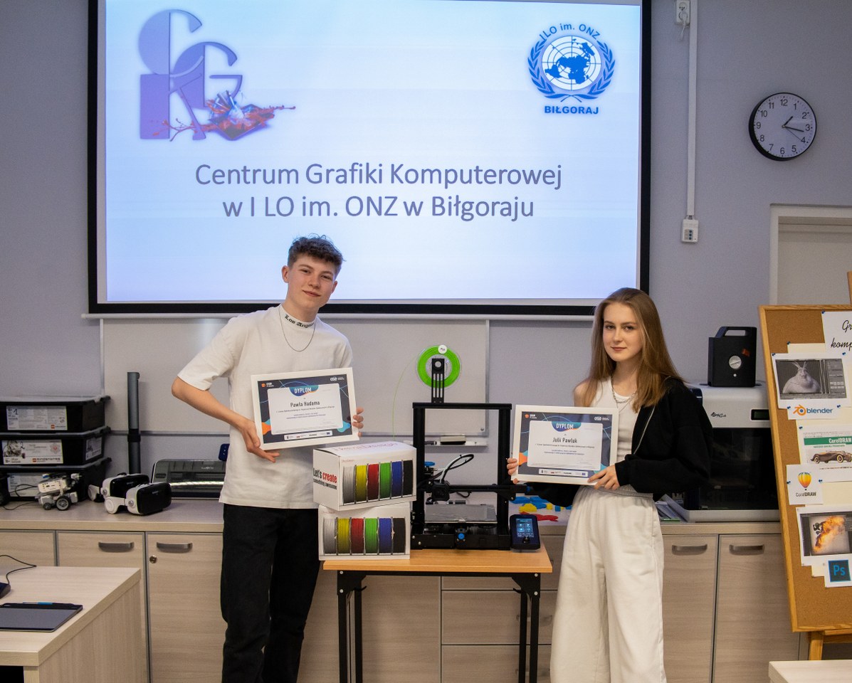 Julia Pawluk i Paweł Hadam z klasy II A zostali laureatami Ogólnopolskiego Konkursu „Historie z sieci wzięte” organizowanego przez Ogólnopolską Sieć Edukacyjną IT. W nagrodę otrzymali dla szkoły drukarkę 3D oraz zestaw filamentów. Główną tematyką konkursu było stworzenie historii dotyczącej bezpieczeństwa cyfrowego w formie komiksu lub innej pracy graficznej, w której bohaterowie szkolnych lektur musieli zmierzyć się z cyberzagrożeniami.