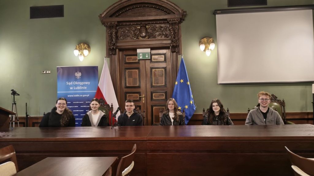 20 marca 2026 r. uczniowie klasy II A i II B wraz z opiekunami wybrali się na wycieczkę do Sądu Okręgowego w Lublinie. W ramach Dnia Edukacji Prawnej mieli możliwość obejrzenia symulacji rozprawy karnej „Sylwester z rodziną Adamsów” przygotowanej przez studentów prawa KUL. Inscenizacja w humorystyczny sposób wprowadziła uczestników w tematykę procedury karnej, a uczniowie mieli możliwość wcielić się w ławników i publiczność oraz zadecydować o wyniku rozprawy. Następnie z panem sędzią Jarosławem Kowalskim licealiści zwiedzili budynek sądu i zapoznali się z jego historią.Wycieczka miała charakter edukacyjny. Uczniowie poznali zagadnienia z zakresu praw i wolności obywatelskich w ujęciu konstytucyjnym, a także zobaczyli, jak funkcjonuje instytucja wymiaru sprawiedliwości.
