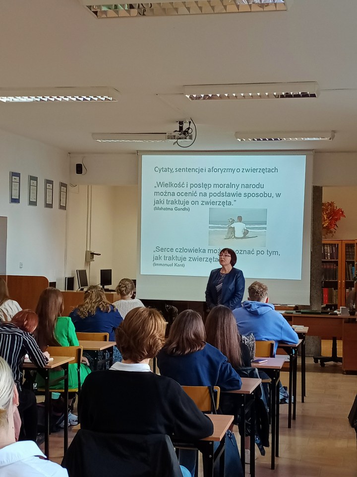Na lekcjach religii o życiu i działalności św. Franciszka opowiadały siostry z Zakonu Franciszkanek Misjonarek Maryi. Siostry z Łabuń, wykorzystując prezentację multimedialną, rozmawiały z młodzieżą o swoim patronie i działalności misyjnej na rzecz potrzebujących na całym świecie. Przestrzegały młodych ludzi przed zagrożeniami współczesnej cywilizacji. Uczniowie z klasy psychologicznej wzięli udział w warsztatach prowadzonych przez psychologa z Poradni Psychologiczno-Pedagogicznej w Biłgoraju panią Monikę Szczerbę dotyczących wpływu zwierząt na psychikę człowieka oraz projektowali koszulki promujące opiekę nad zwierzętami. Natomiast w czytelni biblioteki szkolnej młodzież z klasy III Cg uczestniczyła w zajęciach biblioterapeutycznych pt. „Nasi czworonożni przyjaciele” prowadzonych przez panią Jadwigę Oleszek. Nadal w szkole prowadzona jest zbiórka środków pieniężnych, karmy oraz darów rzeczowych m. in. używanych koców, kołder i legowisk przeznaczonych na wsparcie działalności Biłgorajskiego Stowarzyszenia Opieki nad Zwierzętami „Podaj Łapę” oraz Przytuliska w Józefowie.