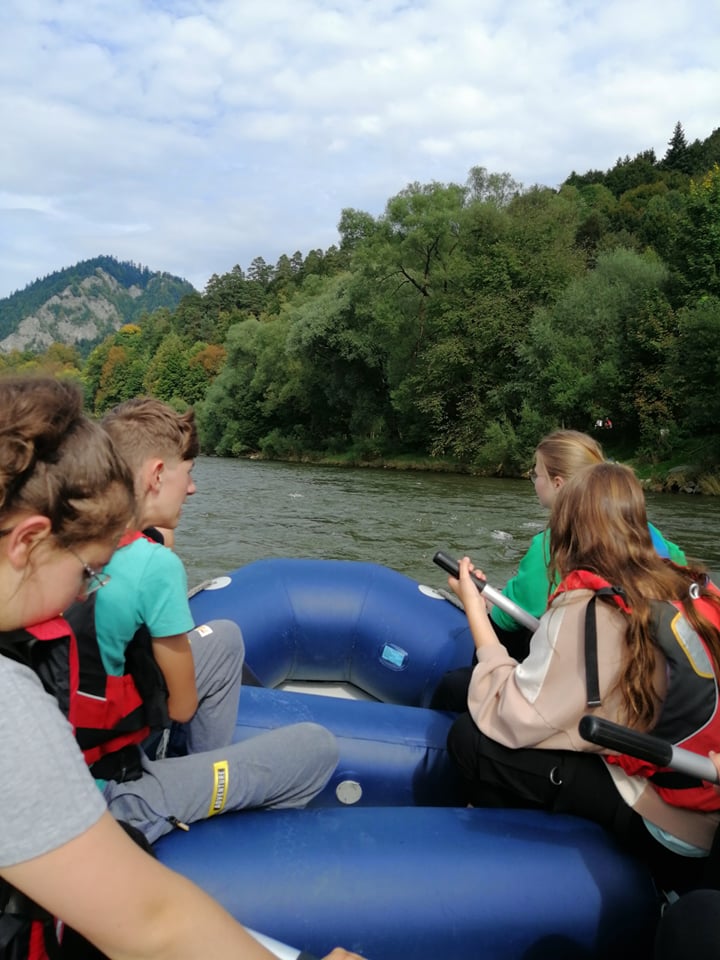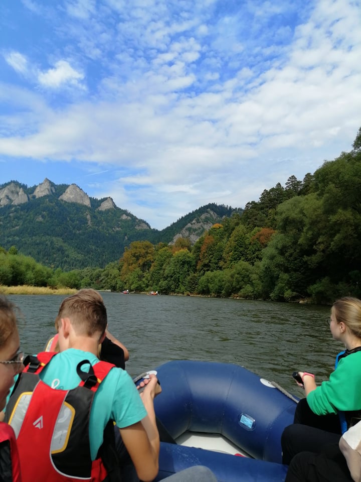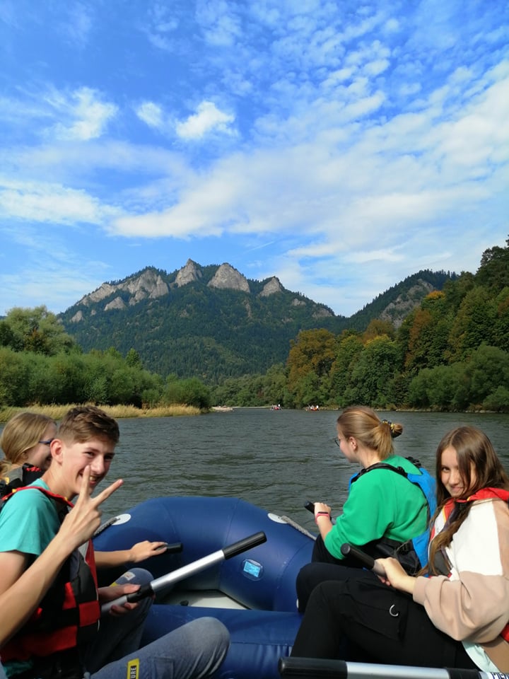 W dniach 16-17 września 2021 klasa I G uczestniczyła w wycieczce integracyjnej w Pieniny. Niezapomnianych wrażeń dostarczył młodzieży spływ po rzece Dunajec, podczas którego mieli okazję podziwiać wysokie, błyszczące w słońcu turnie, wyłaniające się z koron kolorowych drzew. Kolejną atrakcją był rejs po Jeziorze Czorsztyńskim znajdującym się pomiędzy magicznymi Pieninami i Gorcami, we wschodniej części Kotliny Orawsko-Nowotarskiej. Choć pogoda nie zawsze pozwalała zachwycać się niepowtarzalnym krajobrazem magicznych Pienin, to nie zdołała popsuć świetnych humorów licealistom.