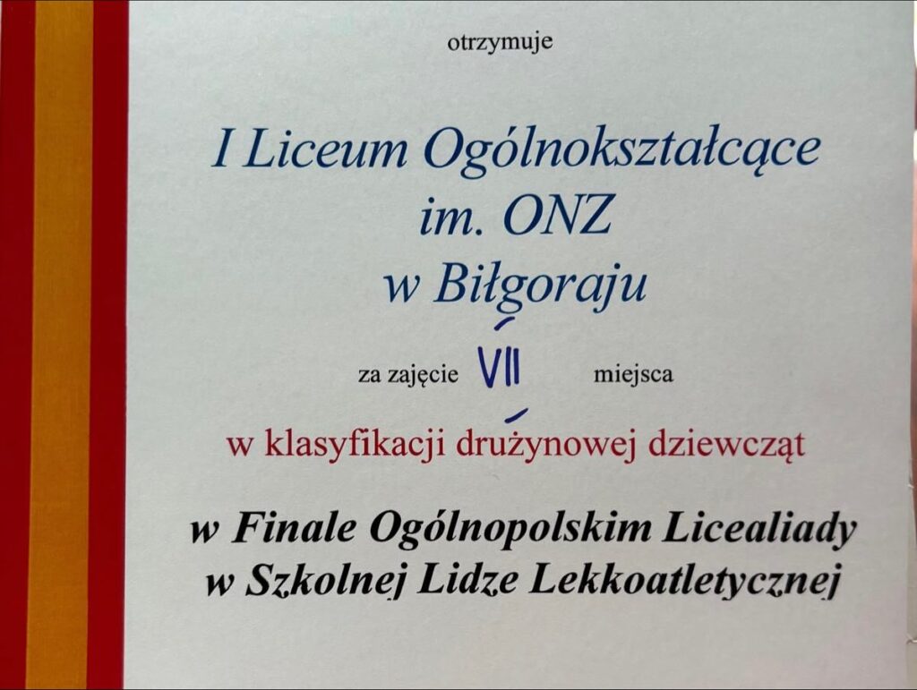 Z kolei nasza drużyna dziewcząt zajmując VII miejsce w klasyfikacji ogólnopolskiej osiągnęła najwyższy wynik szkoły w tej dyscyplinie sportowej.W imprezie uczestniczyły najlepsze drużyny ze szkół ponadpodstawowych z całego kraju.