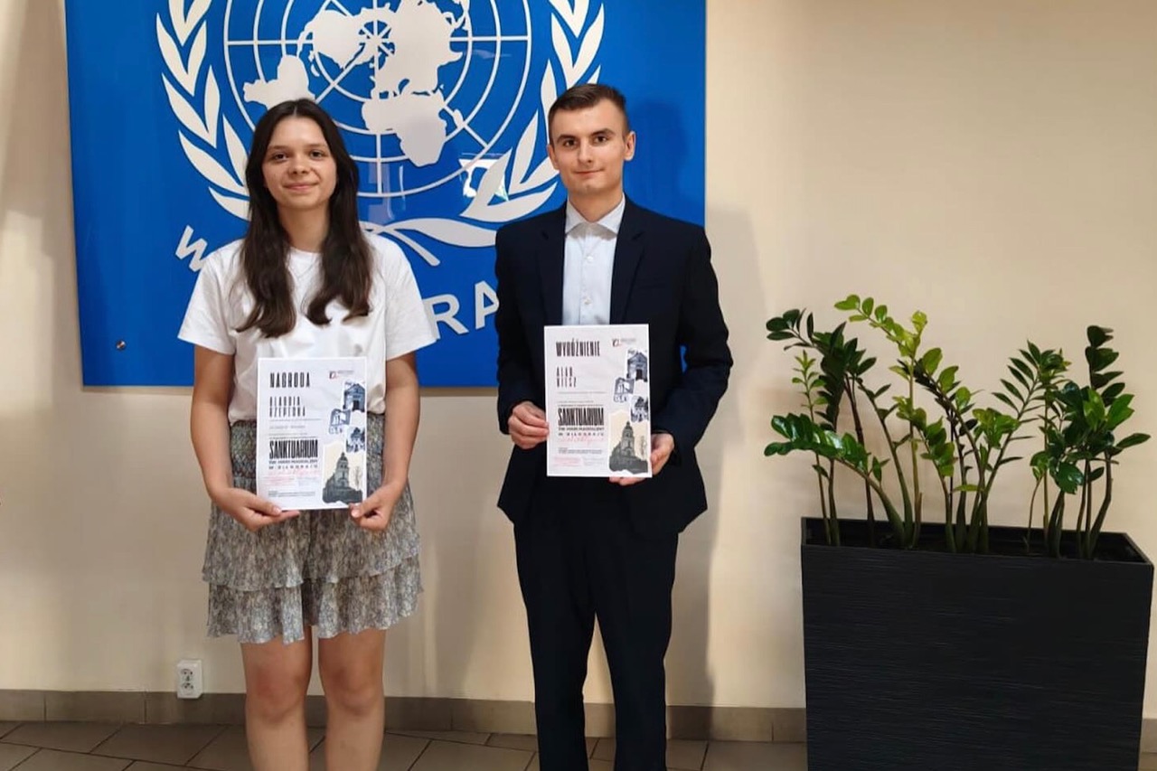 admin 9 miesięcy temu Konkursy , Organizacyjne , OsiągnięciaKlaudia Rzepecka z kl. I B zajęła I miejsce, a Alan Kiesz z kl. III A został wyróżniony w kategorii szkół średnich w konkursie o zasięgu powiatowym „Sanktuarium św. Marii Magdaleny w obiektywie”.Konkurs został zorganizowany przez Miejską i Powiatową Bibliotekę Publiczną im. prof. Jerzego Markiewicza w Biłgoraju w ramach Gminnego Programu Opieki nad Zabytkami miasta Biłgoraja.