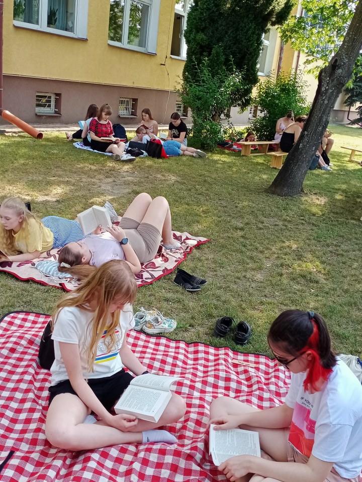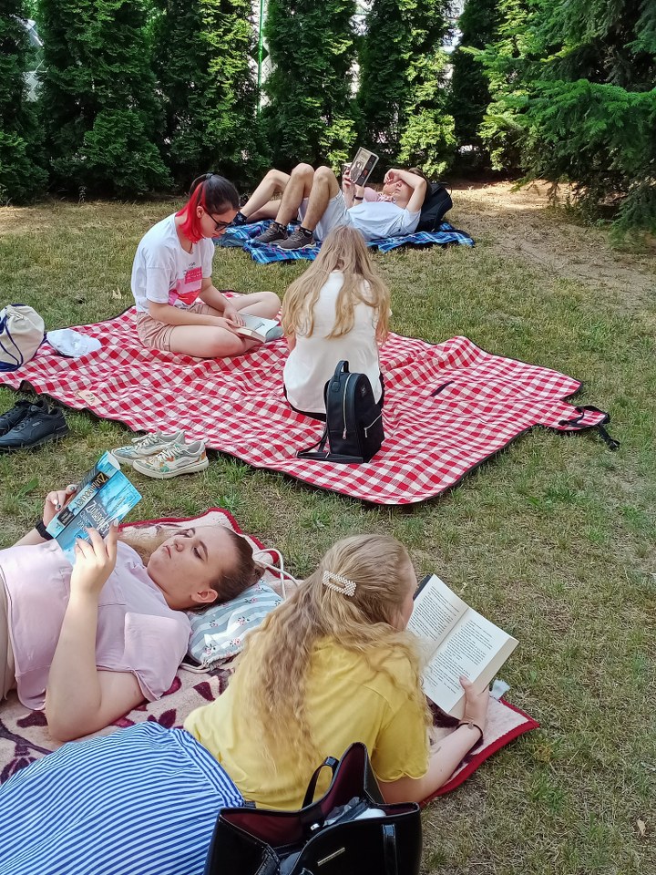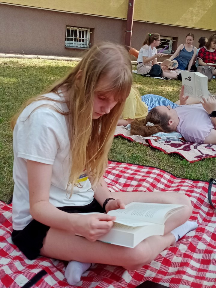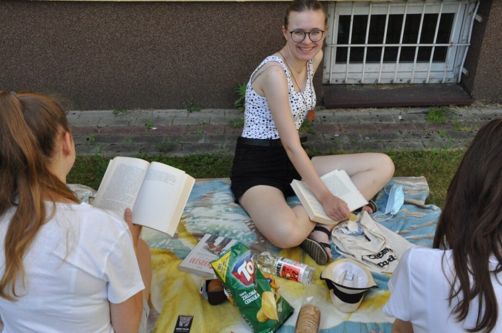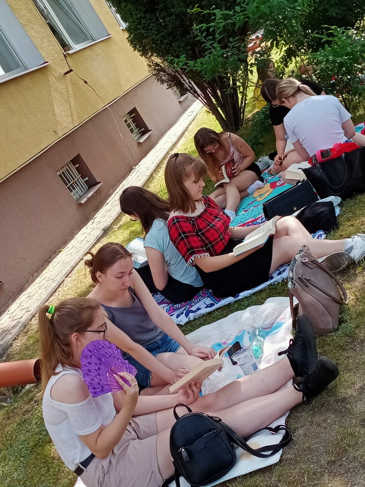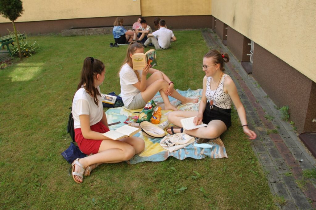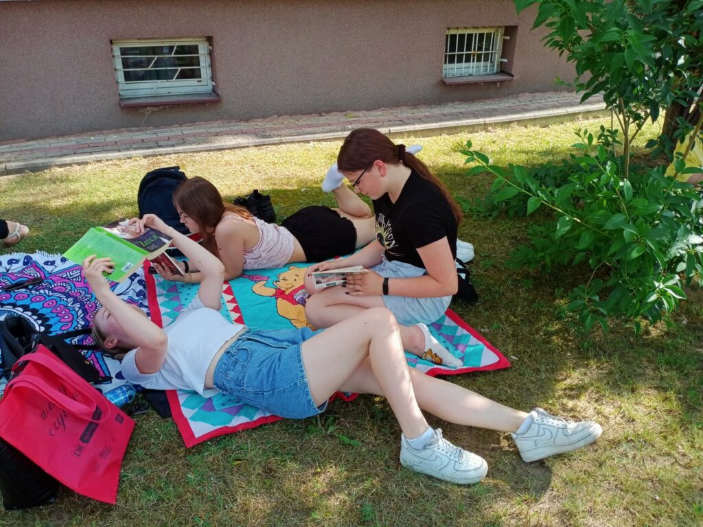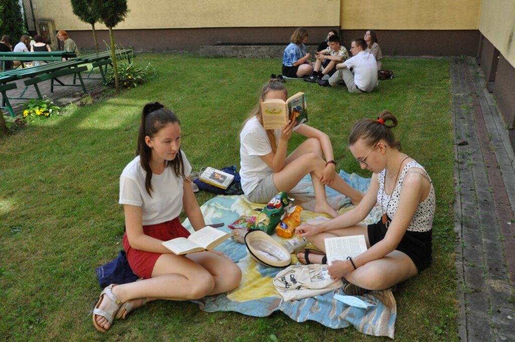 admin 5 lat temu Bez kategorii , Organizacyjne , UroczystościUczniowie naszego liceum 24 czerwca 2021 roku wzięli udział w akcji „Piknik z książką”, która miała na celu promowanie czytelnictwa i zachęcanie młodych ludzi do czytania. Młodzież, korzystając z pięknej pogody uczestniczyła w spotkaniu przed szkołą. Na kocach, z przekąskami licealiści czytali przyniesione przez siebie książki. Mieli możliwość zaprezentowania i zachęcenia rówieśników do sięgnięcia po swoje ulubione tytuły.