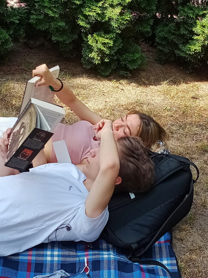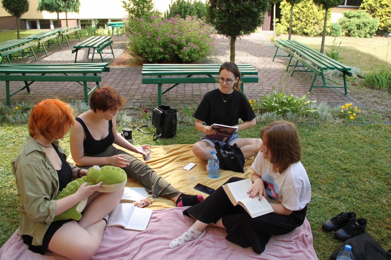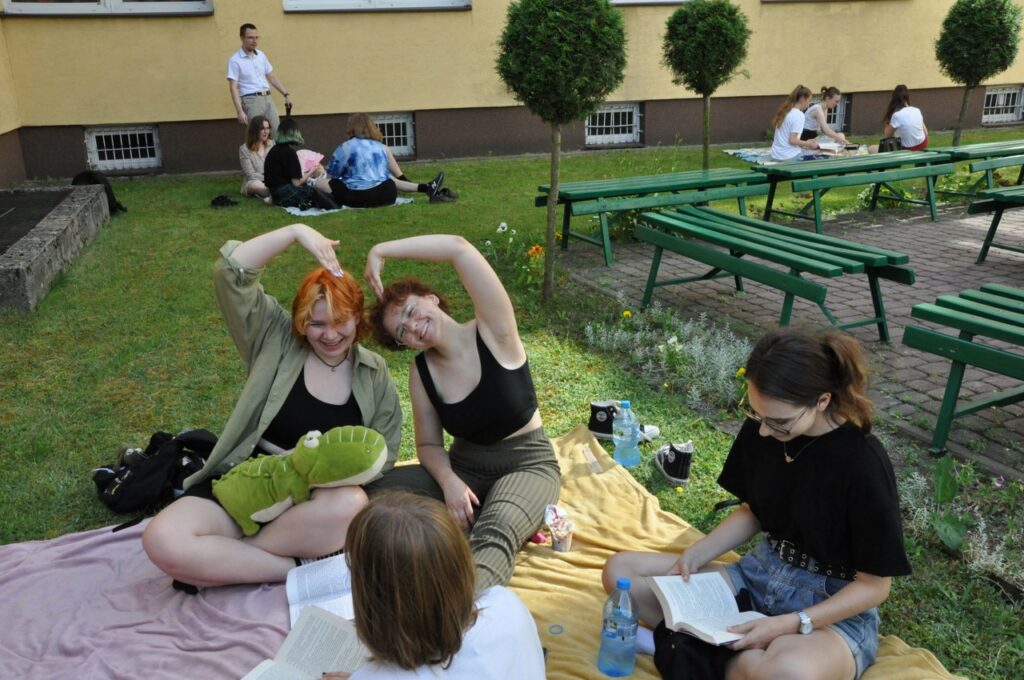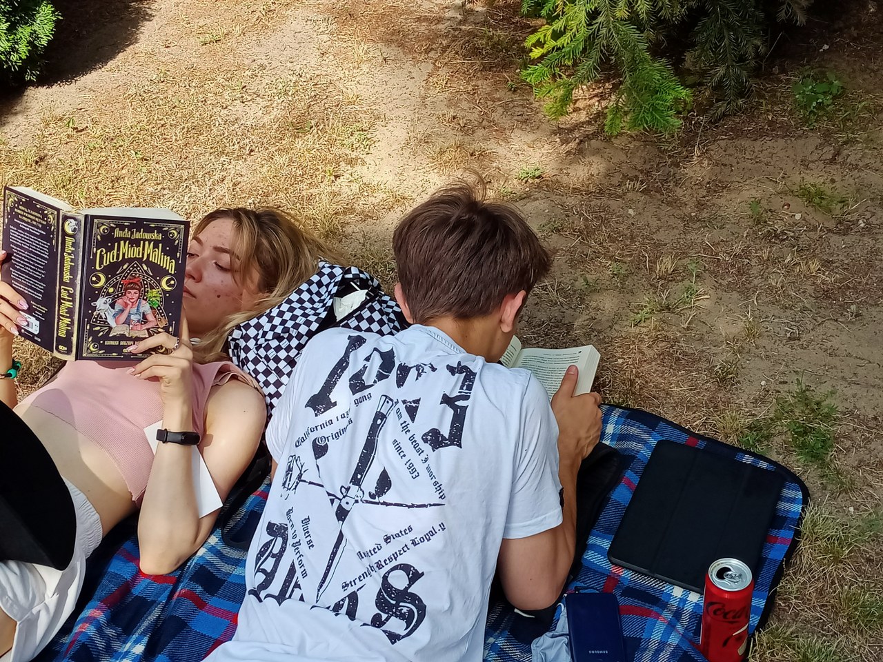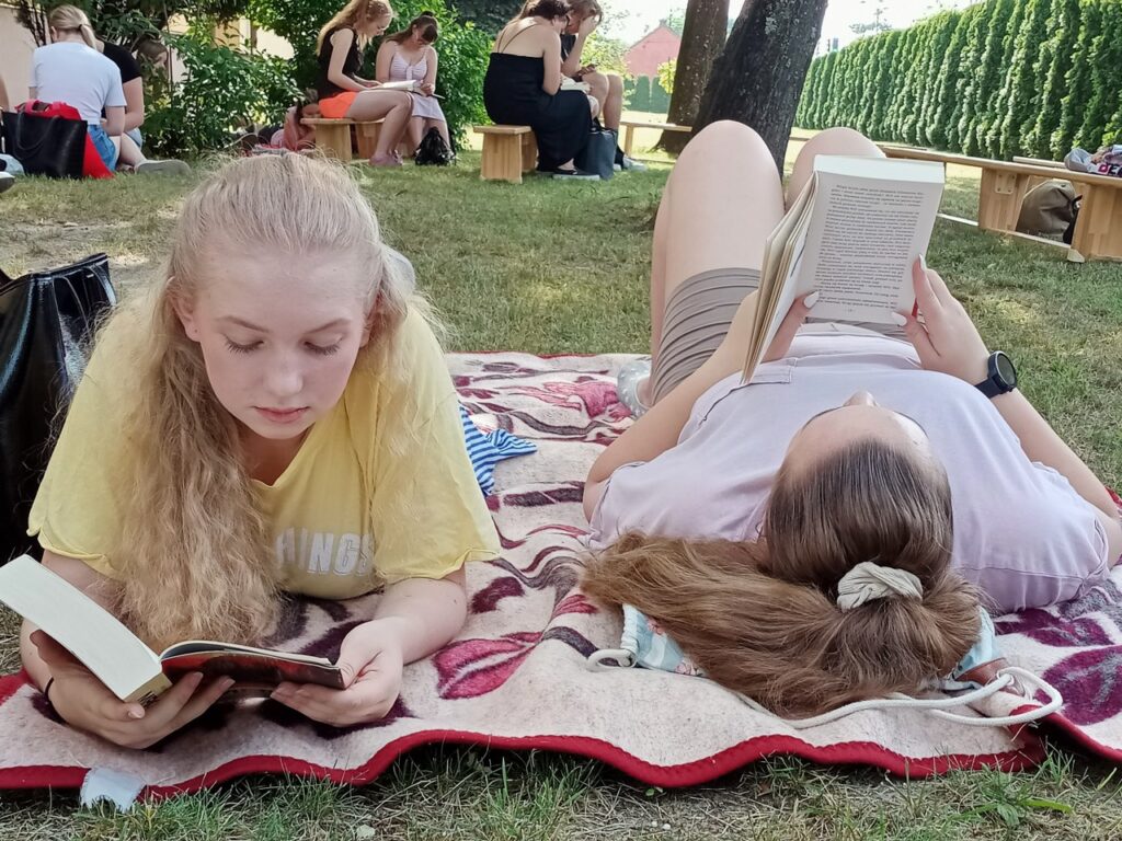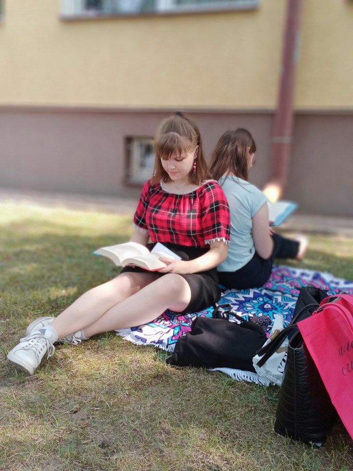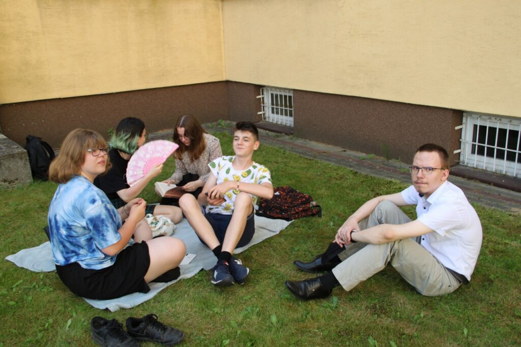 admin 5 lat temu Bez kategorii , Organizacyjne , UroczystościUczniowie naszego liceum 24 czerwca 2021 roku wzięli udział w akcji „Piknik z książką”, która miała na celu promowanie czytelnictwa i zachęcanie młodych ludzi do czytania. Młodzież, korzystając z pięknej pogody uczestniczyła w spotkaniu przed szkołą. Na kocach, z przekąskami licealiści czytali przyniesione przez siebie książki. Mieli możliwość zaprezentowania i zachęcenia rówieśników do sięgnięcia po swoje ulubione tytuły.