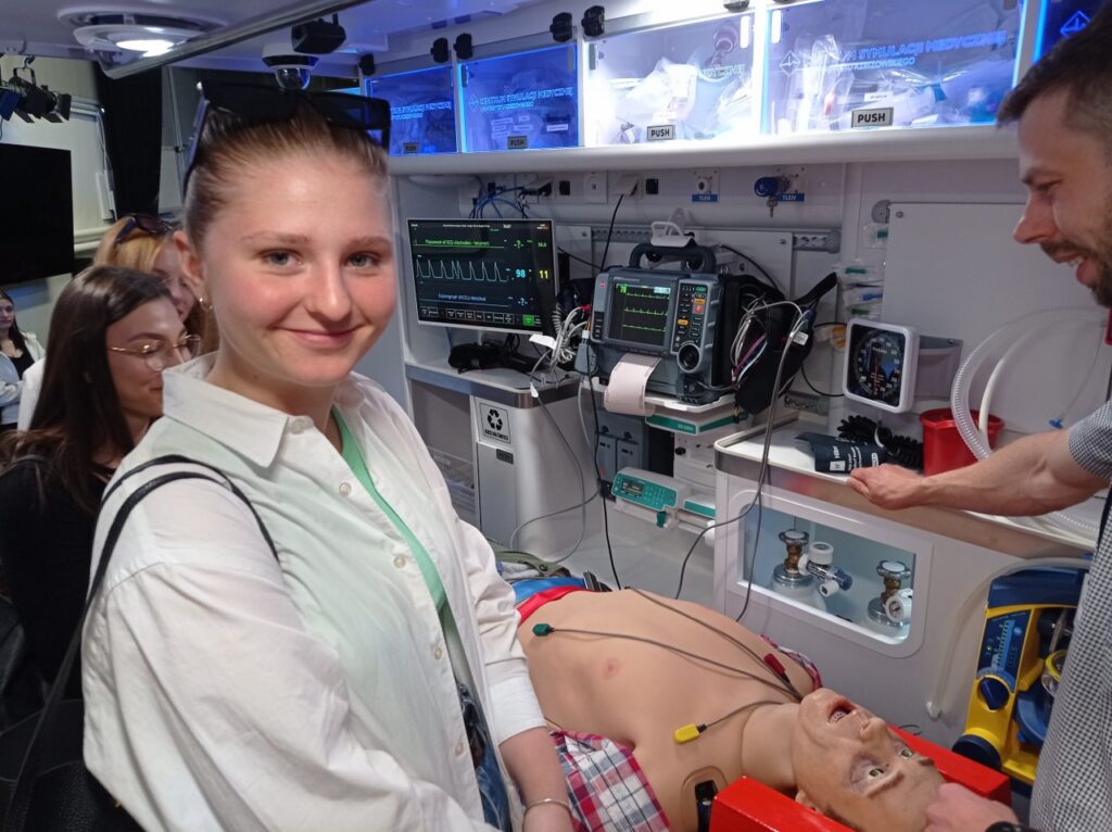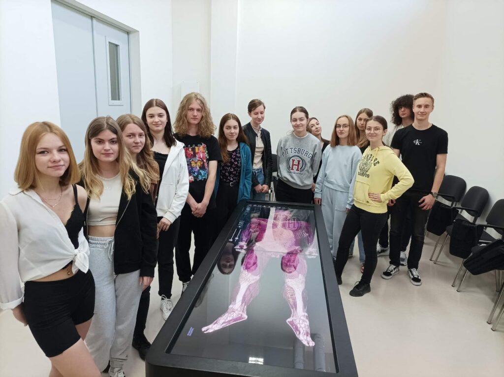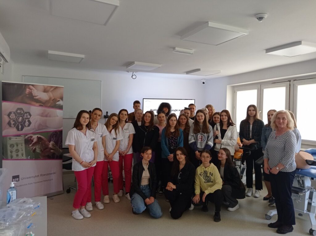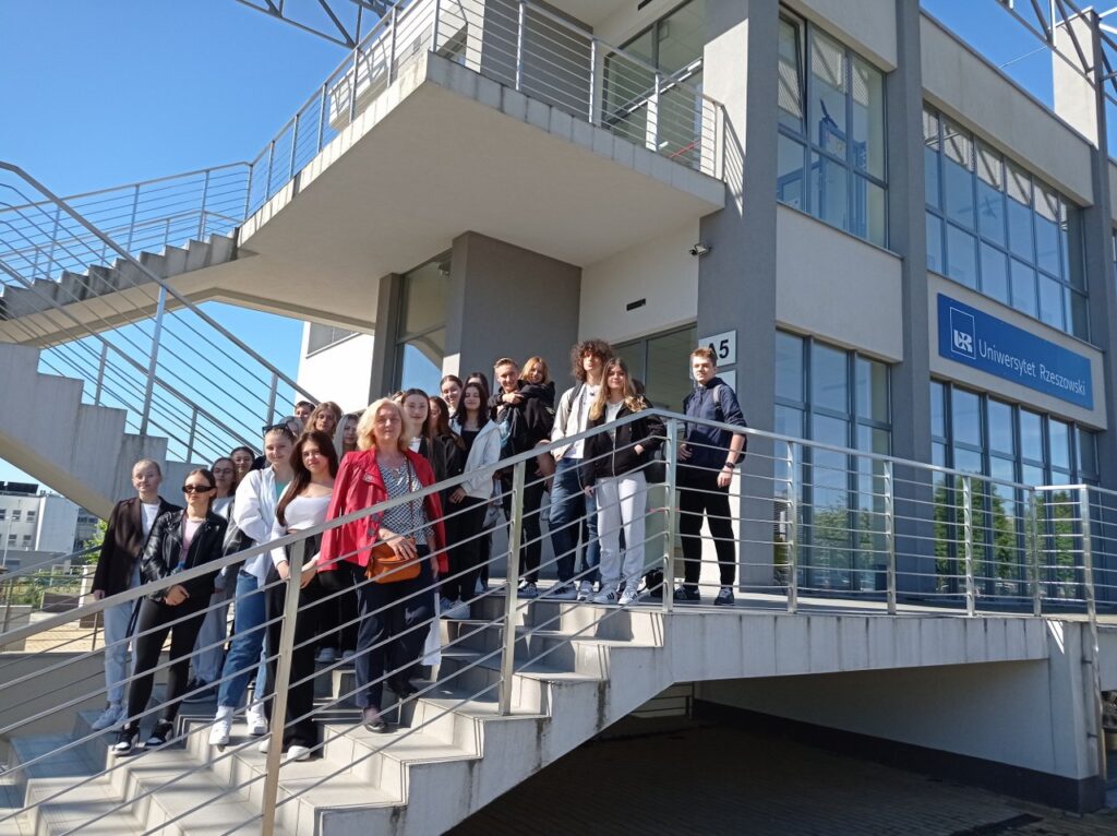 admin 4 lata temu Bez kategorii , Organizacyjne , Wycieczki19 maja 2022 uczniowie klasy III Gp uczestniczyli w warsztatach medycznych w Kolegium Nauk Medycznych na Uniwersytecie Rzeszowskim. Licealiści zobaczyli sale do sekcji zwłok, wysłuchali wykładu o histologii oraz poznali nowe metody nauki studentów medycyny. Uczniowie poznali także wyposażenie karetek pogotowia ratunkowego oraz sal operacyjnych. Uczestniczyli ponadto w wykładach dotyczących raka szyjki macicy i jego profilaktyki, oglądali również prawdziwe preparaty ludzkiego ciała. Wycieczka do Rzeszowa pozwoliła uczniom poznać życie studentów medycyny.