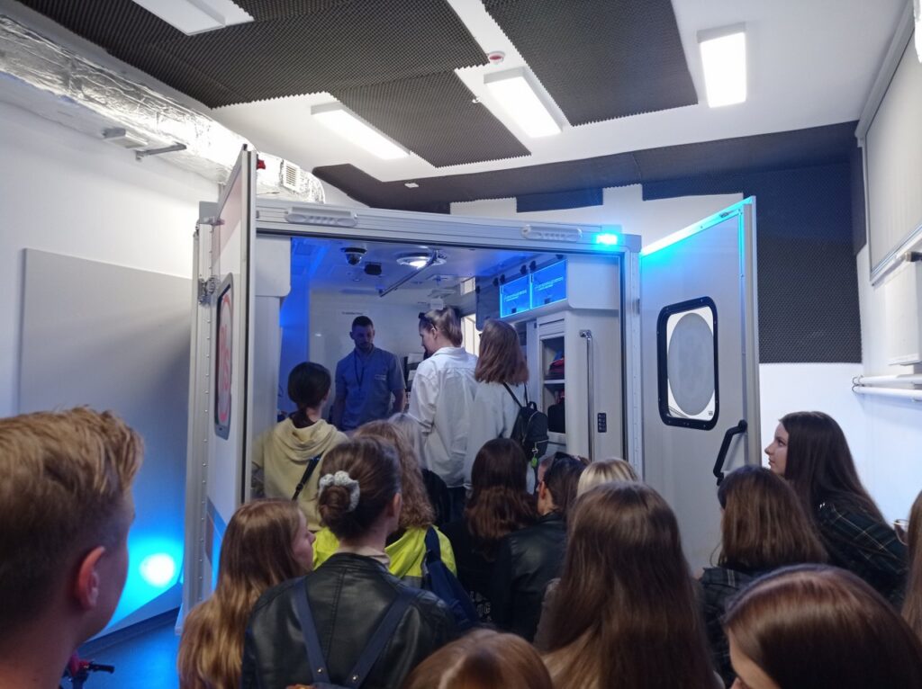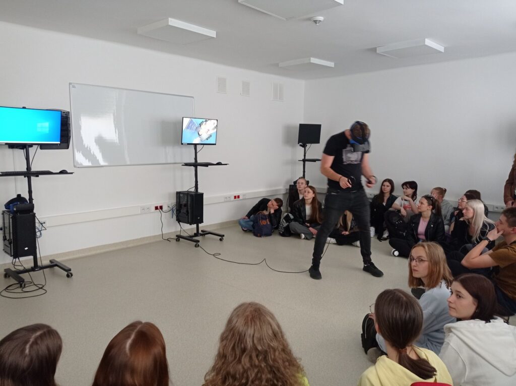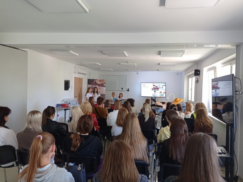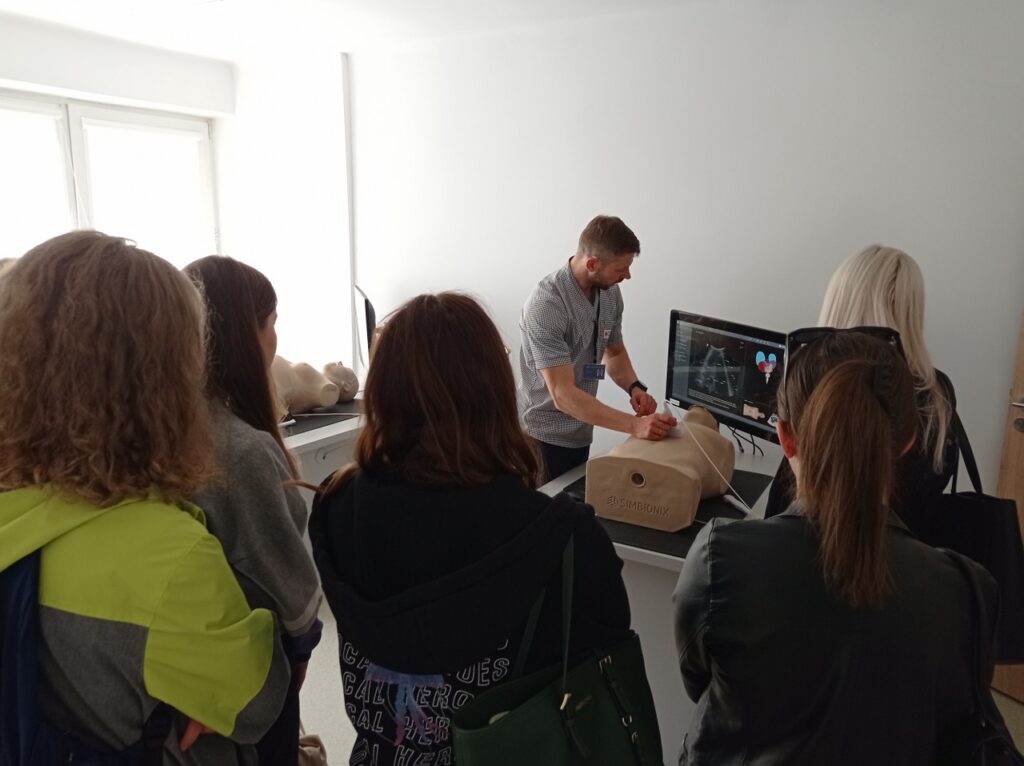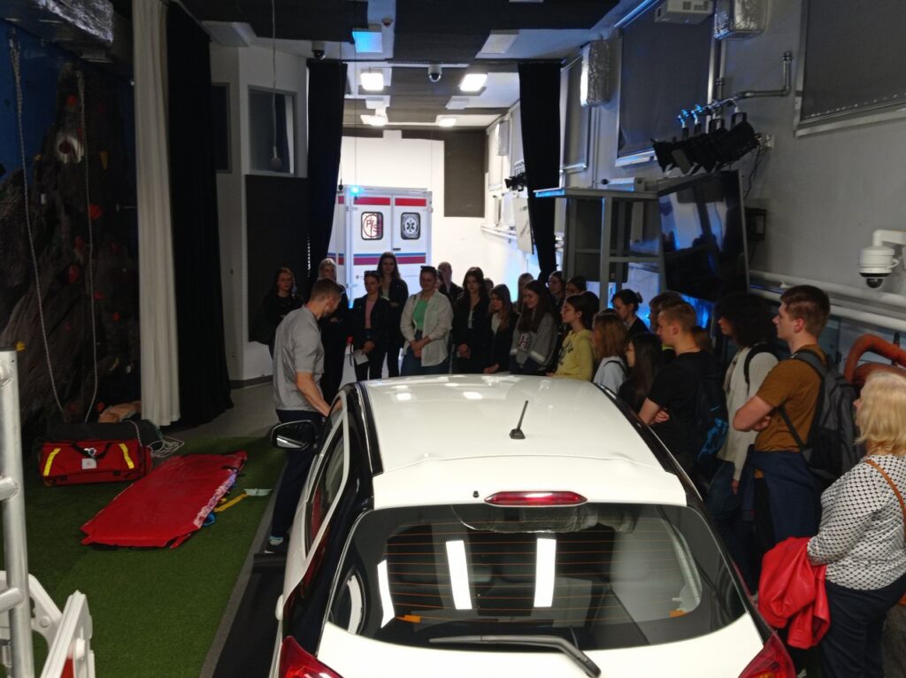 admin 4 lata temu Bez kategorii , Organizacyjne , Wycieczki19 maja 2022 uczniowie klasy III Gp uczestniczyli w warsztatach medycznych w Kolegium Nauk Medycznych na Uniwersytecie Rzeszowskim. Licealiści zobaczyli sale do sekcji zwłok, wysłuchali wykładu o histologii oraz poznali nowe metody nauki studentów medycyny. Uczniowie poznali także wyposażenie karetek pogotowia ratunkowego oraz sal operacyjnych. Uczestniczyli ponadto w wykładach dotyczących raka szyjki macicy i jego profilaktyki, oglądali również prawdziwe preparaty ludzkiego ciała. Wycieczka do Rzeszowa pozwoliła uczniom poznać życie studentów medycyny.