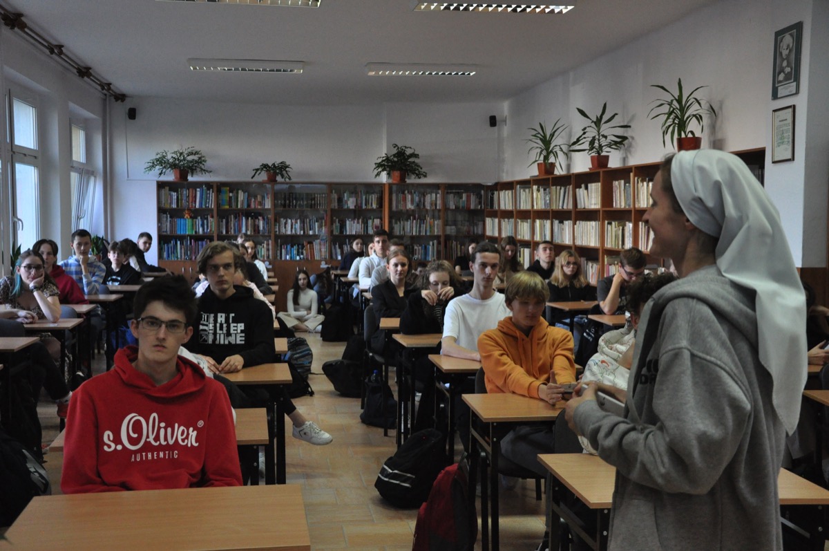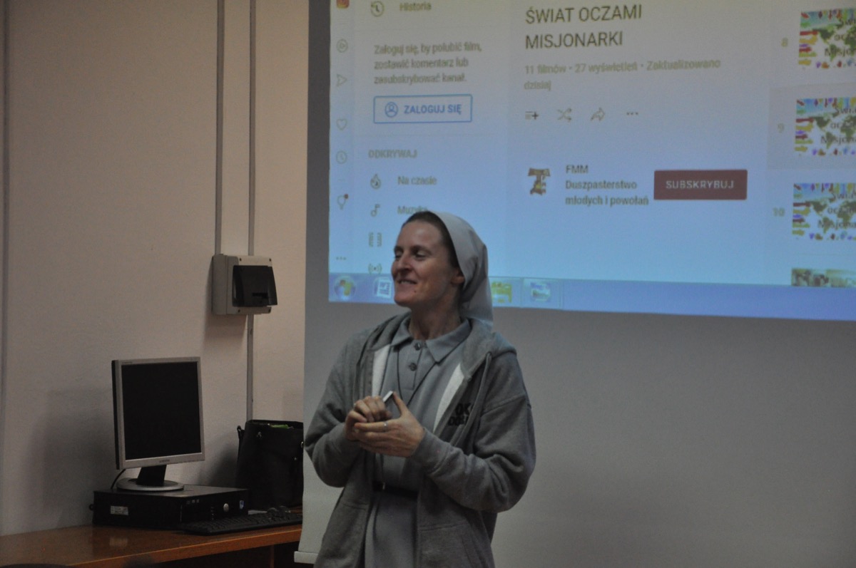 Postać św. Franciszka oraz działalność misyjną swojego zakonu przybliżyła siostra Sylwia, absolwentka naszego liceum. Z kolei siostra Zofia opowiedziała o pracy w Nigerze oraz Togo, gdzie pracuje w szpitalach jako pielęgniarka. W bardzo ciekawy sposób przybliżyła również zwyczaje oraz kulturę  plemion afrykańskich. Zwróciła uwagę na trudne warunki życia panujące w Afryce m.in. głód, deficyt pitnej wody czy brak dostępu do edukacji.