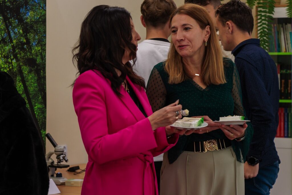 W trakcie uroczystości przecięto wstęgę i dokonano oficjalnego otwarcia ,,zielonego serca szkoły”. Wszyscy zgromadzeni z dużym zainteresowaniem oglądali pięknie wyremontowaną salę i pomoce naukowe zakupione w ramach projektu. Miłym akcentem był słodki poczęstunek.