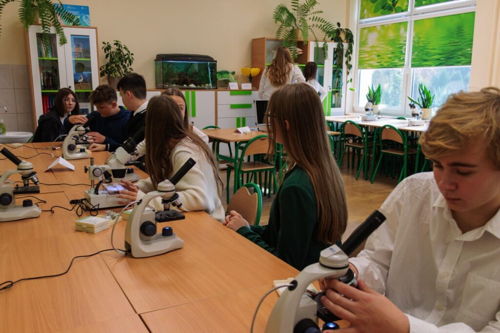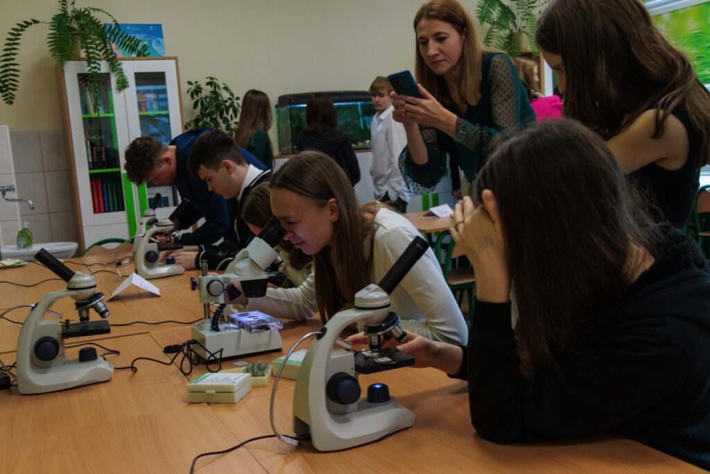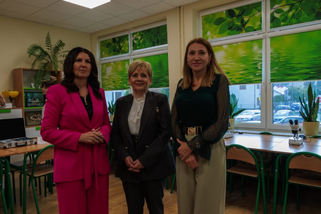 admin 2 lata temu Organizacyjne25.10.2023 roku w naszej szkole odbyło się uroczyste otwarcie ekopracowni, na którą dofinansowanie uzyskano z projektu ,,Ekopracownia – zielone serce szkoły” realizowanego przez Wojewódzki Fundusz Ochrony Środowiska w Lublinie. Warto podkreślić, że nasza szkoła dzięki aktywnej działalności proekologicznej oraz licznym sukcesom w olimpiadach i konkursach biologicznych jako jedyna placówka ponadpodstawowa w powiecie uzyskała wsparcie finansowe w wysokości 50.000 zł. W uroczystości otwarcia uczestniczyli: pan Andrzej Szarlip Starosta Biłgorajski, pani Małgorzata Mroczek Wizytator Kuratorium Oświaty w Lublinie Delegatura w Zamościu, pani Aneta Żurawicz w imieniu Posła do Parlamentu Europejskiego pani Beaty Mazurek, dyrekcja szkoły, nauczyciele oraz uczniowie. Zarówno pani Dyrektor Jolanta Rycyk, jak i zaproszeni goście oraz przewodnicząca Samorządu Uczniowskiego Laura Karpik w swoich przemówieniach zwracali uwagę na rolę edukacji ekologicznej w życiu obecnych i przyszłych pokoleń. Podkreślali, jak ważne znaczenie dla poszerzania wiedzy i pogłębiania zainteresowań przyrodniczych młodzieży będzie miała nowocześnie wyposażona ekopracownia.