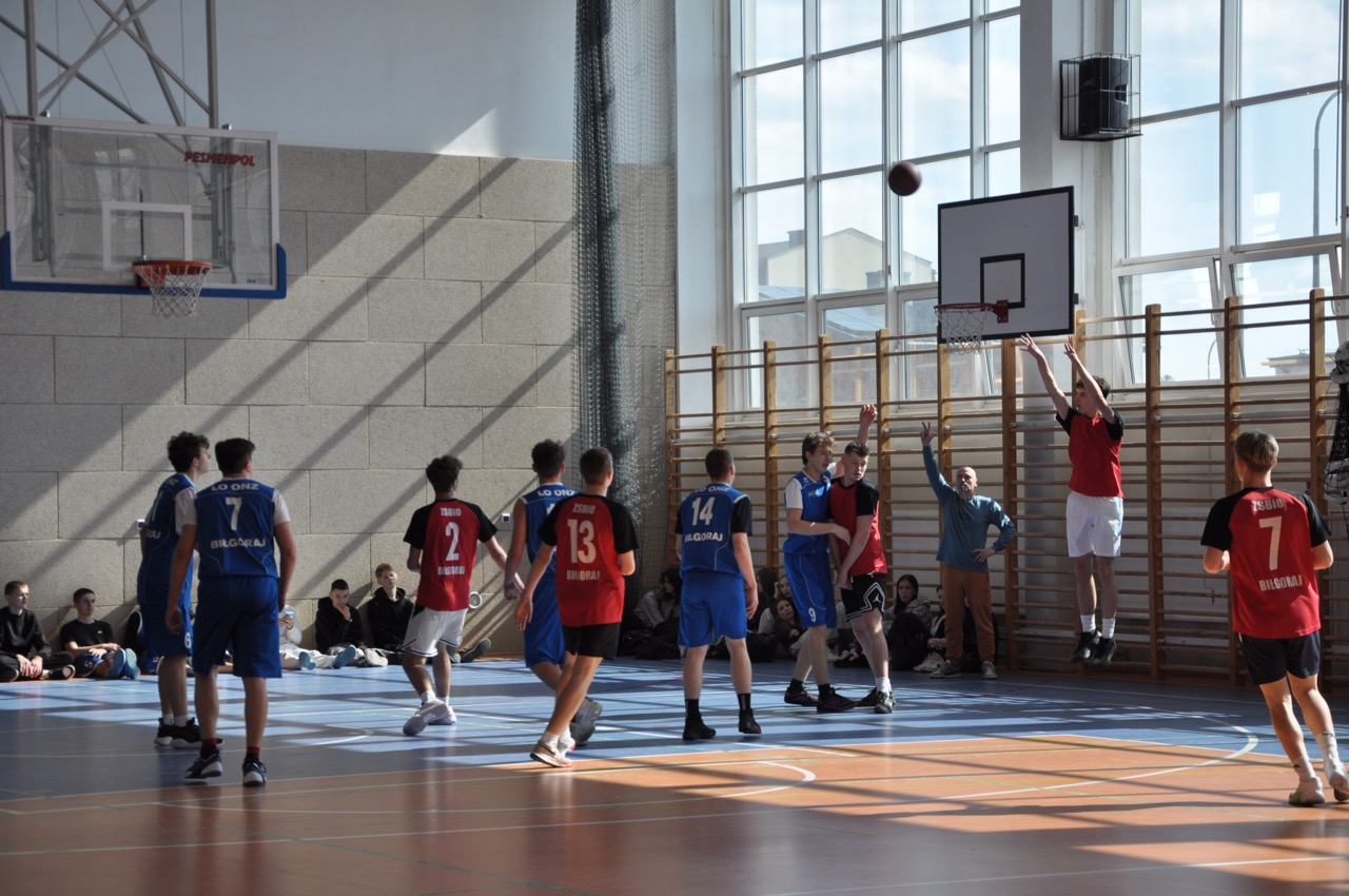 admin 1 rok temu Konkursy , Organizacyjne , Osiągnięcia , Sport25 marca 2025 r. w hali sportowej naszej szkoły odbyła się Powiatowa Licealiada w koszykówce chłopców. Do rywalizacji przystąpiły cztery drużyny reprezentujące szkoły ponadpodstawowe z Biłgoraja: Zespół Szkół Zawodowych i Ogólnokształcących, Zespół Szkół Budowlanych i Ogólnokształcących, Regionalne Centrum Edukacji Zawodowej oraz I LO im. ONZ. Zawody rozegrano systemem pucharowym – po losowaniu drużyny zostały podzielone na dwie grupy półfinałowe: grupa I: ZSZiO – ZSBiO, grupa II: I LO im. ONZ – RCEZ.