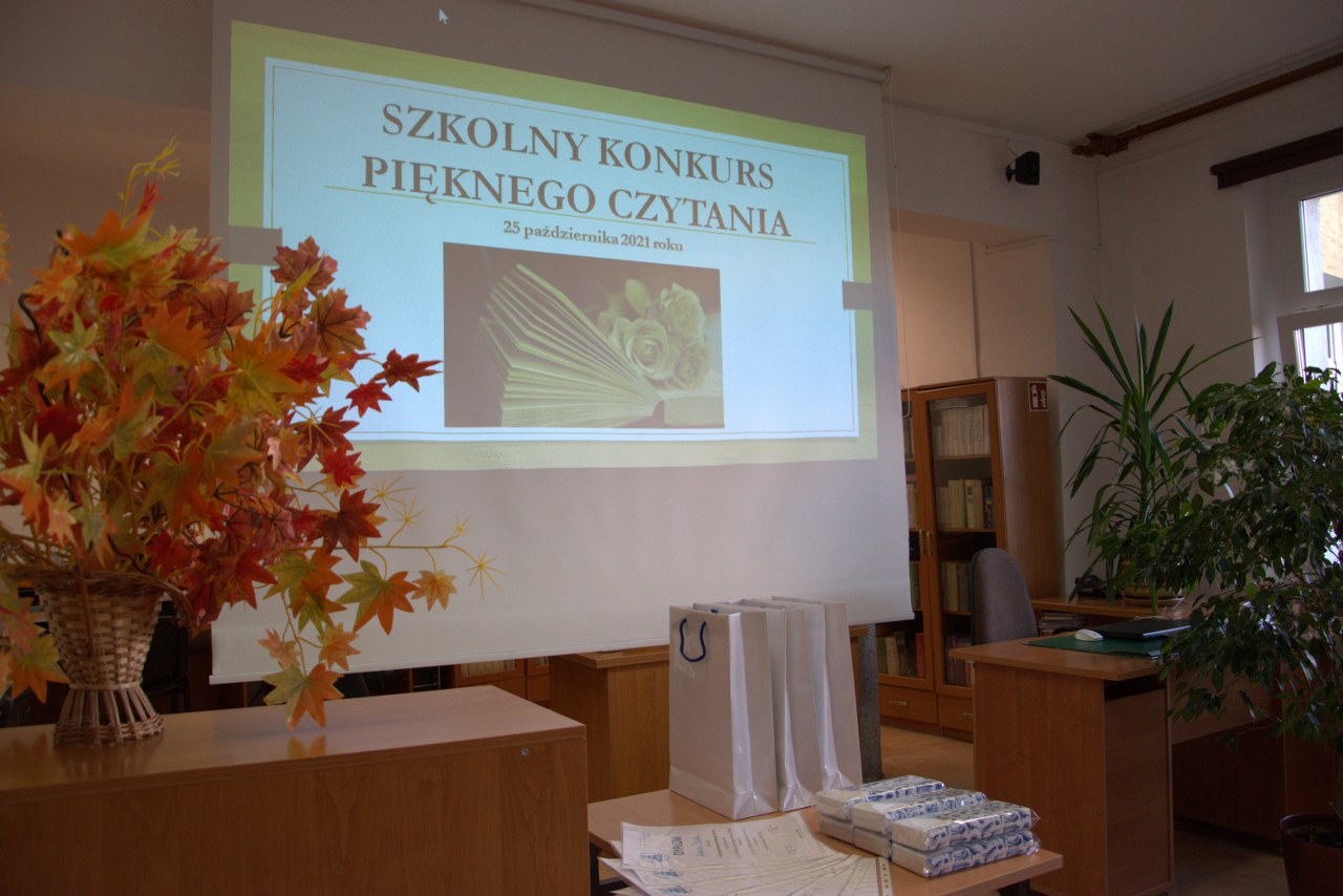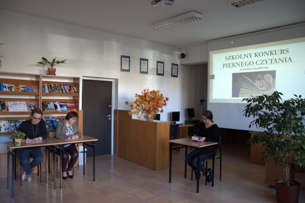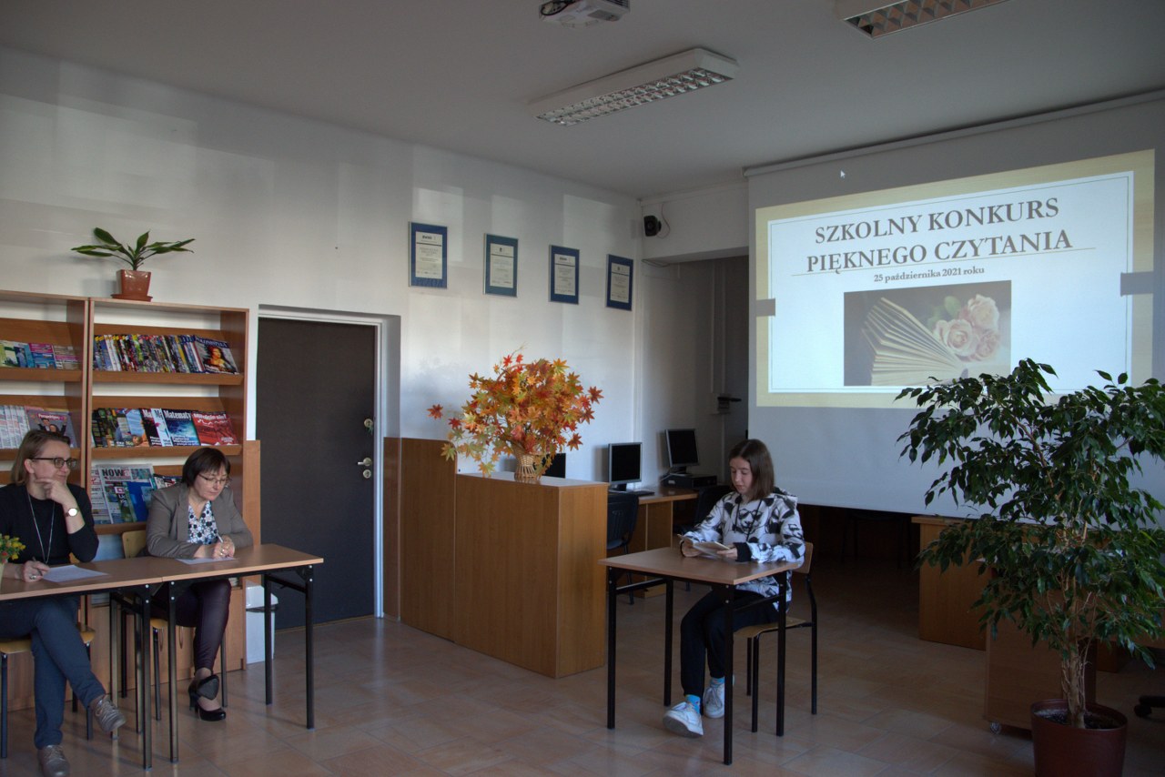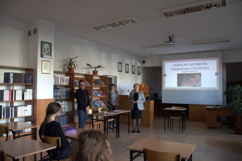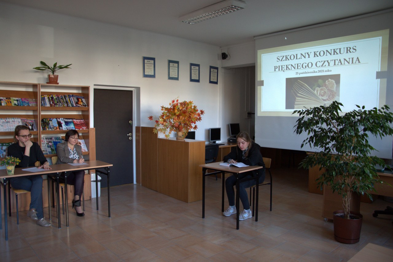 Tradycyjnie w październiku – Międzynarodowym Miesiącu Bibliotek Szkolnych został zorganizowany w naszej bibliotece dla uczniów klas pierwszych Szkolny Konkurs Pięknego Czytania. Zadanie konkursowe polegało na przygotowaniu wybranego fragmentu ciekawej książki dla młodzieży i głośnym odczytaniu przed publicznością zgromadzoną w czytelni. Komisja konkursowa bardzo wysoko oceniła poziom przygotowania licealistów i biorąc pod uwagę technikę czytania, stosowanie środków ekspresji artystycznej oraz dobór literatury, postanowiła nagrodzić najlepszych uczniów. Ilona Jaskowska z kl. I B zajęła pierwsze miejsce, drugie przyznano Laurze Karpik z kl. I D, a trzecie  – Oliwii Pietrasz z kl. I D. Wszystkich uczestników uhonorowano pamiątkowymi dyplomami, książkami lub drobnymi upominkami ufundowanymi przez Radę Rodziców.