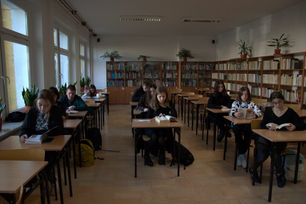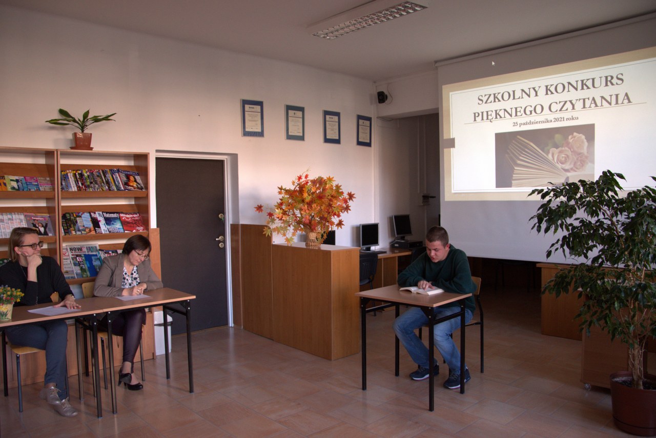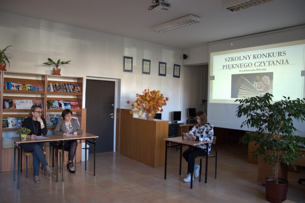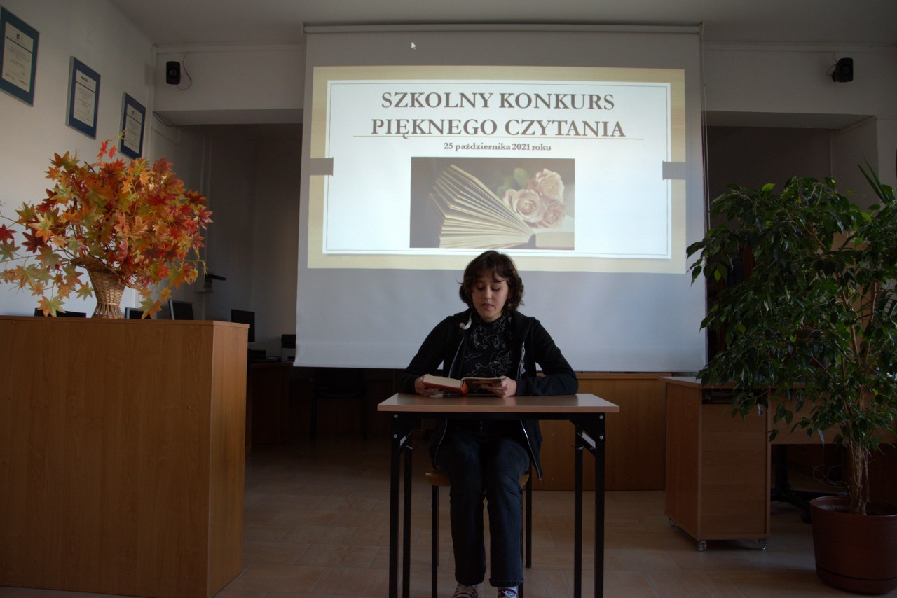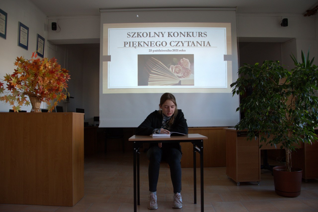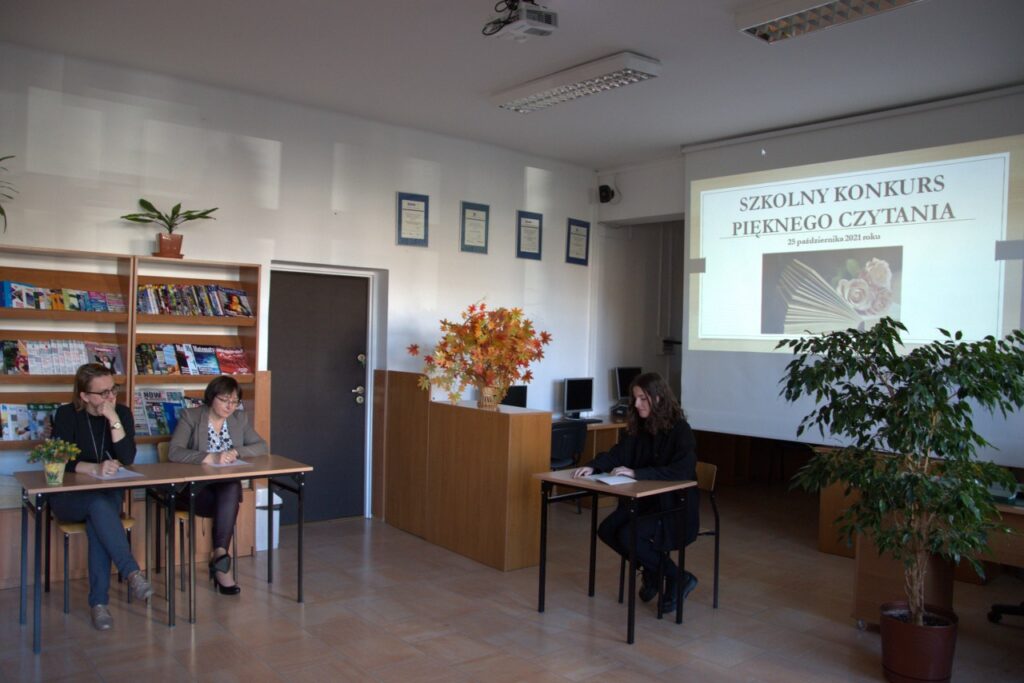 Tradycyjnie w październiku – Międzynarodowym Miesiącu Bibliotek Szkolnych został zorganizowany w naszej bibliotece dla uczniów klas pierwszych Szkolny Konkurs Pięknego Czytania. Zadanie konkursowe polegało na przygotowaniu wybranego fragmentu ciekawej książki dla młodzieży i głośnym odczytaniu przed publicznością zgromadzoną w czytelni. Komisja konkursowa bardzo wysoko oceniła poziom przygotowania licealistów i biorąc pod uwagę technikę czytania, stosowanie środków ekspresji artystycznej oraz dobór literatury, postanowiła nagrodzić najlepszych uczniów. Ilona Jaskowska z kl. I B zajęła pierwsze miejsce, drugie przyznano Laurze Karpik z kl. I D, a trzecie  – Oliwii Pietrasz z kl. I D. Wszystkich uczestników uhonorowano pamiątkowymi dyplomami, książkami lub drobnymi upominkami ufundowanymi przez Radę Rodziców.