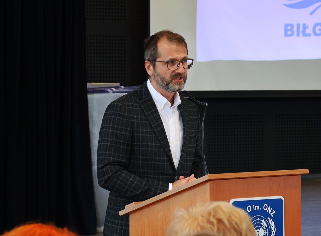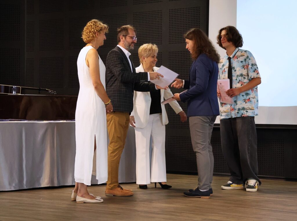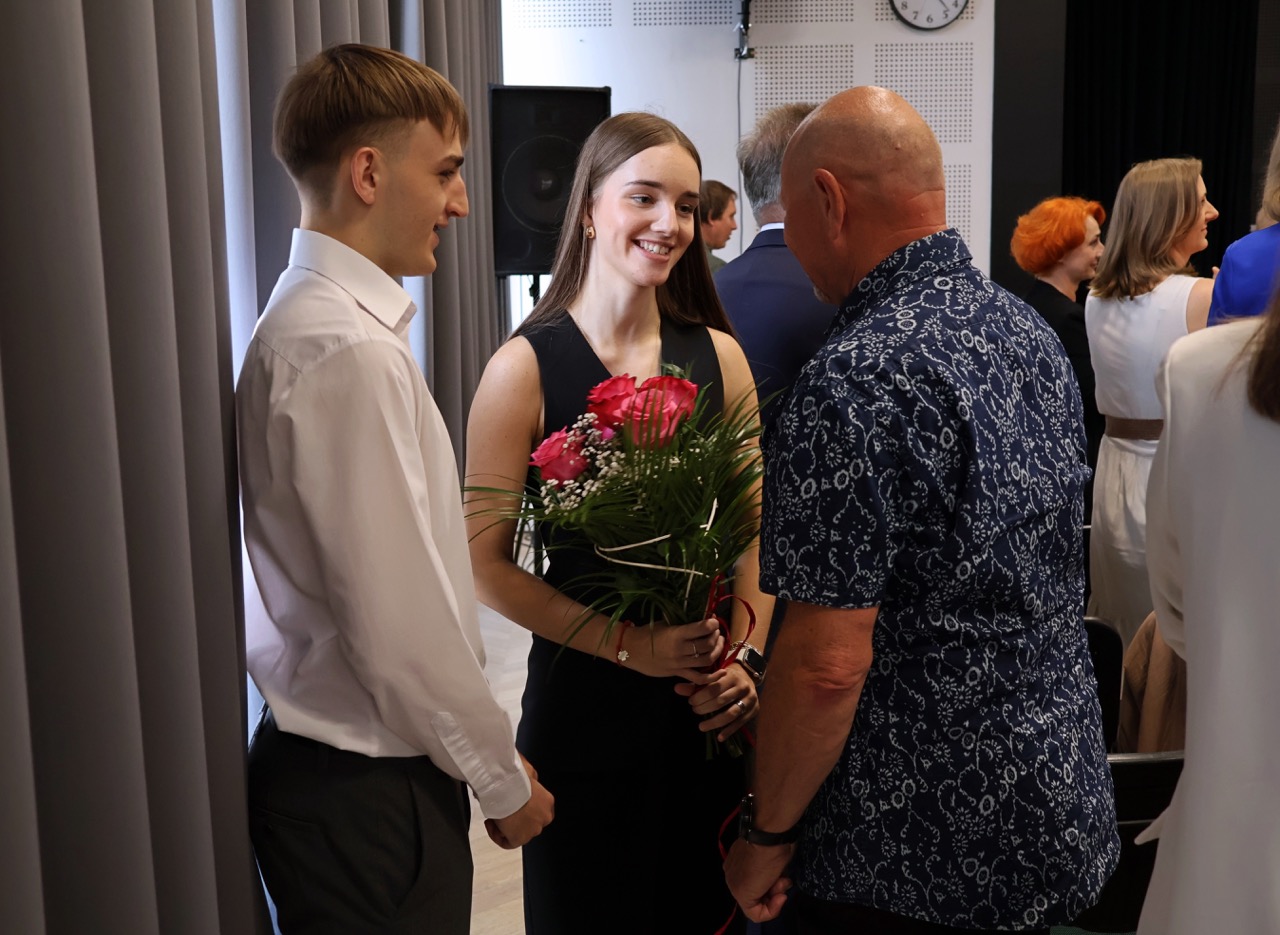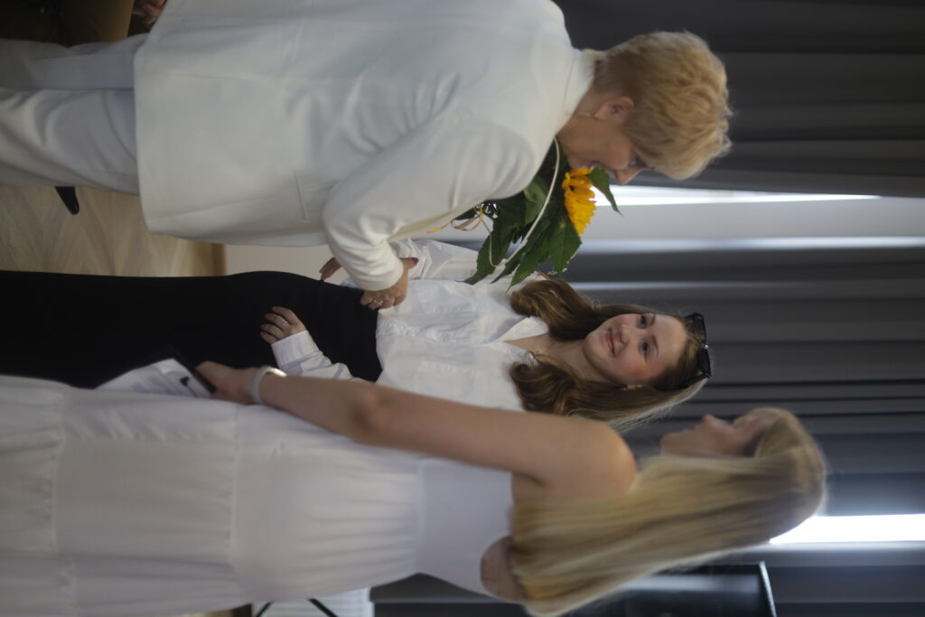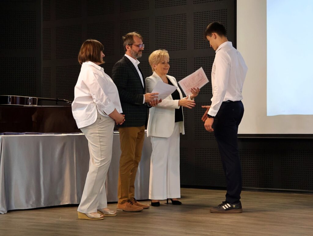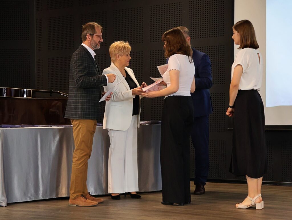 admin 9 miesięcy temu Organizacyjne , Uroczystości27 czerwca w auli obchodziliśmy uroczystość zakończenia roku szkolnego 2024/2025. Z tej okazji swoją obecnością zaszczycili nas goście: Starosta Biłgorajski Andrzej Szarlip oraz Przewodniczący Rady Rodziców Jarosław Świtała. Tegoroczną uroczystość rozpoczęła wzruszająca chwila – pożegnanie nauczycieli odchodzących na emeryturę. Dyrektor Jolanta Rycyk podziękowała panu Wojciechowi Krawcowi, panu Krzysztofowi Litwiniukowi i pani Jolancie Tor za wszystkie lata pracy, życzliwość, zaangażowanie i trud włożony w wychowanie wielu pokoleń młodzieży oraz oddanie sprawom szkoły, młodzież wręczyła kwiaty, a wszyscy zebrani wyrazili wdzięczność gromkimi brawami.