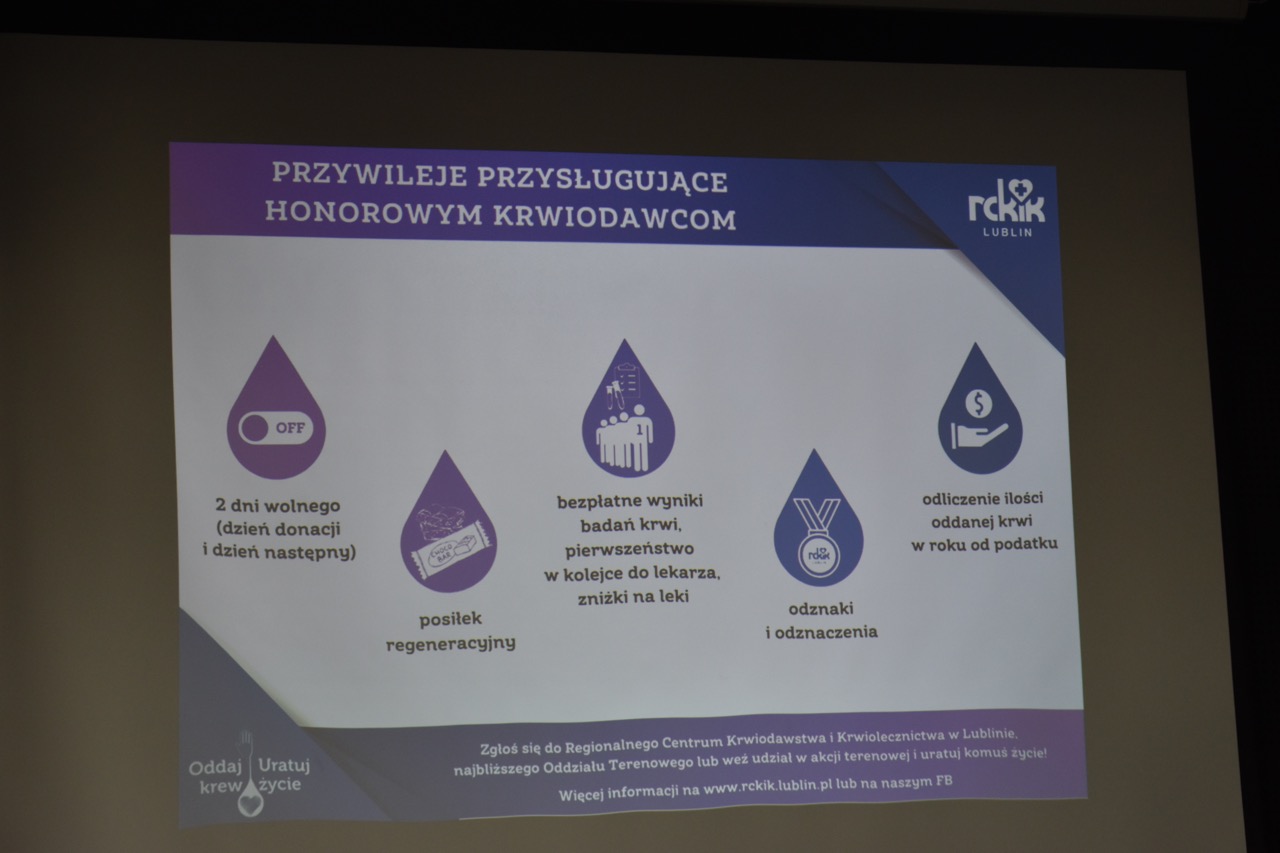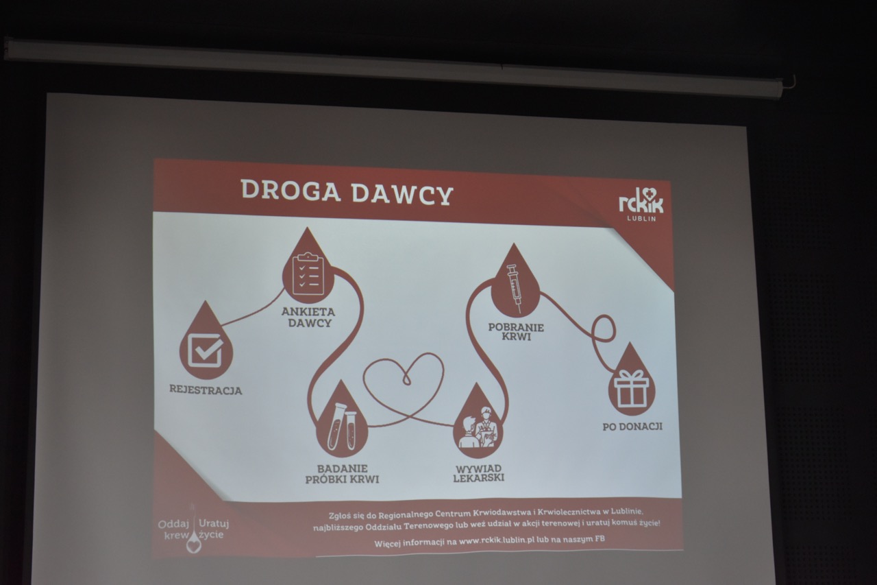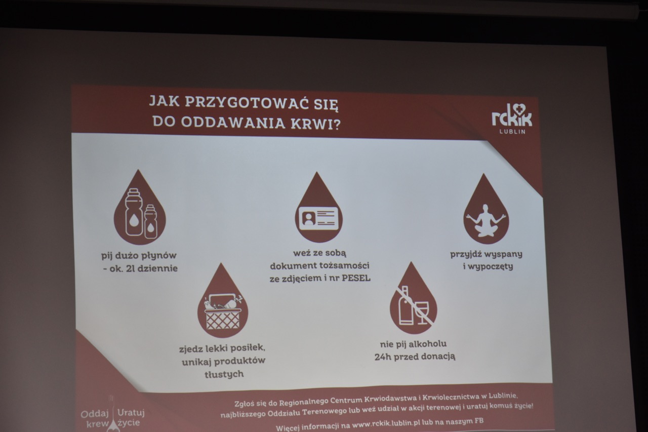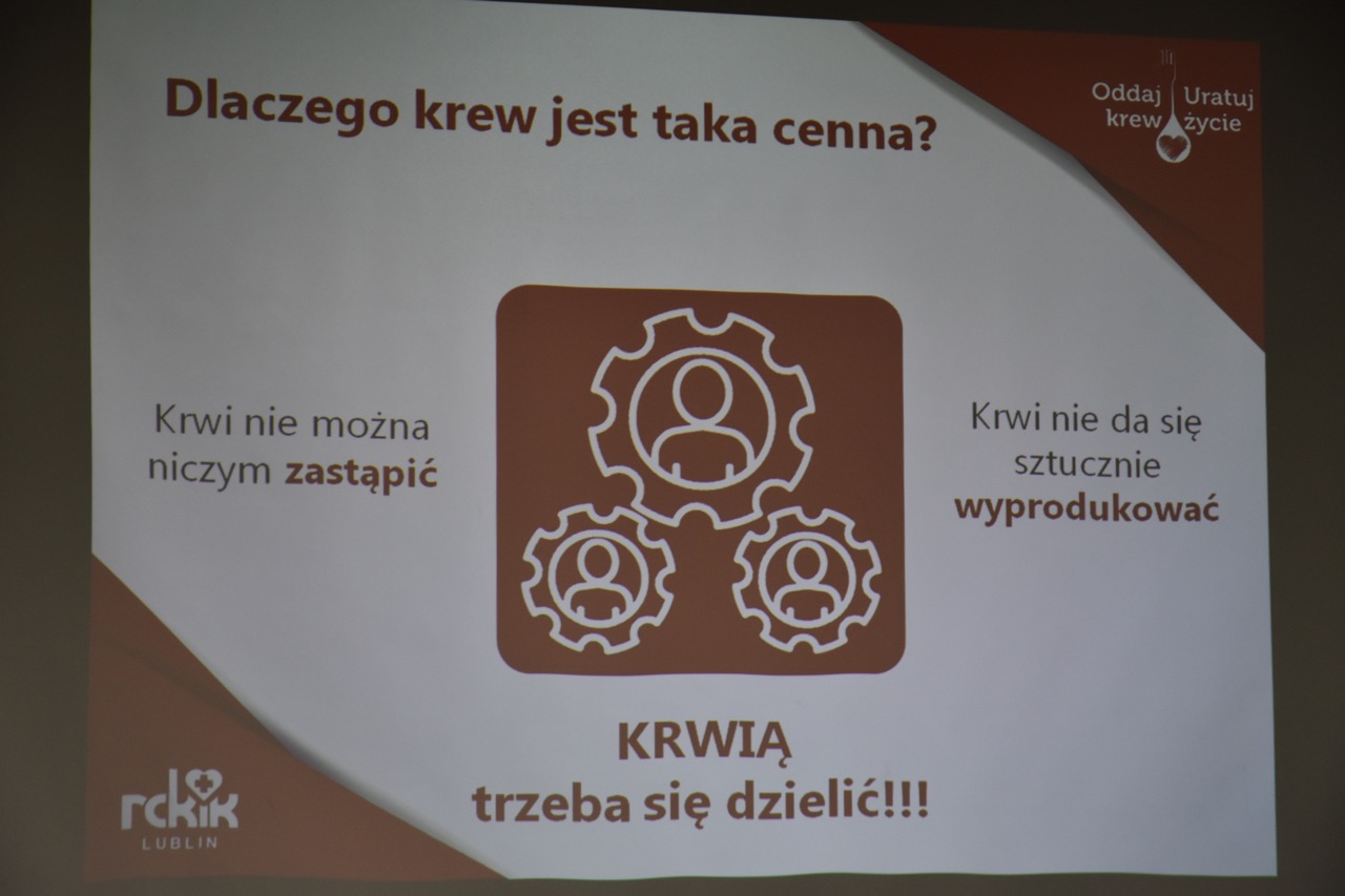 admin 1 rok temu Organizacyjne26 marca 2025 r. w naszej szkole odbyło się spotkanie uczniów klas trzecich z przedstawicielami Regionalnego Centrum Krwiodawstwa i Krwiolecznictwa panią Agnieszką Chmielewską Muzyką i panem Jakubem Stachnio. Celem spotkania było przygotowanie młodzieży do zbliżającej się akcji krwiodawstwa, która odbędzie się w naszym liceum 9kwietnia. Przedstawiciele RCKiK przybliżyli ideę honorowego krwiodawstwa oraz znaczenie regularnego oddawania krwi dla ratowania zdrowia i życia innych osób. Podkreślili, że krew jest niezastąpionym lekiem, którego nie da się wyprodukować, a każdy zdrowy, pełnoletni człowiek może zostać dawcą i w ten sposób pomóc potrzebującym. Omówiono również szczegółowe warunki, jakie należy spełnić, aby móc oddać krew, m.in.: wiek, wagę, stan zdrowia oraz zasady przygotowania się do oddania krwi. Uczniowie dowiedzieli się jak wygląda cały proces – od rejestracji, poprzez badanie lekarskie, aż po samo pobranie krwi. Zwrócono także uwagę na przywileje honorowych dawców krwi oraz korzyści zdrowotne wynikające z regularnego udziału w takich akcjach. Na zakończenie spotkania przedstawiciele RCKiK zachęcili uczniów do udziału w szkolnej akcji krwiodawstwa i wyrazili nadzieję, że wielu z nich zdecyduje się na ten szlachetny gest. Spotkanie było bardzo pouczające i z pewnością zmotywowało młodzież do refleksji nad rolą, jaką każdy z nas może odegrać w ratowaniu życia drugiego człowieka.