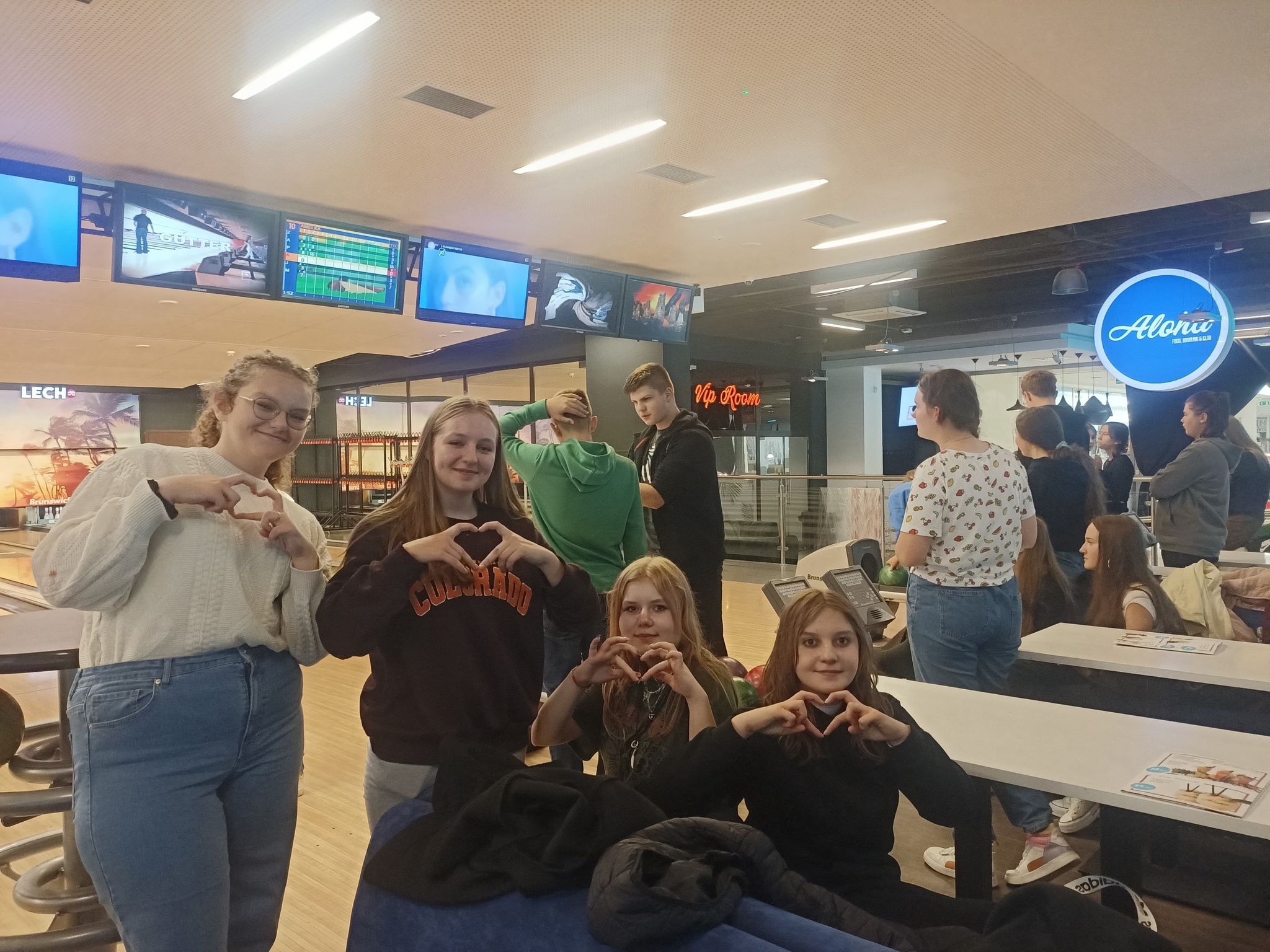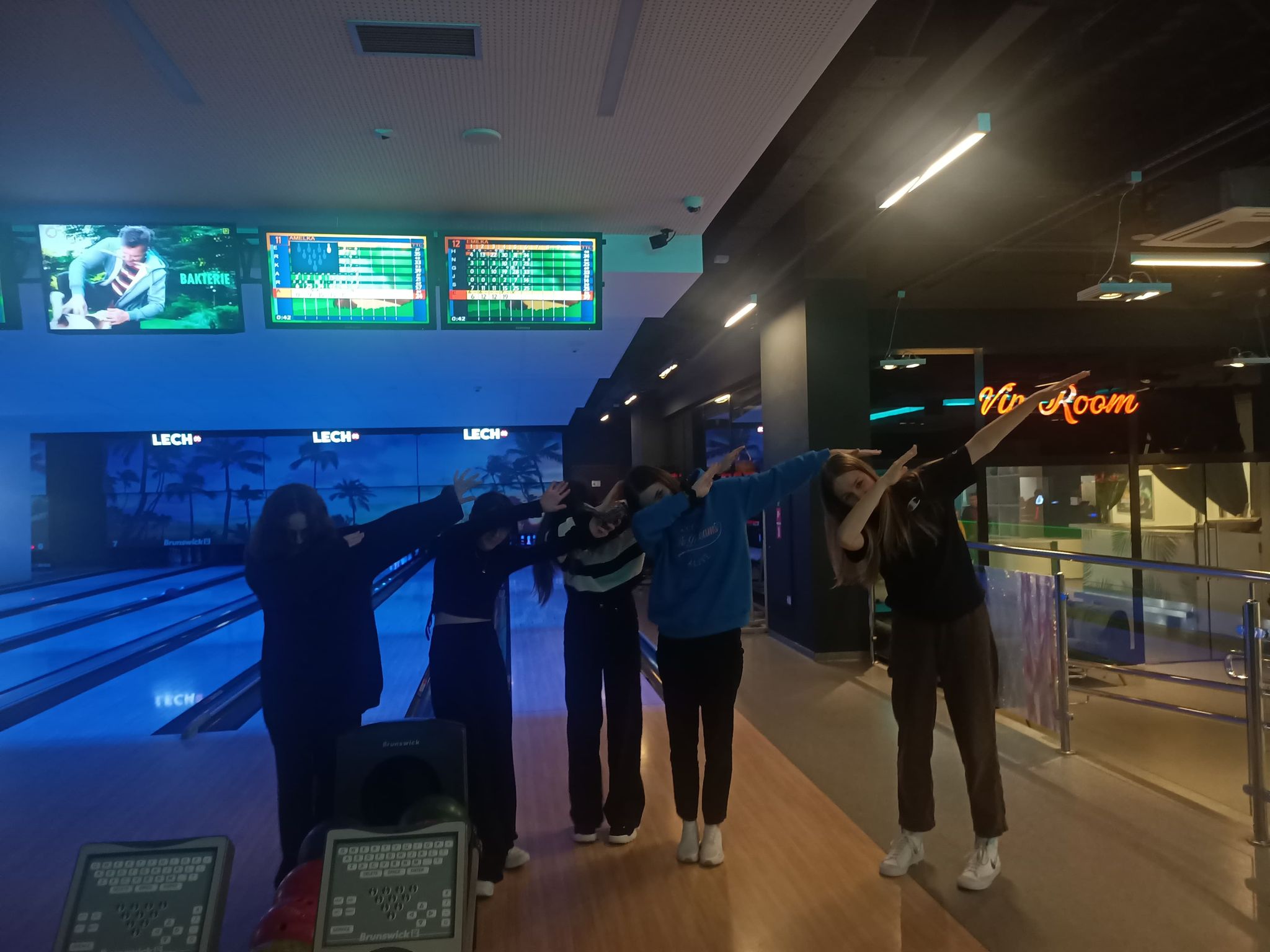 Uczniowie spróbowali także swoich sił na kręgielni . Zainteresowali się tą ciekawą i nietypową dyscypliną sportu. Współzawodnictwo na torze wiązało się ze świetną zabawą. Dwie godziny gry szybko minęły.