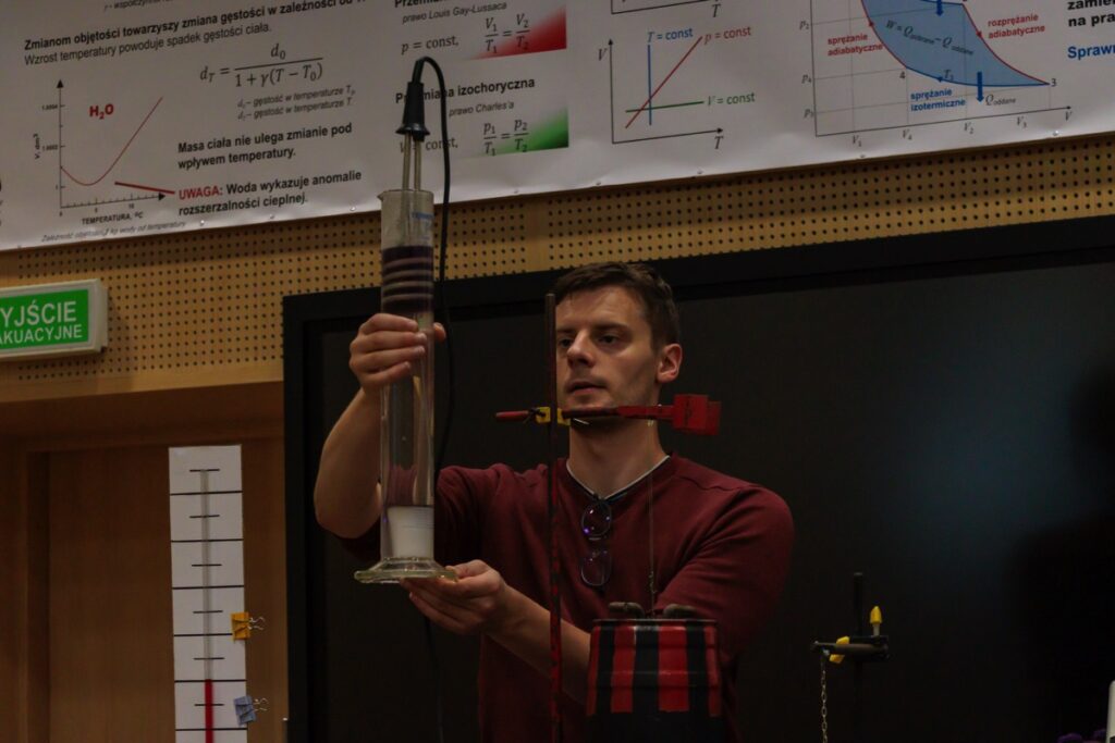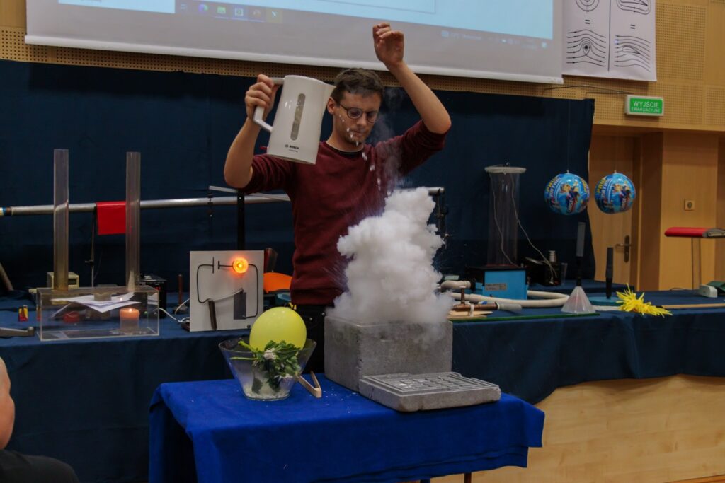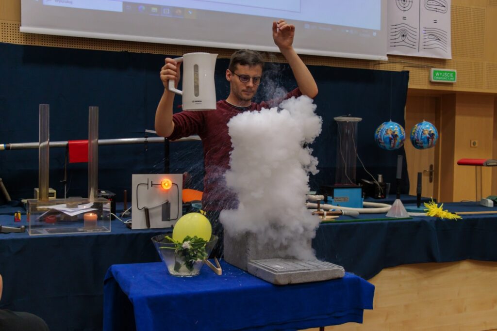 admin 3 lata temu Organizacyjne , Wycieczki22 września 2023 r. uczniowie klasy II A uczestniczyli w bardzo ciekawych zajęciach z fizyki w Instytucie Matematyki, Fizyki i Informatyki UMCS w Lublinie. Młodzież miała niecodzienną okazję obserwowania różnych doświadczeń i eksperymentów przygotowanych oraz prowadzonych przez pracowników naukowych UMCS w zakresie czterech tematów: „Poprzez zabawę do praw fizyki”, „Rezonanse”, „Fizyka latania” oraz „Termodynamika”. Uczniowie mogli po raz kolejny przekonać się, jak ważna i potrzebna jest wiedza z fizyki do poznania i zrozumienia praw rządzących światem przyrody.